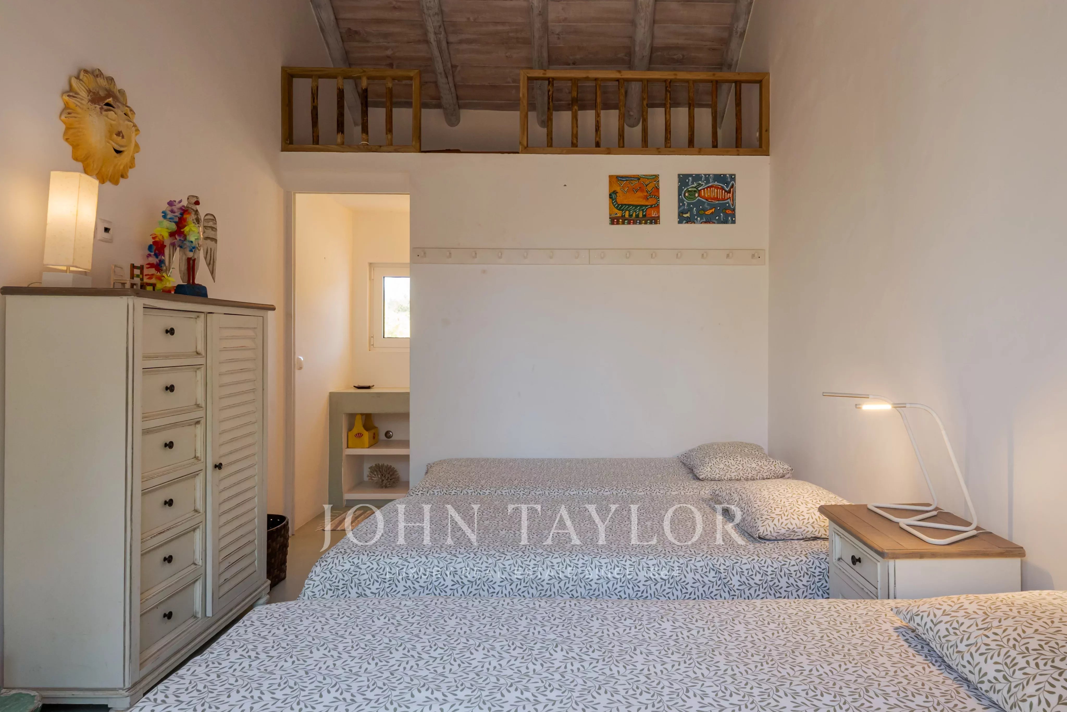 Un troisième volume comprend une suite supplémentaire avec kitchenette et accès à une terrasse privée sur le toit, offrant un cadre privilégié pour profiter de la tranquillité du paysage et des coucher de soleil emblématiques de la région.