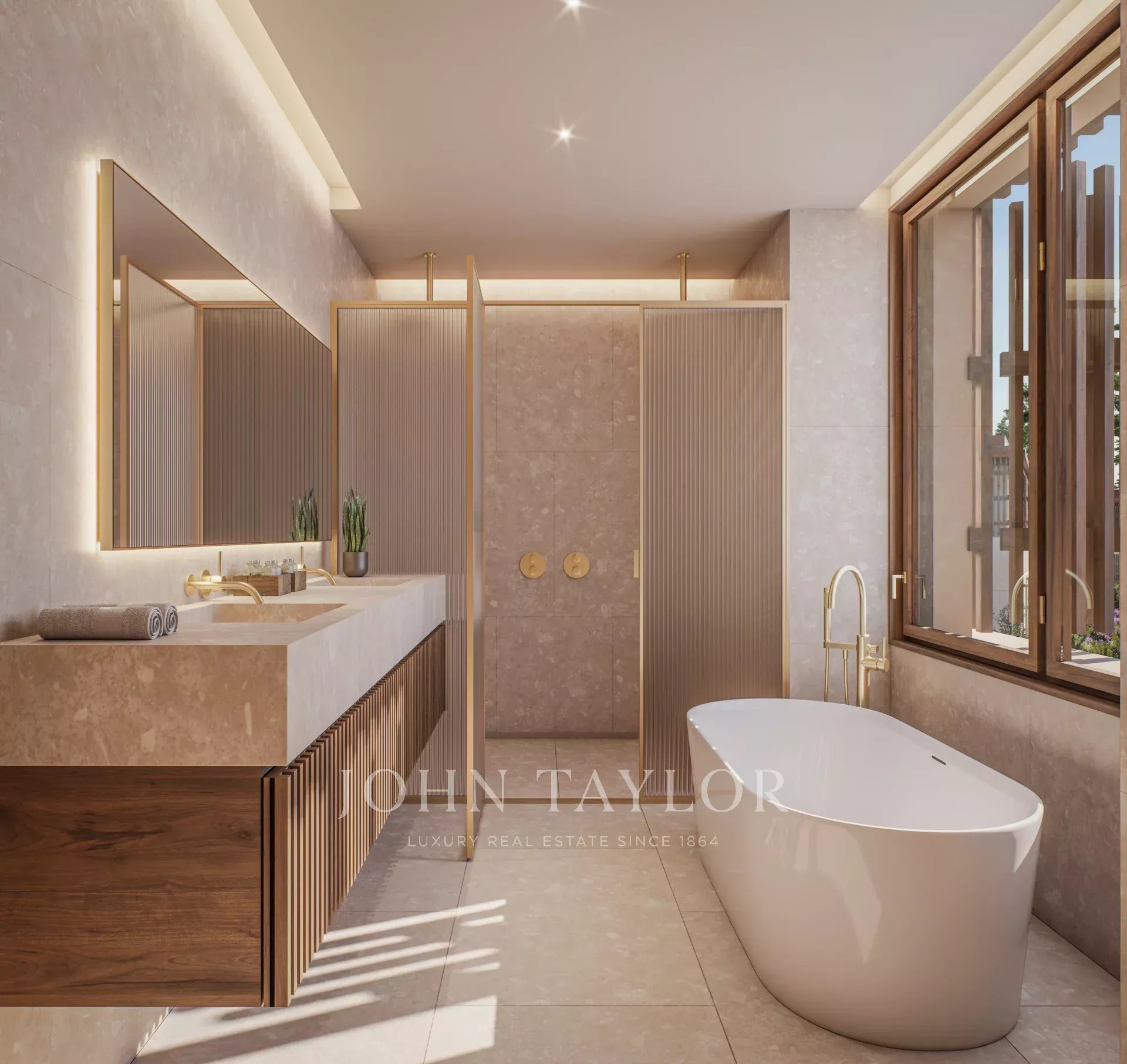 À l’étage, vous trouverez un second salon, une suite parentale et deux autres chambres en suite, chacune avec accès à une grande terrasse offrant des vues imprenables.