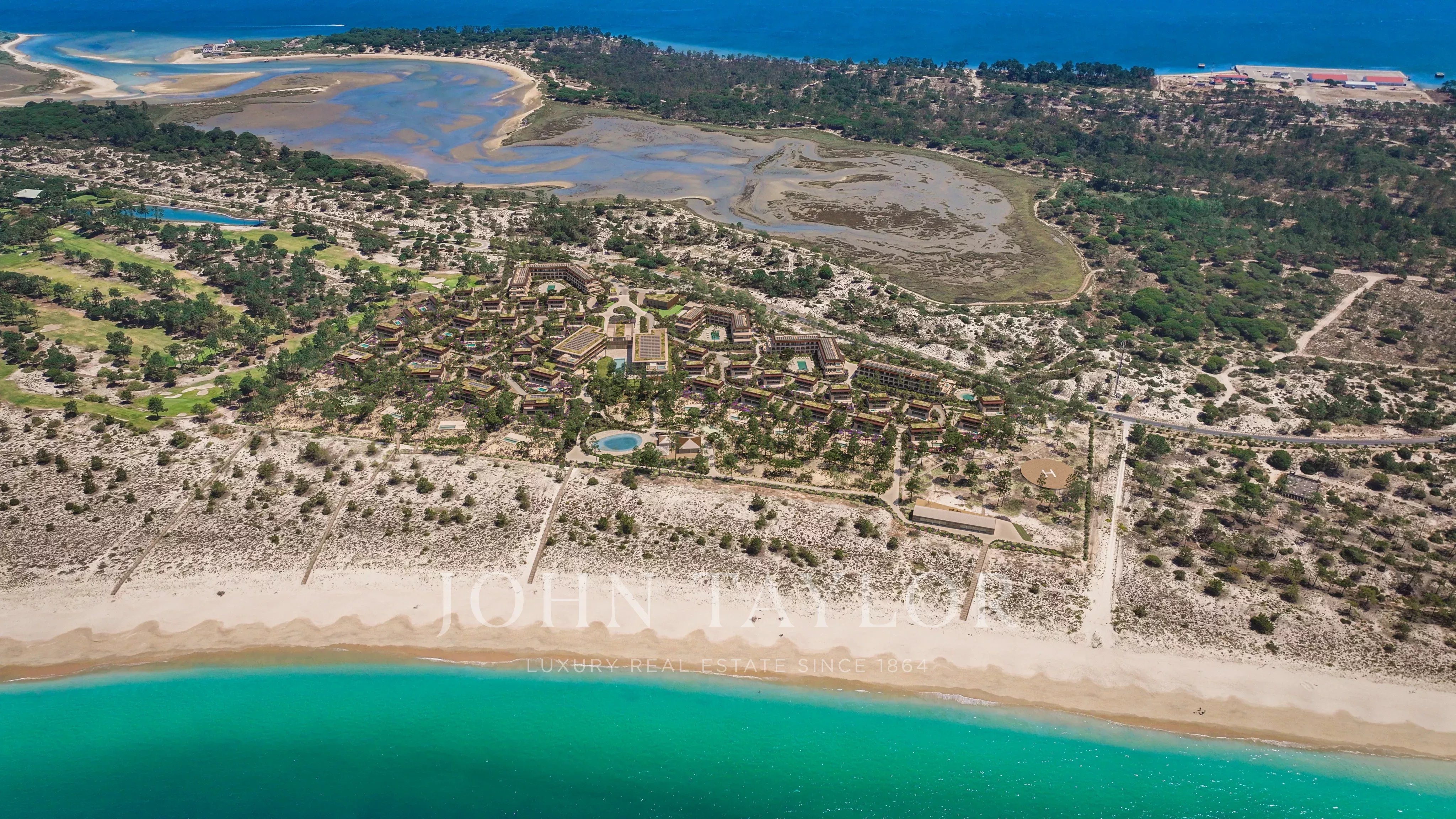 Le resort, actuellement en cours de développement, inclut un hôtel cinq étoiles de luxe, 37 villas en bord de mer, et 71 appartements modernes, tous conçus selon les normes les plus exigeantes. Les infrastructures comprennent une réception ouverte 24h/24, un parking souterrain, des courts de padel et de tennis, un spa, des piscines d’eau salée, un beach club, un club pour enfants, une salle de sport entièrement équipée et un héliport. L’ensemble est idéalement situé à seulement 5 minutes du prestigieux Troia Golf Club.