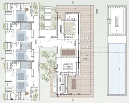 5 suites entre 23 et 26 m² avec terrasse couverte privée et espaces de détente.