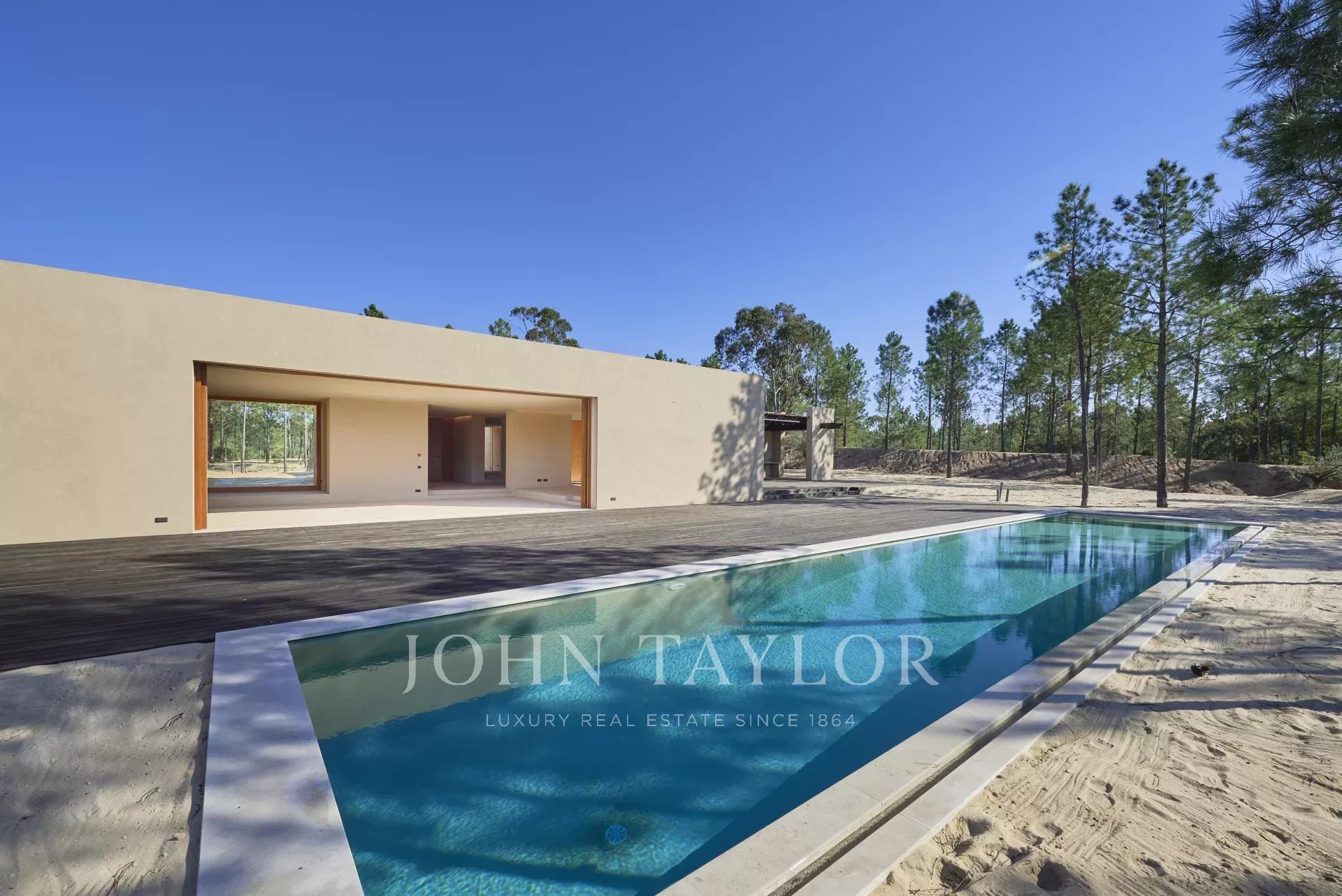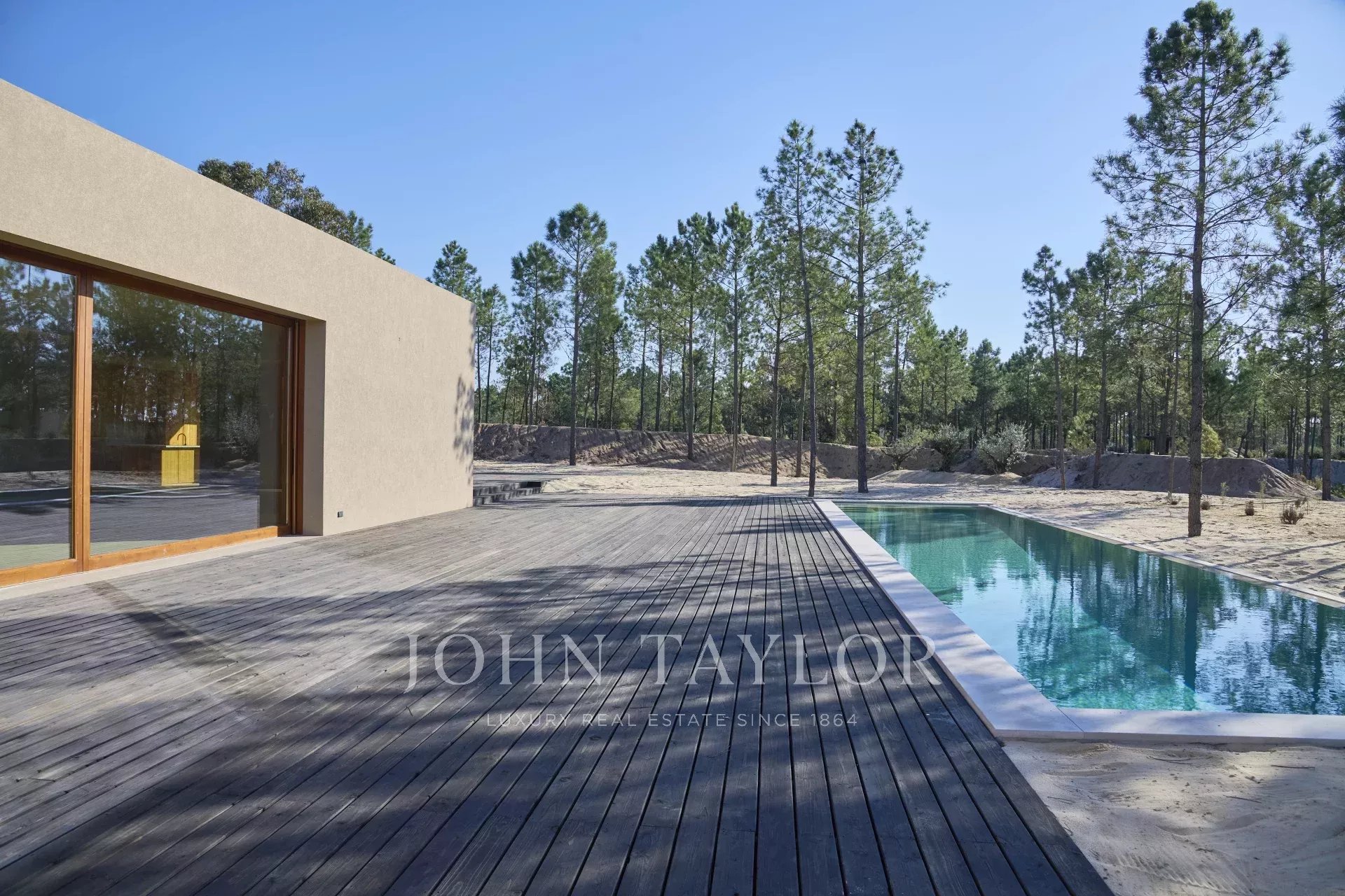 La propriété comprend quatre chambres spacieuses avec salle de bains, chacune avec sa propre terrasse en bois, et deux salons avec une vue imprenable. L'un d'eux donne sur la piscine de 96 m² et l'autre sur les paisibles forêts de pins et la beauté naturelle de Comporta. La conception de la villa permet de vivre à l'intérieur comme à l'extérieur, avec une grande cuisine entièrement équipée, un garde-manger et de nombreux rangements.