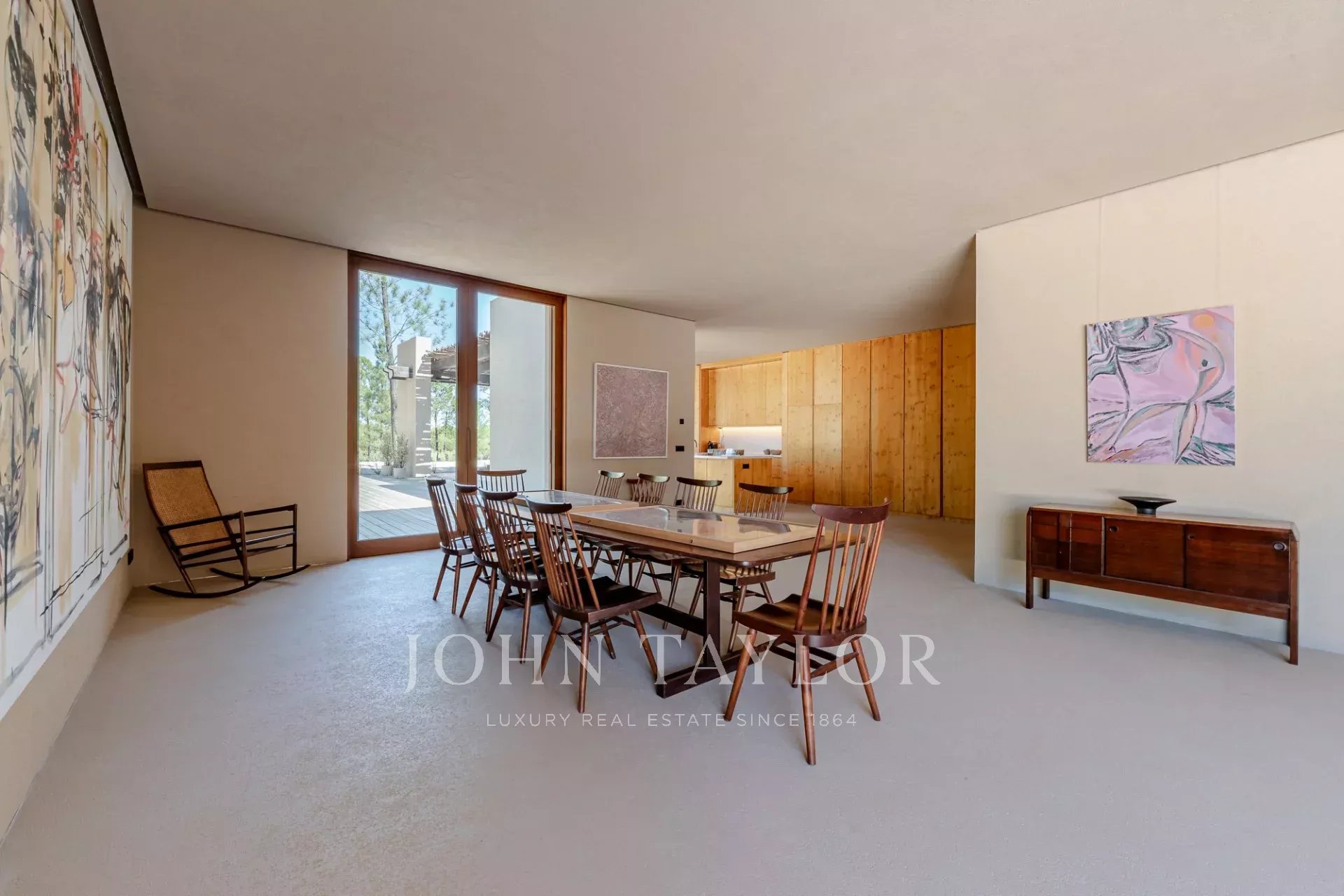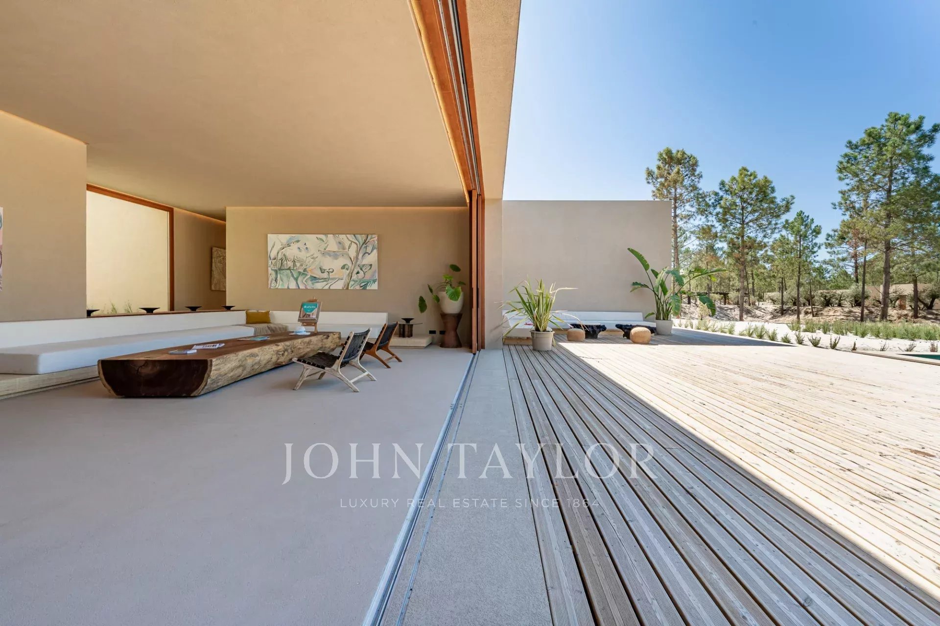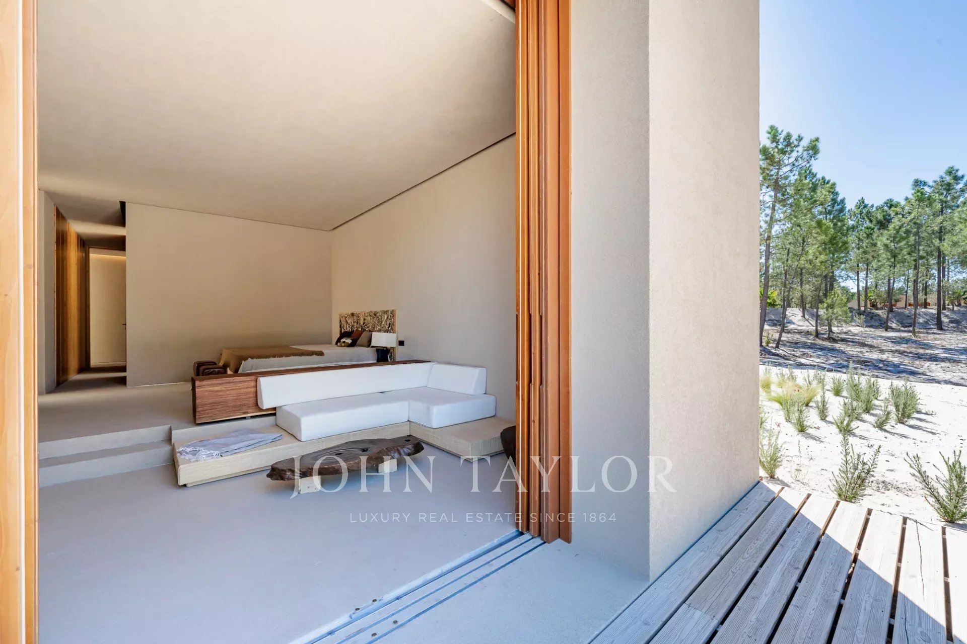La propriété comprend quatre chambres spacieuses avec salle de bains, chacune avec sa propre terrasse en bois, et deux salons avec une vue imprenable. L'un d'eux donne sur la piscine de 96 m² et l'autre sur les paisibles forêts de pins et la beauté naturelle de Comporta. La conception de la villa permet de vivre à l'intérieur comme à l'extérieur, avec une grande cuisine entièrement équipée, un garde-manger et de nombreux rangements.
