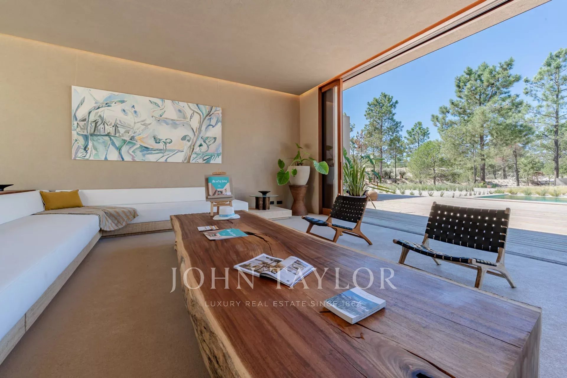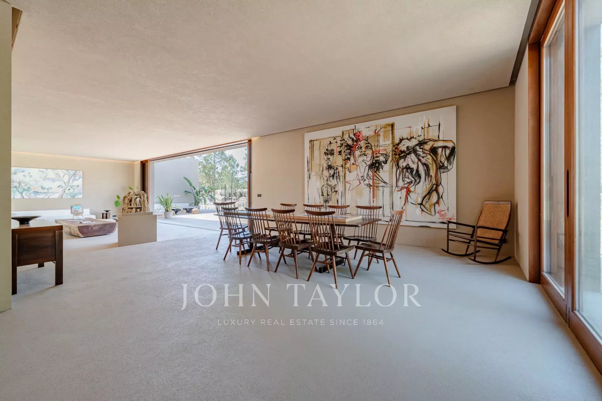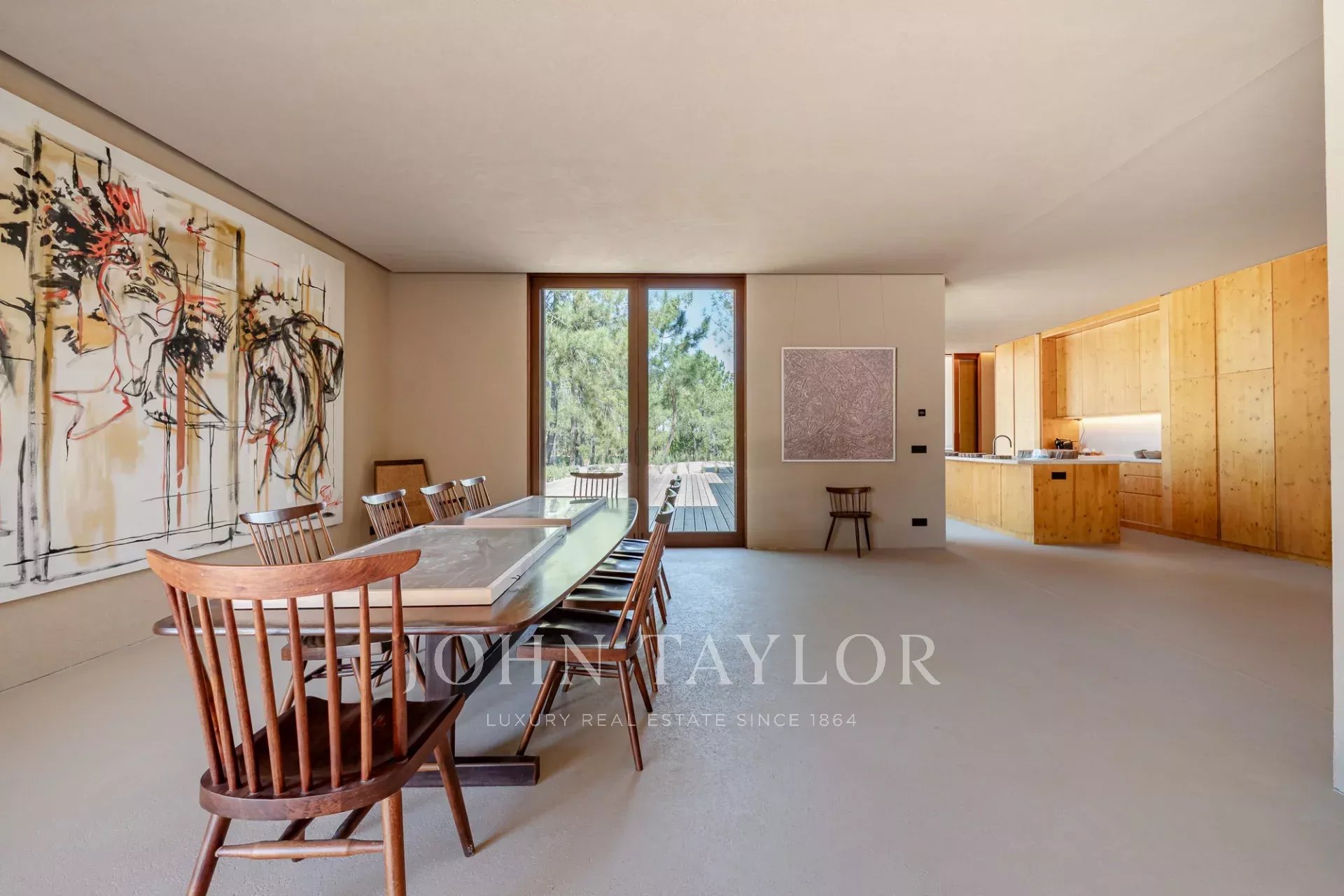 La propriété comprend quatre chambres spacieuses avec salle de bains, chacune avec sa propre terrasse en bois, et deux salons avec une vue imprenable. L'un d'eux donne sur la piscine de 96 m² et l'autre sur les paisibles forêts de pins et la beauté naturelle de Comporta. La conception de la villa permet de vivre à l'intérieur comme à l'extérieur, avec une grande cuisine entièrement équipée, un garde-manger et de nombreux rangements.