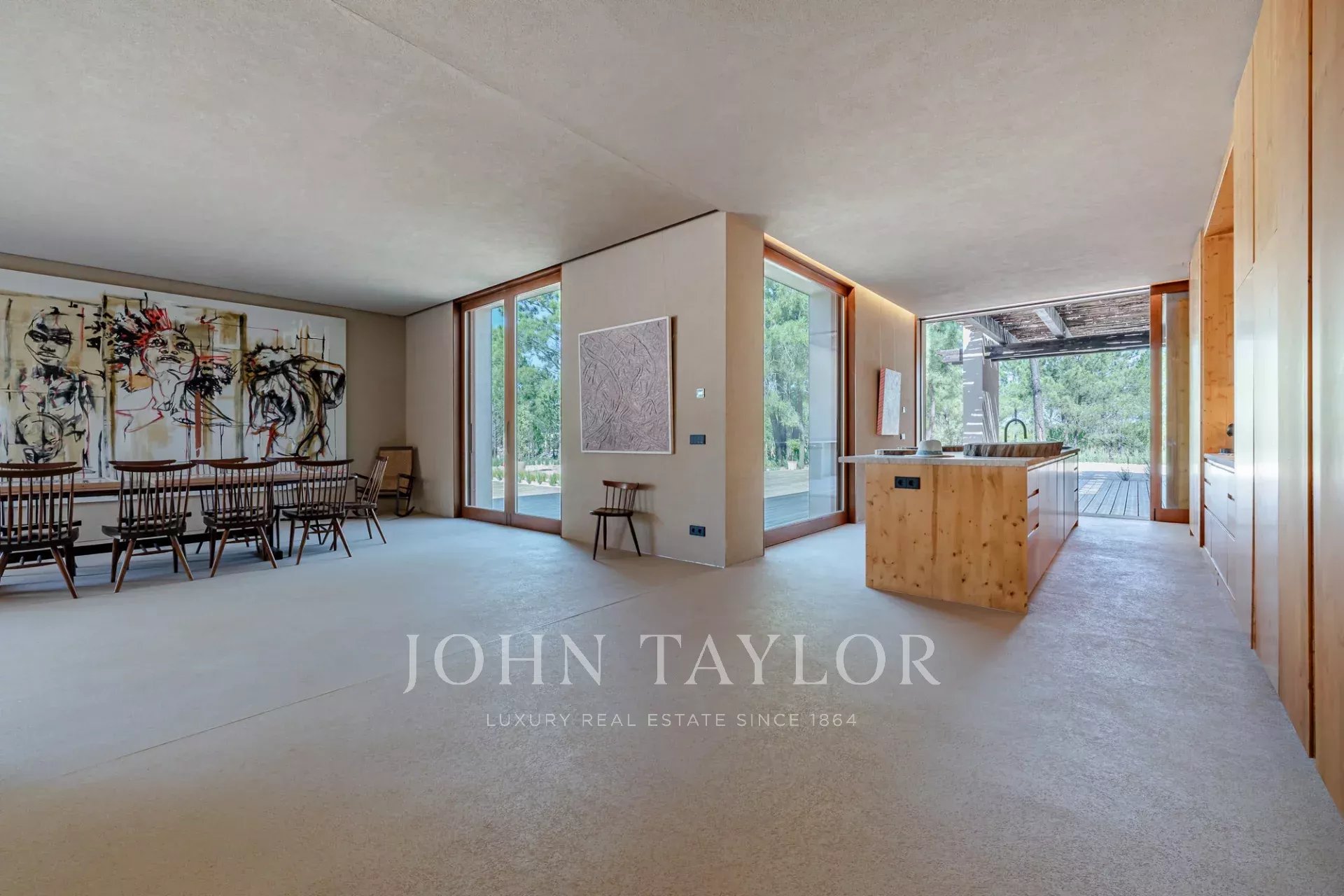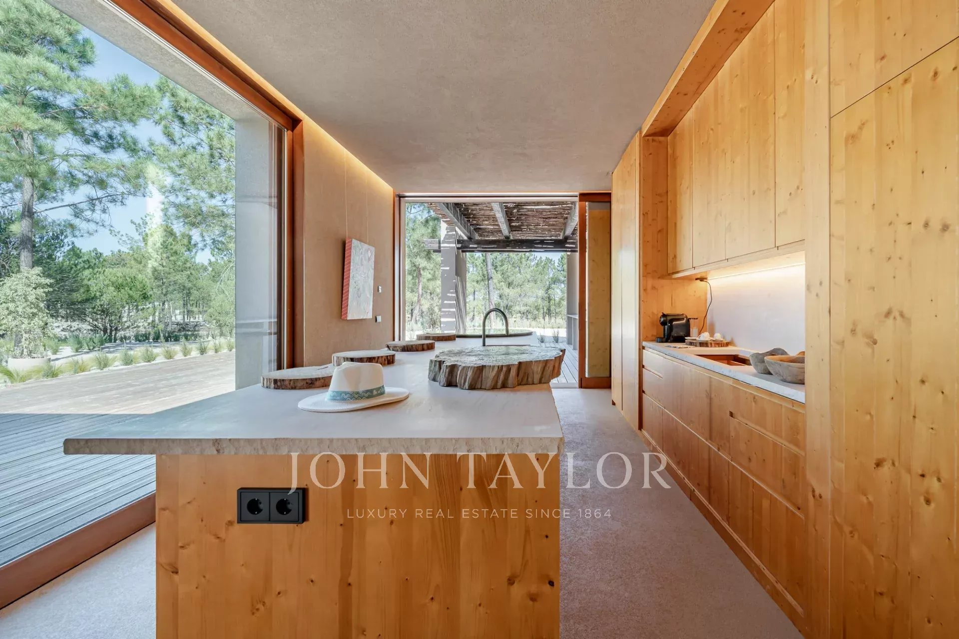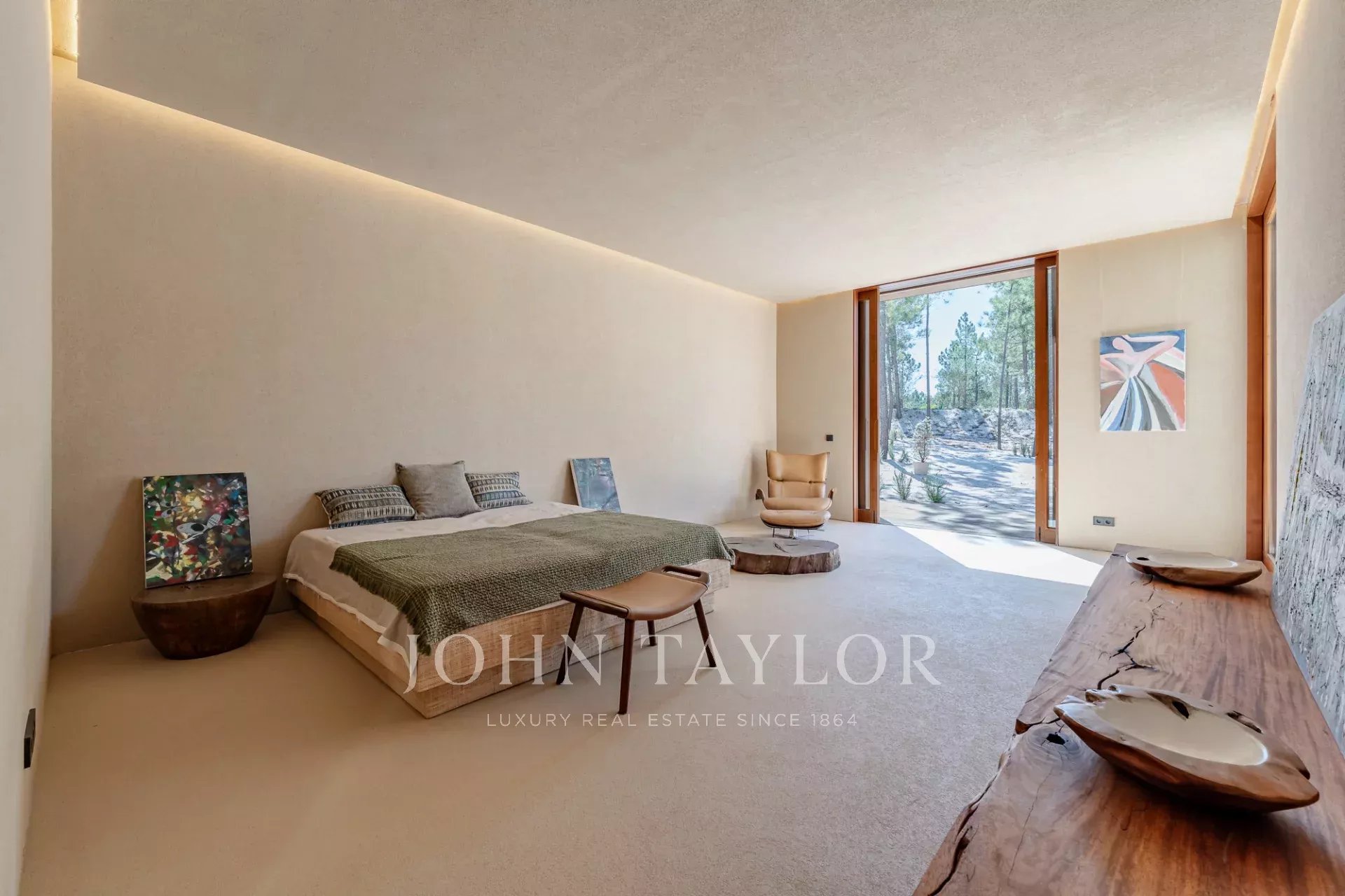 La villa comprend trois chambres spacieuses avec salle de bains, chacune dotée d'une terrasse privée en bois. Elle comprend deux salons, l'un donnant sur la piscine de 96 m², l'autre sur la forêt de pins et la beauté naturelle de Comporta. Conçue pour vivre à l'intérieur comme à l'extérieur, la villa comprend une grande cuisine entièrement équipée, un garde-manger et de nombreux espaces de rangement.