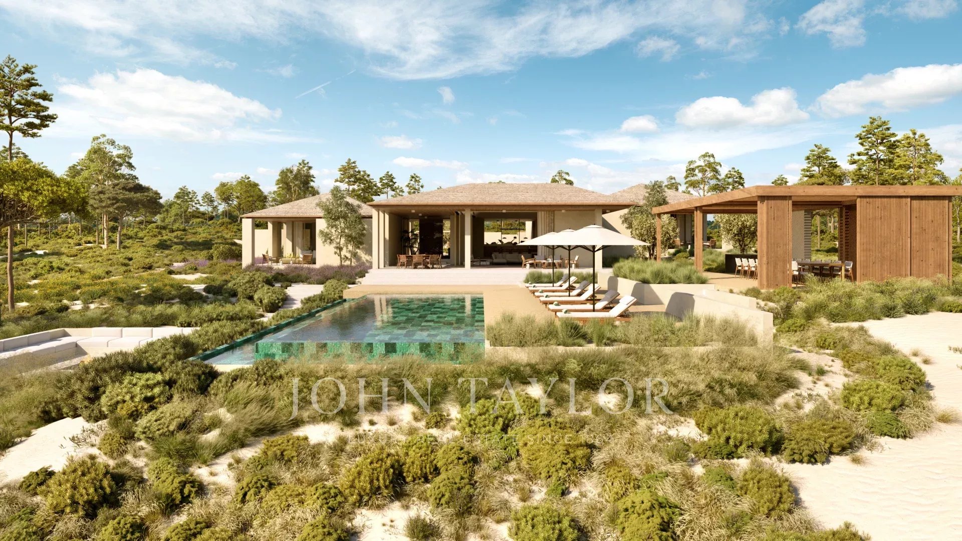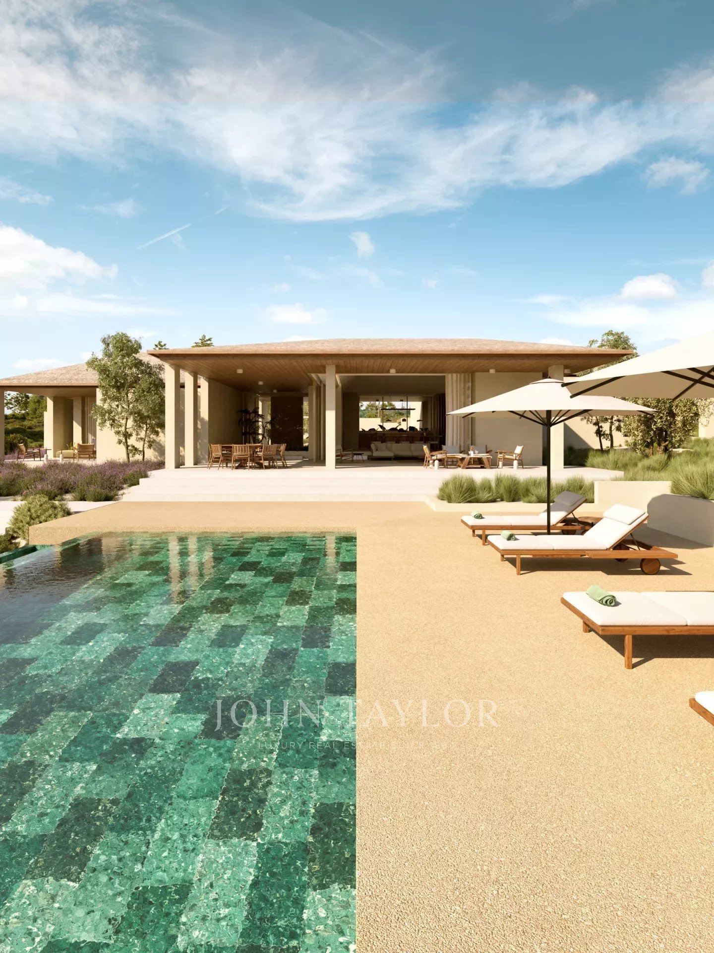 Située sur un terrain de 10 000 m², la villa de 526 m² comprend deux suites spacieuses et deux chambres supplémentaires, chacune dotée d'une terrasse privée. La cuisine, la salle à manger et le salon s'ouvrent sur des vues d'oliveraies et de chênes-lièges. Les espaces extérieurs comprennent deux piscines - une piscine à débordement de 15 x 5 mètres et une piscine pour enfants de 14 m² - ainsi qu'une cuisine extérieure, un foyer, de vastes terrasses d'une superficie totale de 139 m² et un abri pour deux voitures.