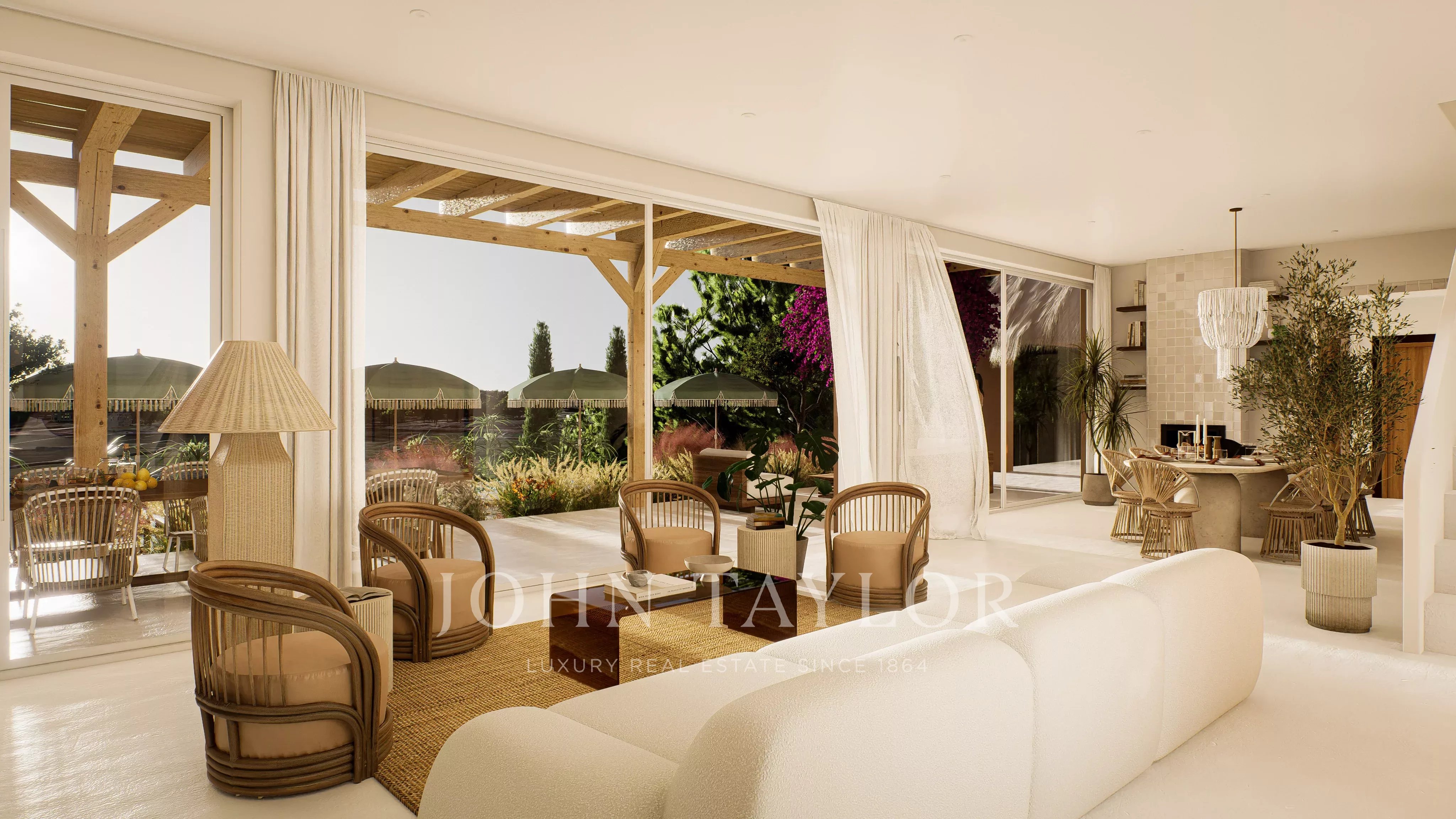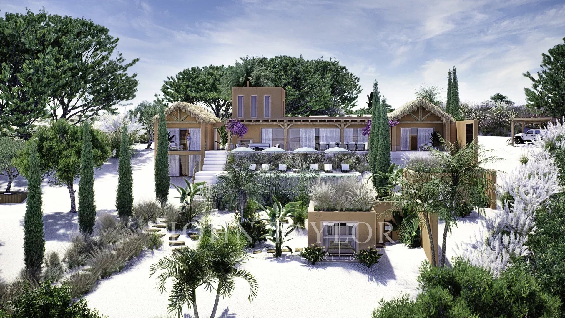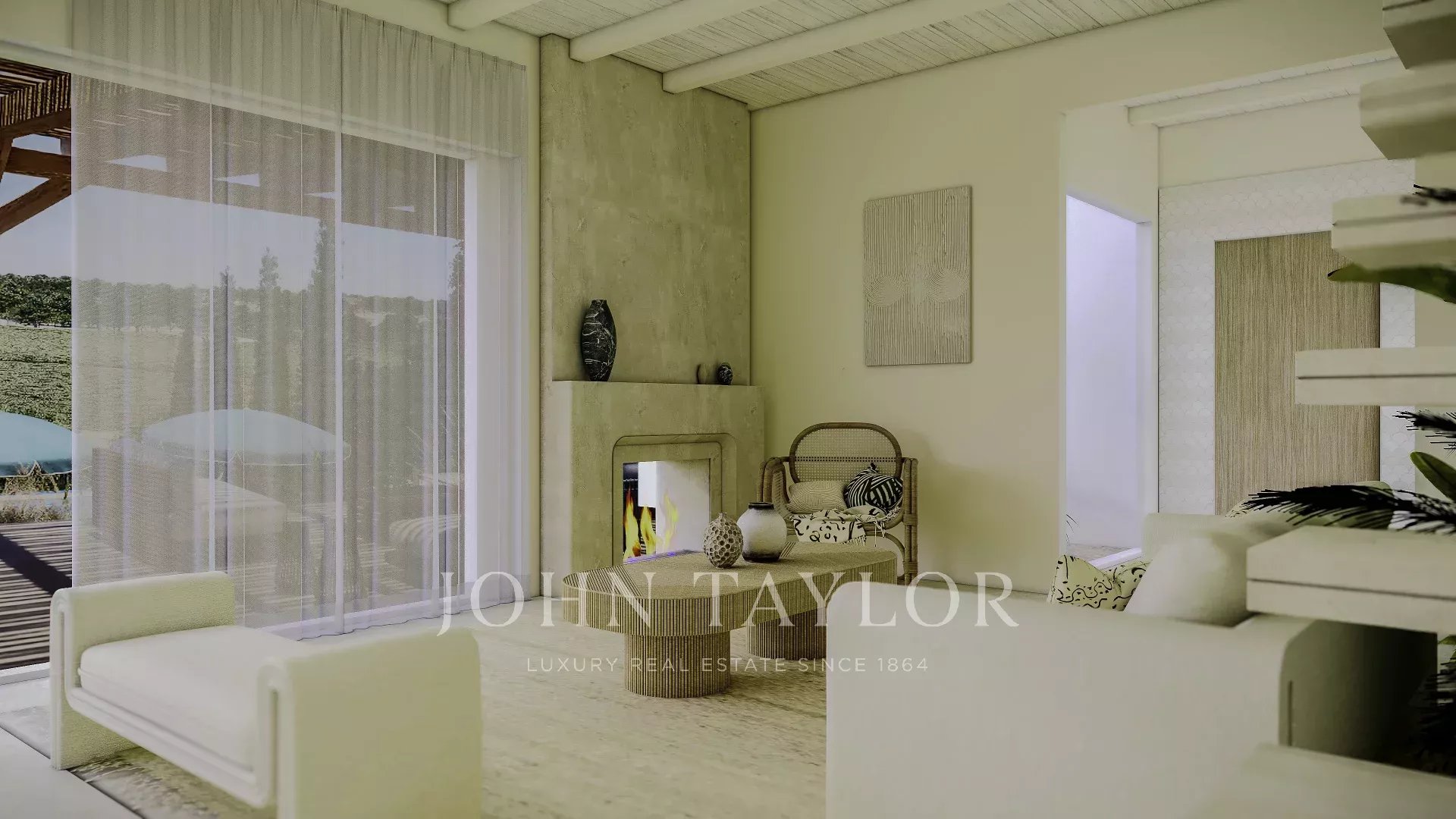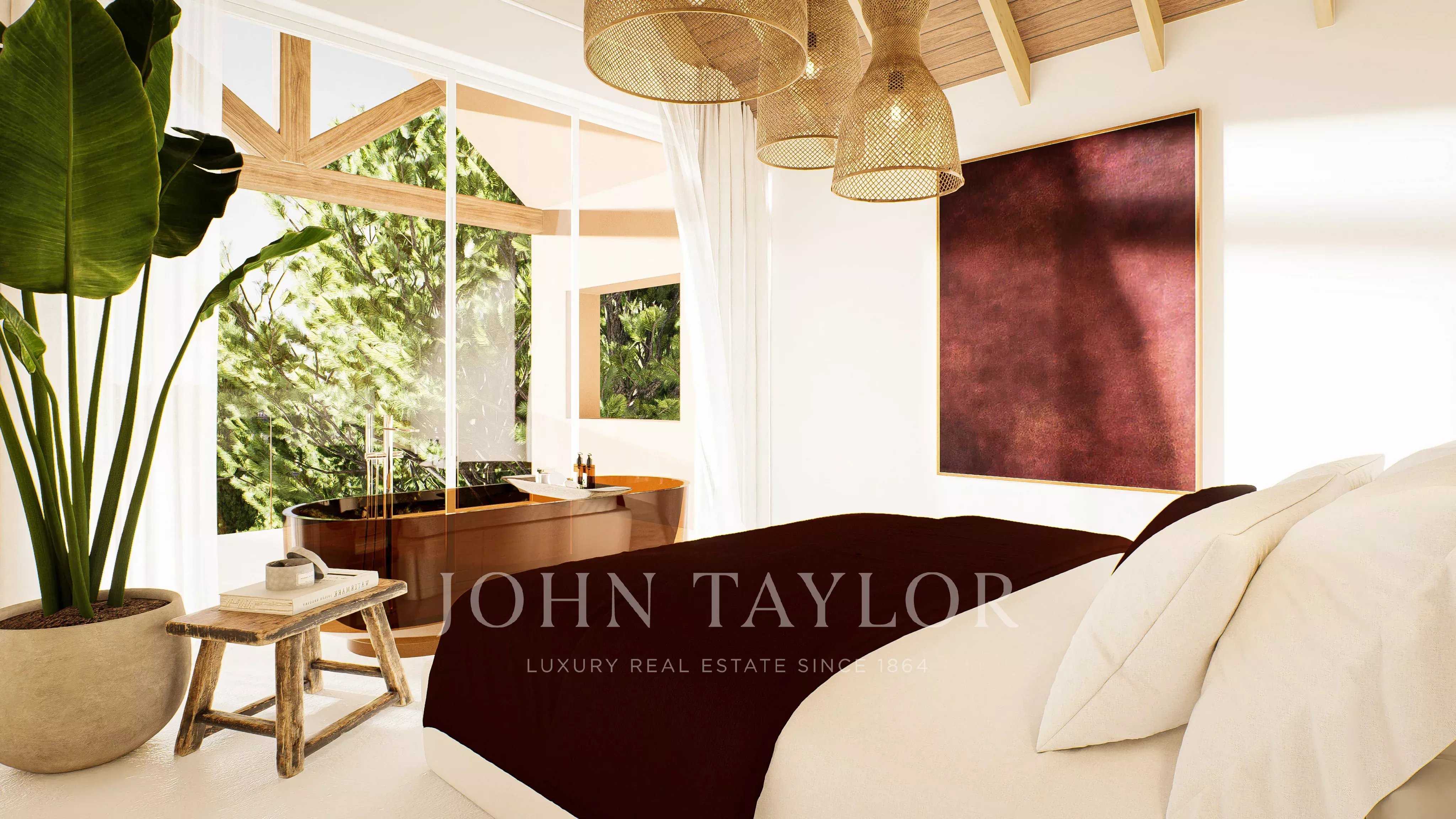 Conçue avec une architecture contemporaine, la propriété se compose d’une villa principale et de deux cabanes indépendantes pour les invités. La villa principale comprend trois suites, une cuisine ouverte avec espace repas et salon, trois terrasses, un rooftop et une salle de sport. Chaque cabane dispose d’une suite et d’une terrasse privative. La propriété est vendue entièrement meublée et comprend également une cave à vin extérieure.