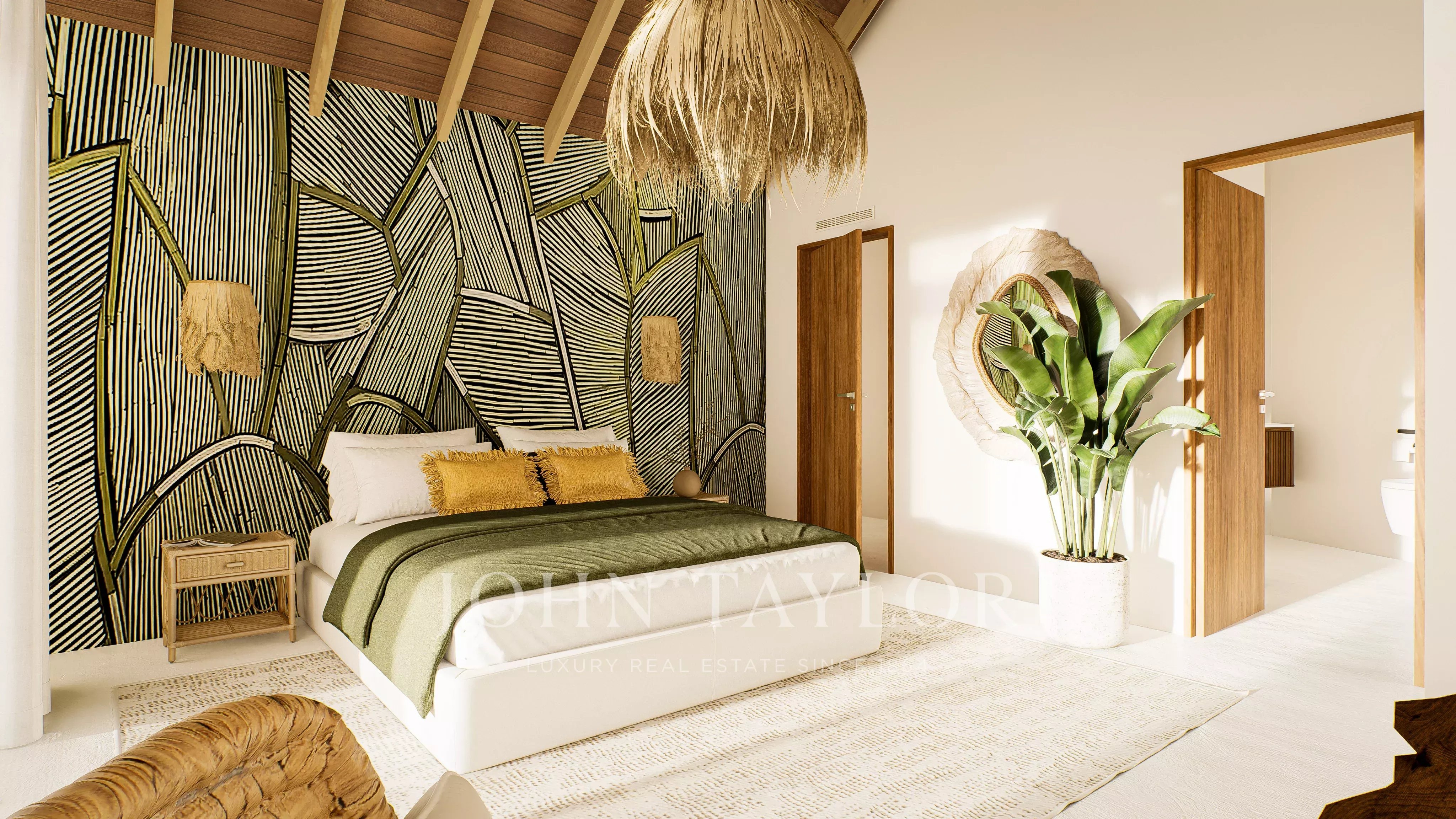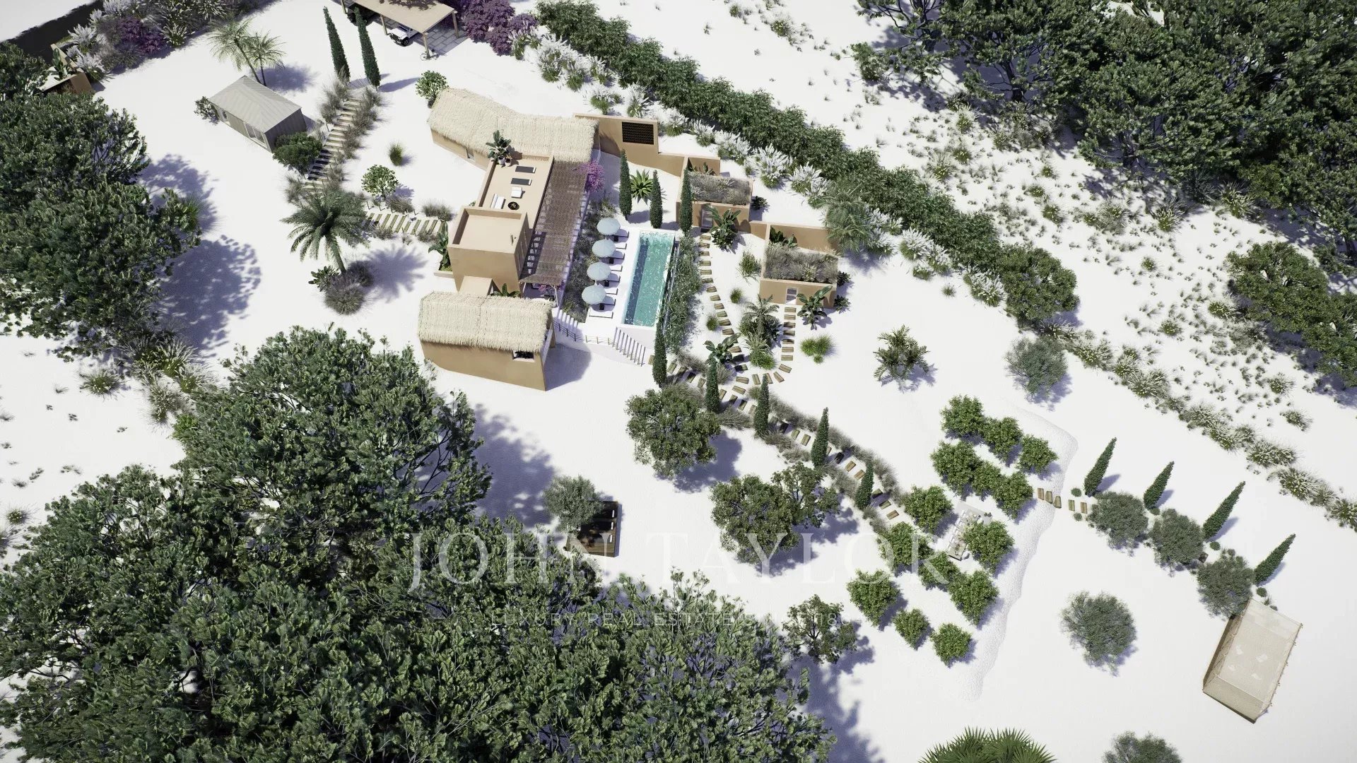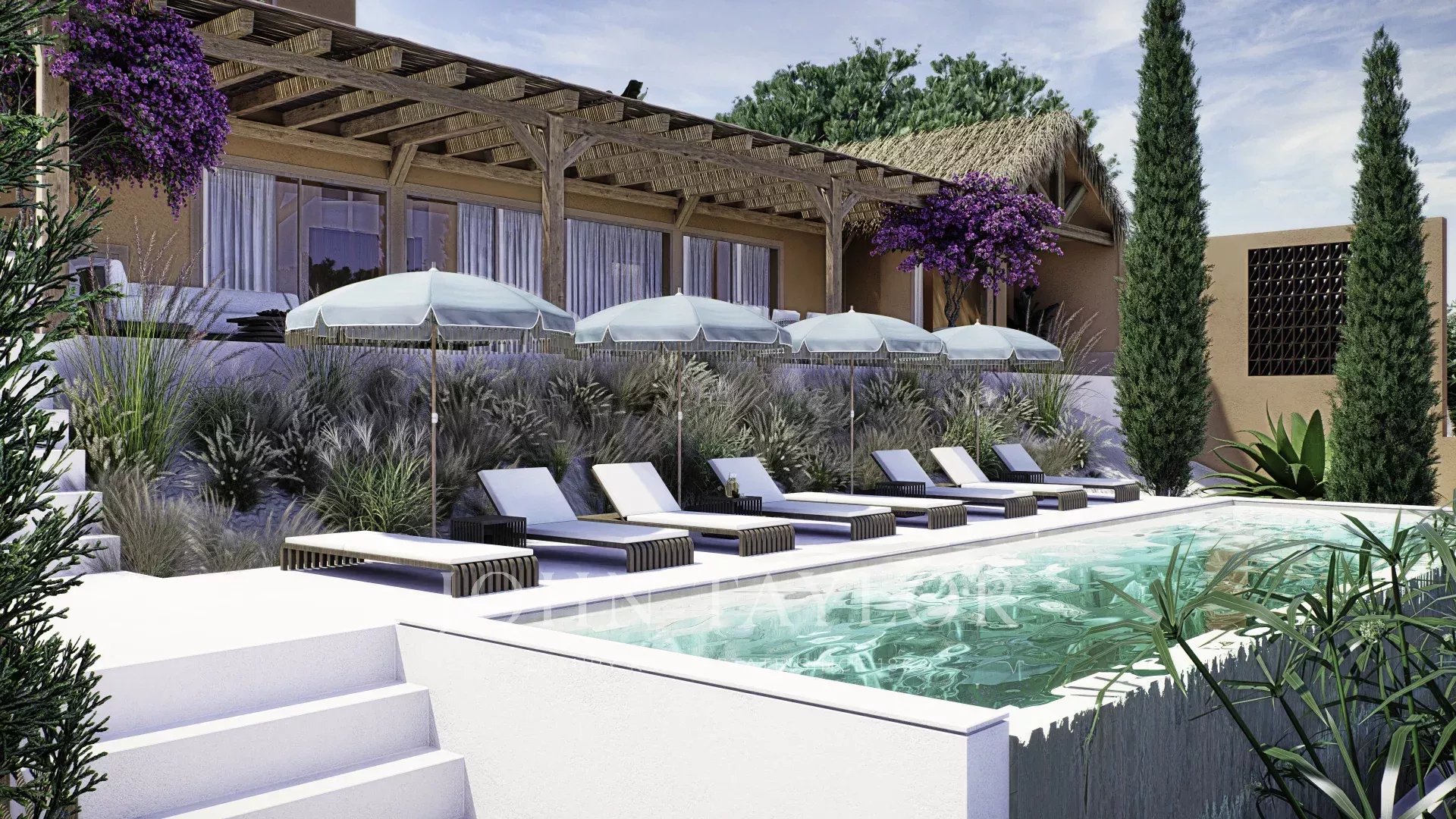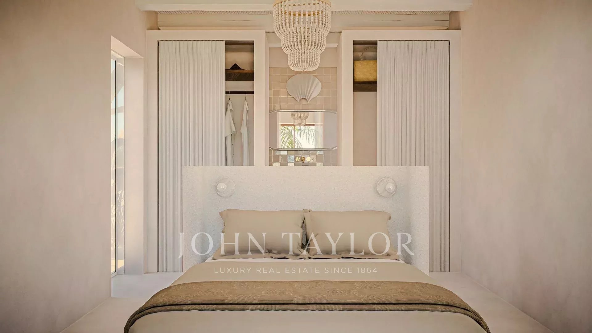 Conçue avec une architecture contemporaine, la propriété se compose d’une villa principale et de deux cabanes indépendantes pour les invités. La villa principale comprend trois suites, une cuisine ouverte avec espace repas et salon, trois terrasses, un rooftop et une salle de sport. Chaque cabane dispose d’une suite et d’une terrasse privative. La propriété est vendue entièrement meublée et comprend également une cave à vin extérieure.
