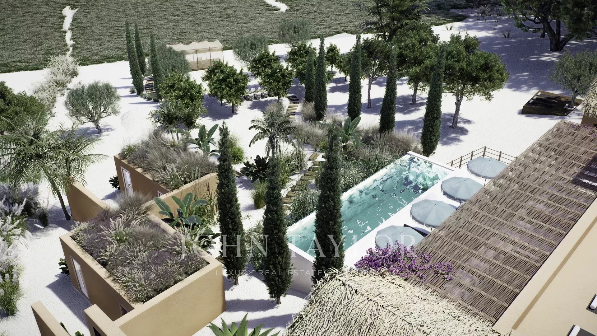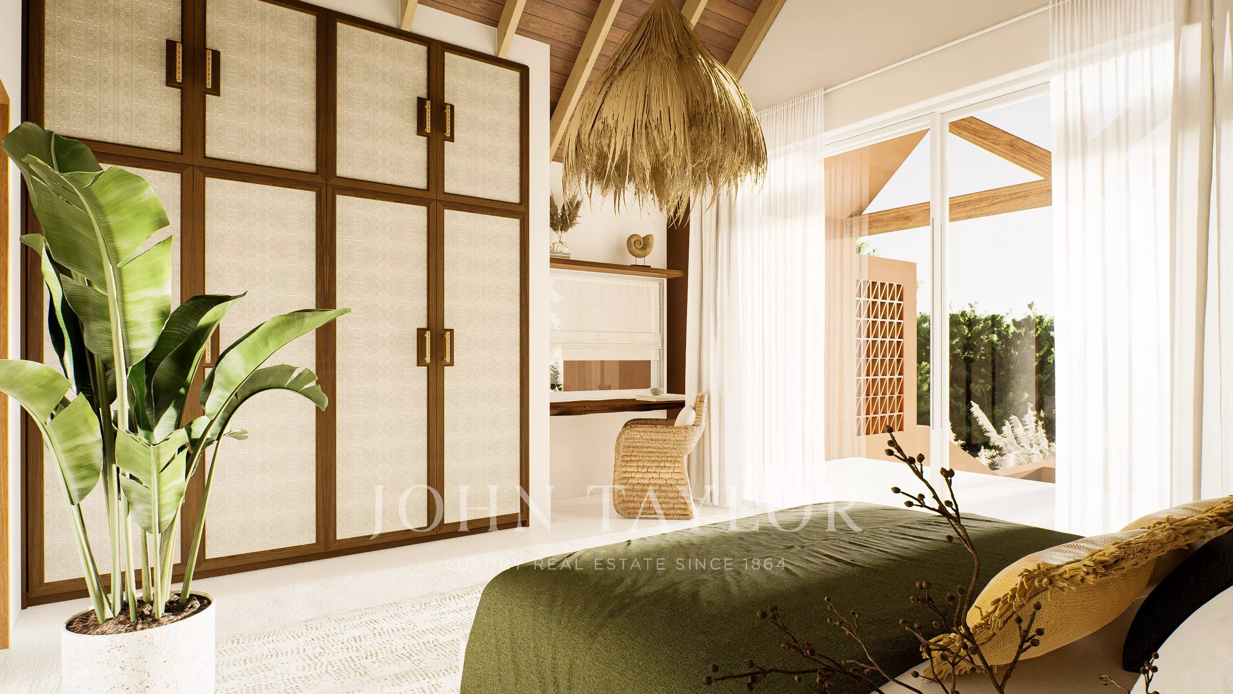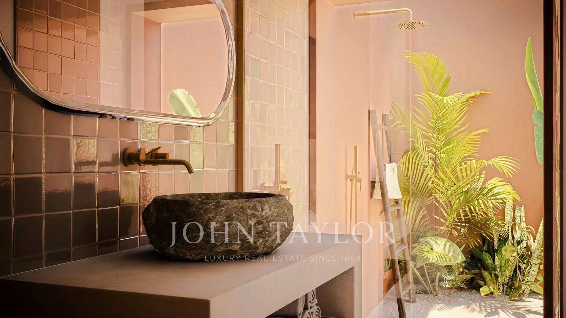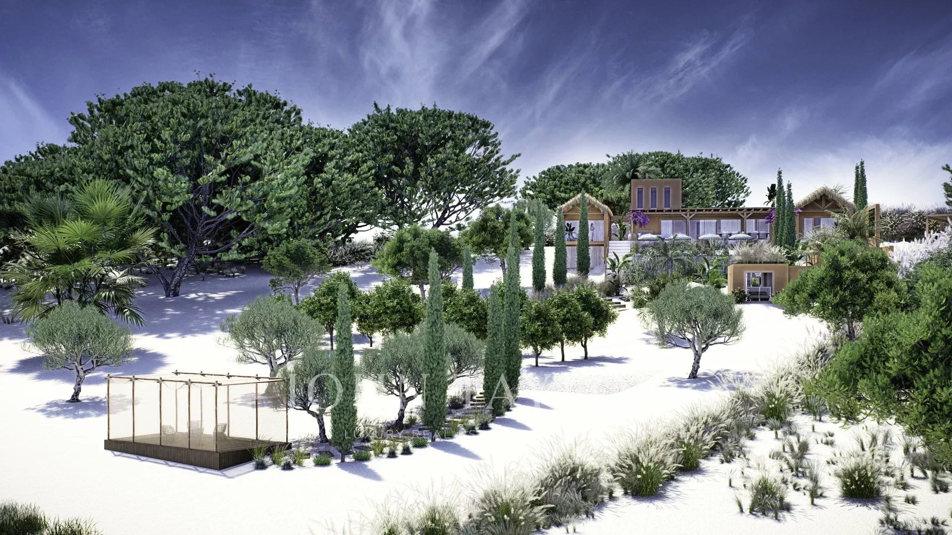 Conçue avec une architecture contemporaine, la propriété se compose d’une villa principale et de deux cabanes indépendantes pour les invités. La villa principale comprend trois suites, une cuisine ouverte avec espace repas et salon, trois terrasses, un rooftop et une salle de sport. Chaque cabane dispose d’une suite et d’une terrasse privative. La propriété est vendue entièrement meublée et comprend également une cave à vin extérieure.