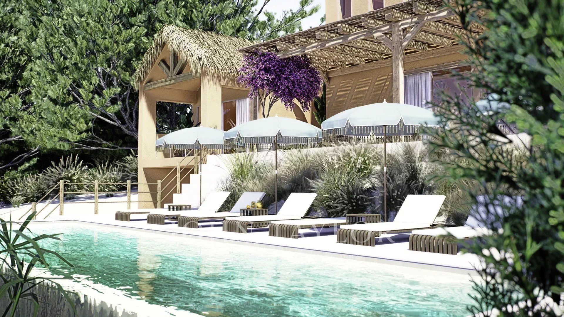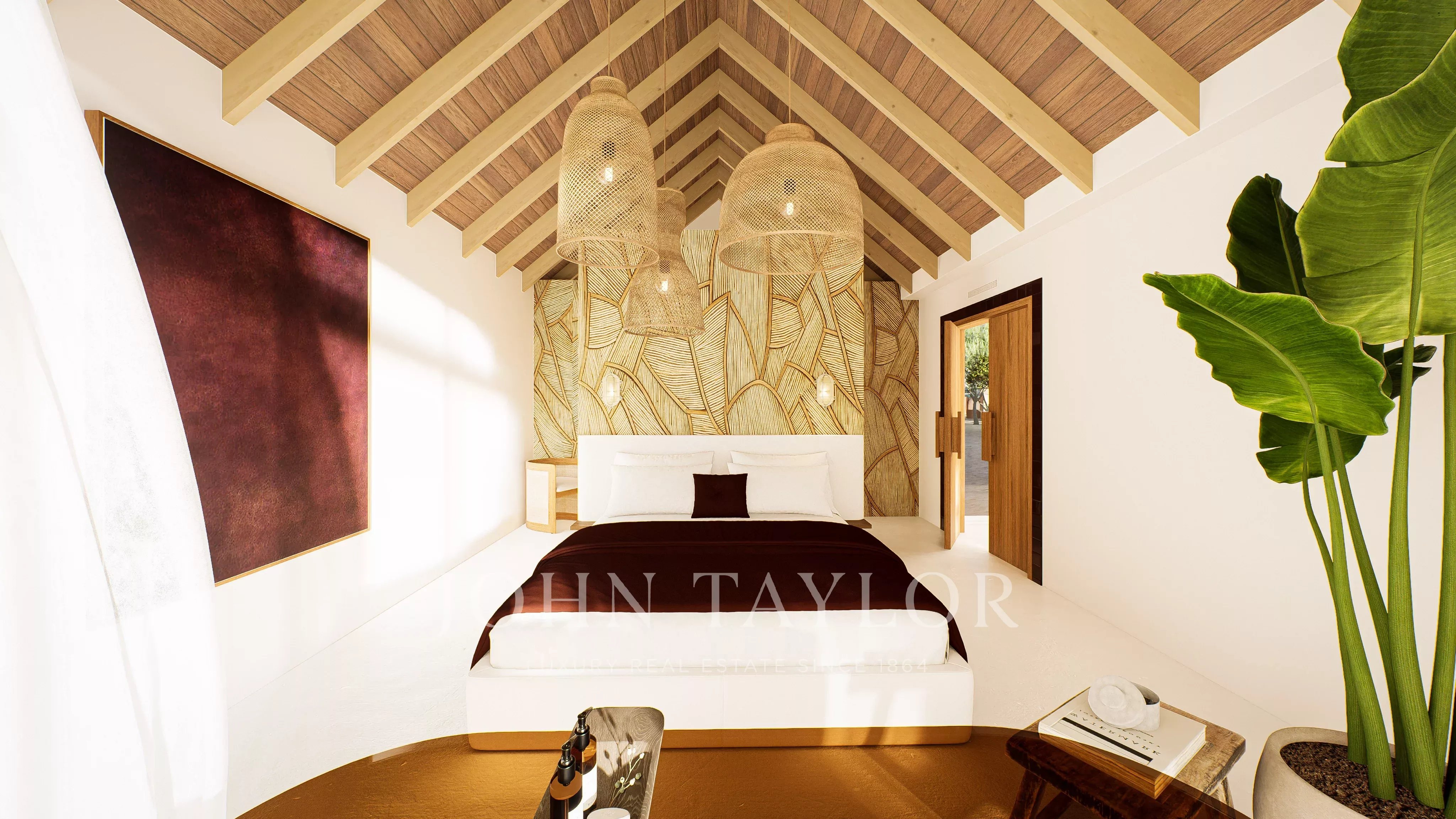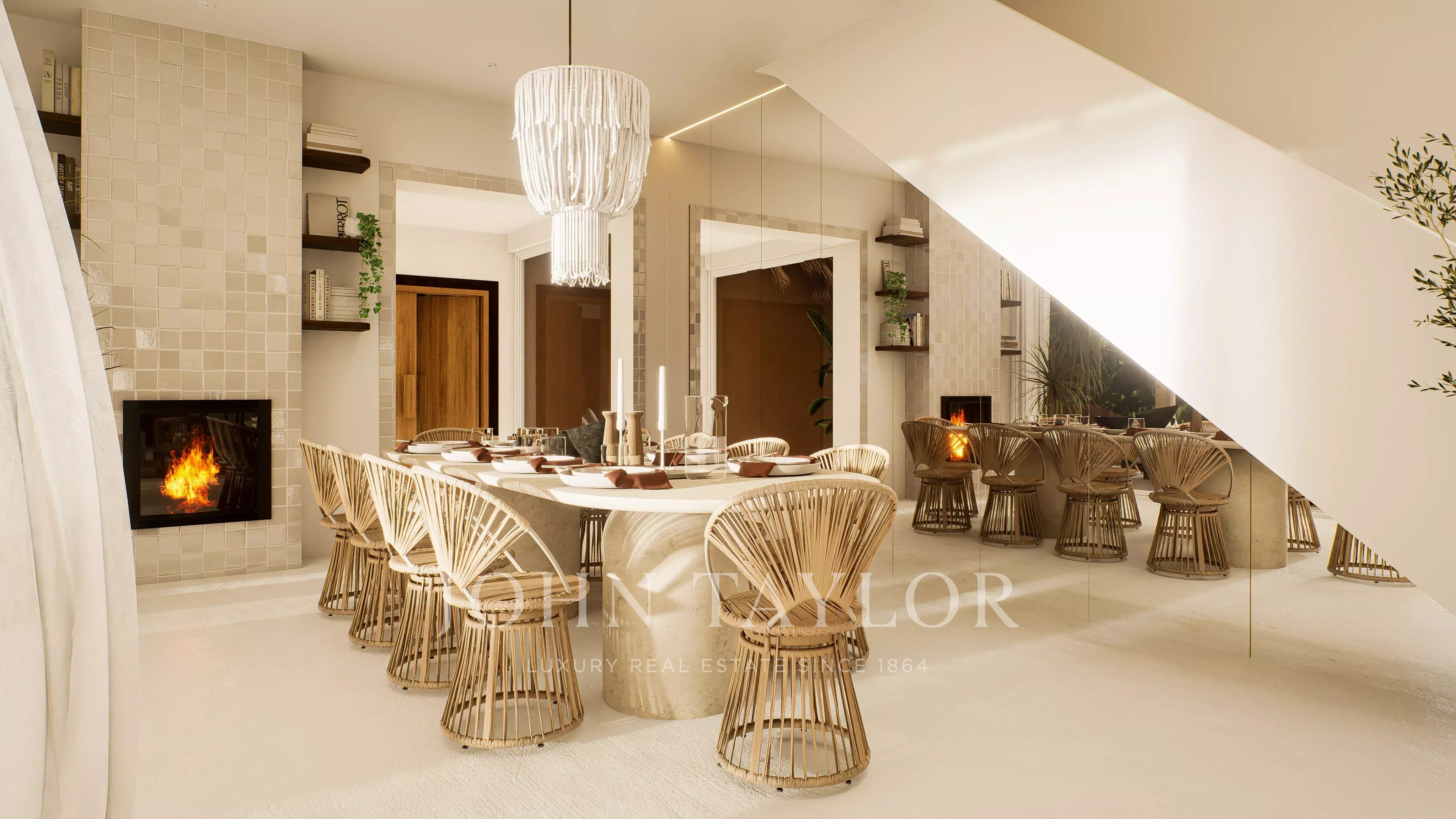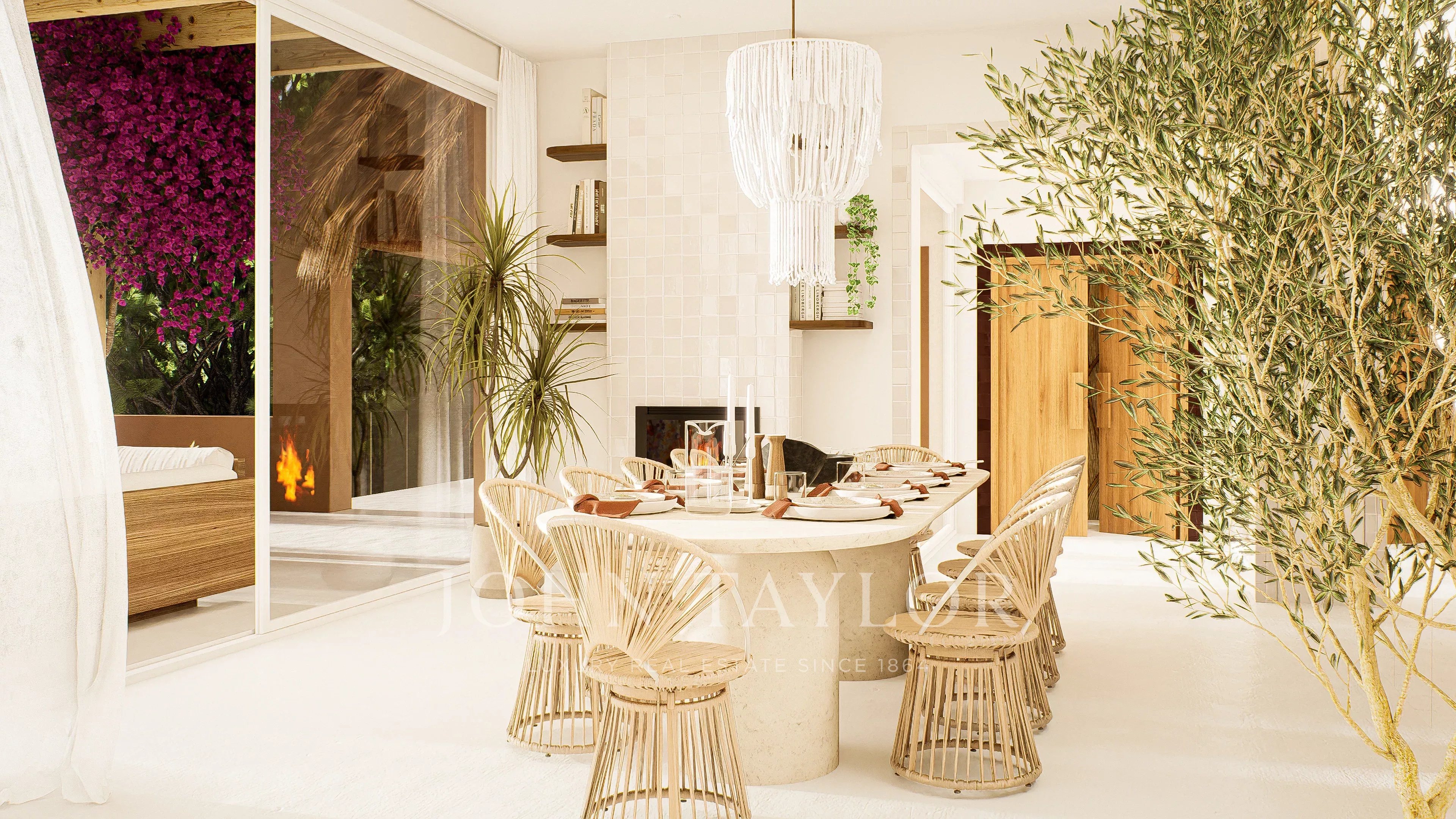 Conçue avec une architecture contemporaine, la propriété se compose d’une villa principale et de deux cabanes indépendantes pour les invités. La villa principale comprend trois suites, une cuisine ouverte avec espace repas et salon, trois terrasses, un rooftop et une salle de sport. Chaque cabane dispose d’une suite et d’une terrasse privative. La propriété est vendue entièrement meublée et comprend également une cave à vin extérieure.