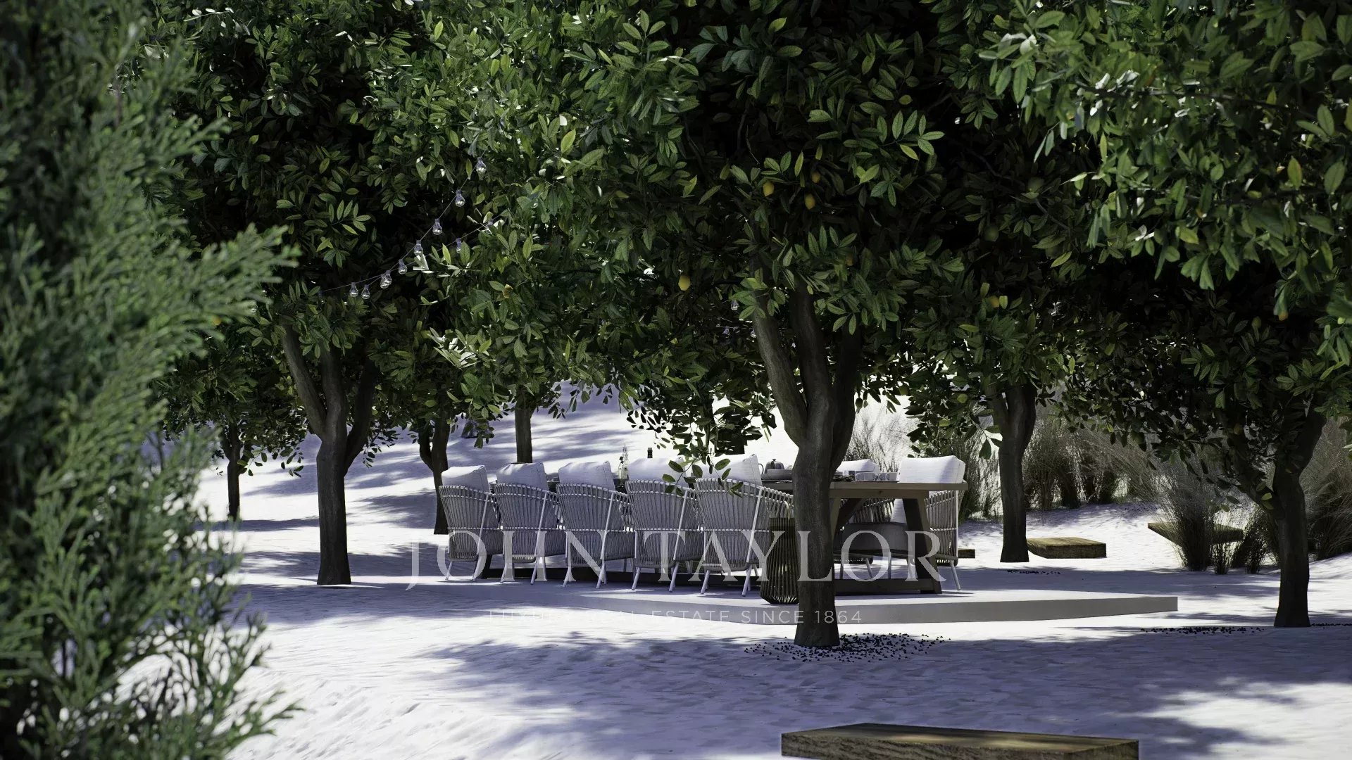 Cette luxueuse propriété, actuellement en construction, offre 335 m² de surface brute sur un terrain de 8 250 m², avec une vue imprenable sur la lagune et les rizières de Melides.
