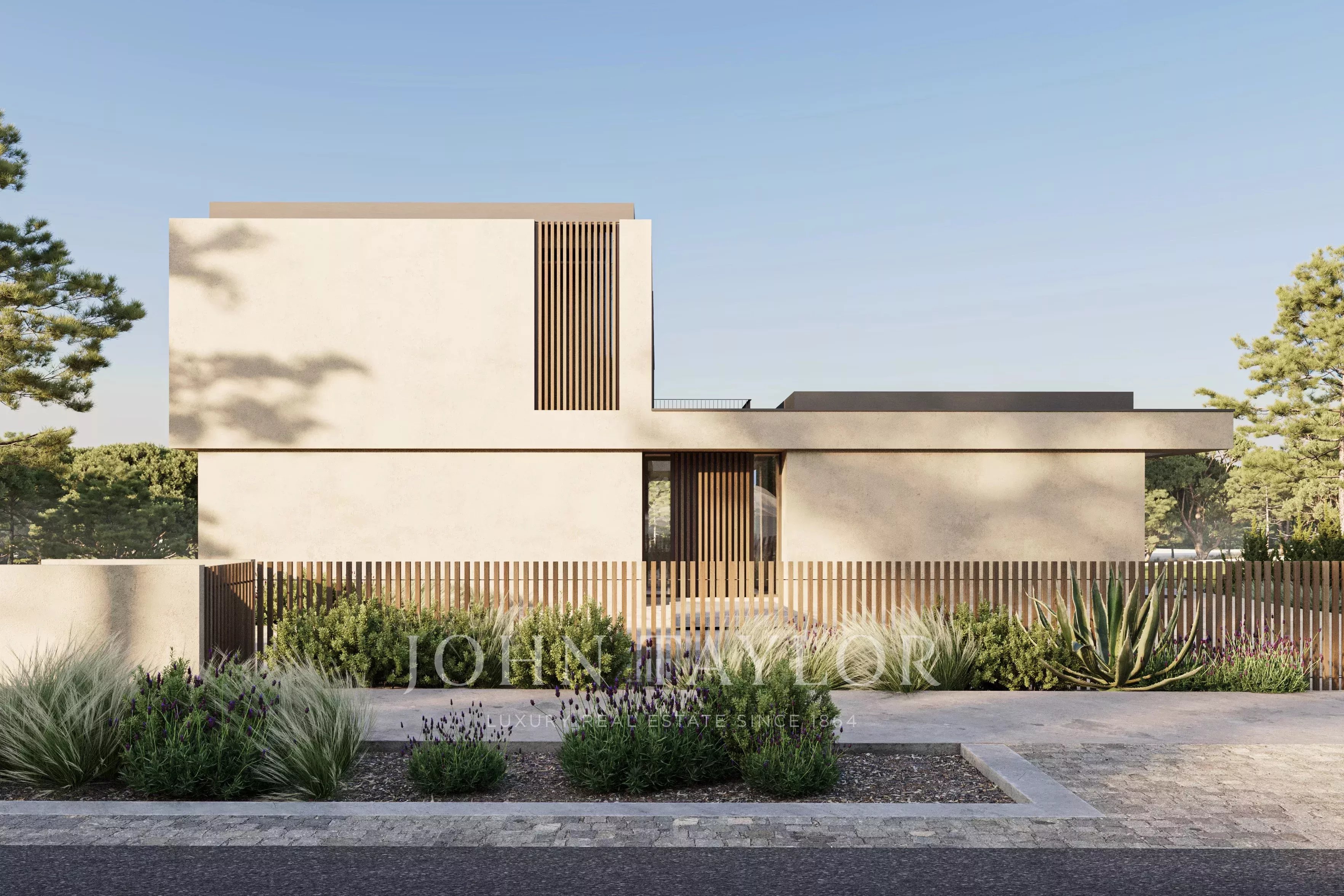L'architecture est définie par des volumes horizontaux épurés, des lignes minimalistes et de grandes ouvertures vitrées qui favorisent la transparence et renforcent la continuité entre les espaces intérieurs et extérieurs.