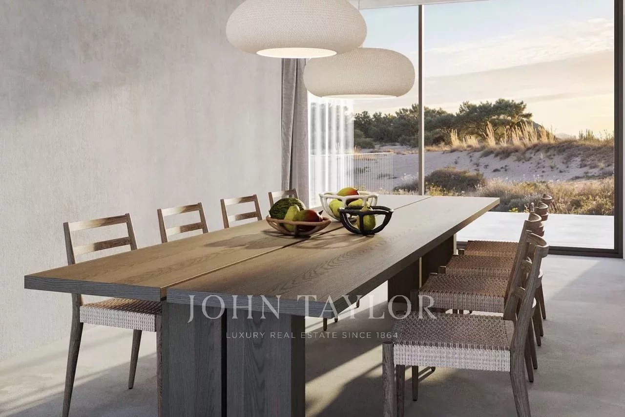 Située dans le prestigieux domaine de Pinheirinho Comporta, cette villa de 4 chambres se trouve sur un généreux terrain de 1 500 m², offrant une grande intimité et s'intégrant parfaitement à la forêt de pins et au paysage de dunes environnants. Conçue par AQA Architecture, la propriété adopte un langage architectural contemporain défini par des volumes bas et linéaires, des matériaux naturels et une approche esthétique sobre.