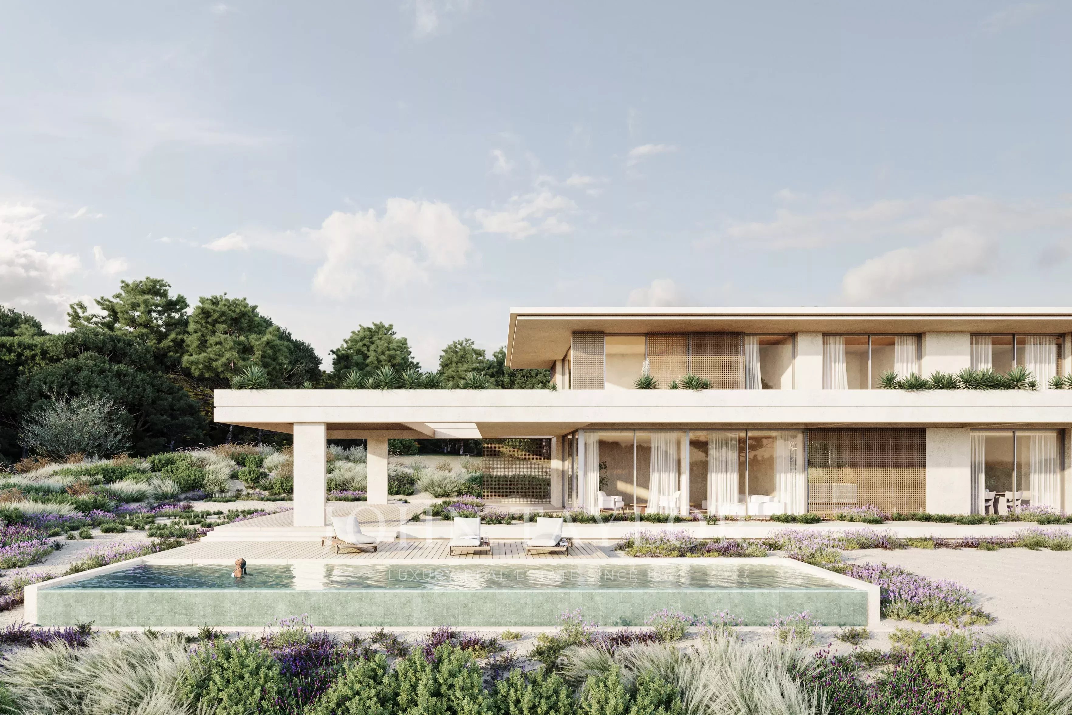 Les espaces extérieurs comprennent 37 m² de terrasses couvertes et 94 m² d'espaces extérieurs non couverts, conçus comme une extension naturelle des espaces de vie. La piscine est un élément central de l'expérience extérieure, renforçant le lien de la villa avec le climat et le paysage.