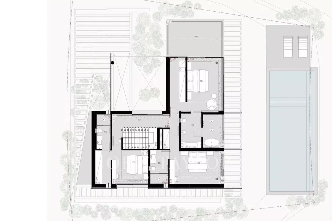 La villa comprend quatre chambres avec salle de bains, un salon spacieux avec accès direct au jardin et un sous-sol baigné de lumière naturelle, prêt à accueillir un home cinéma, un bureau ou une suite supplémentaire. Une buanderie et une zone de service sont également incluses. L'achèvement des travaux est prévu pour la fin de l'année 2025.