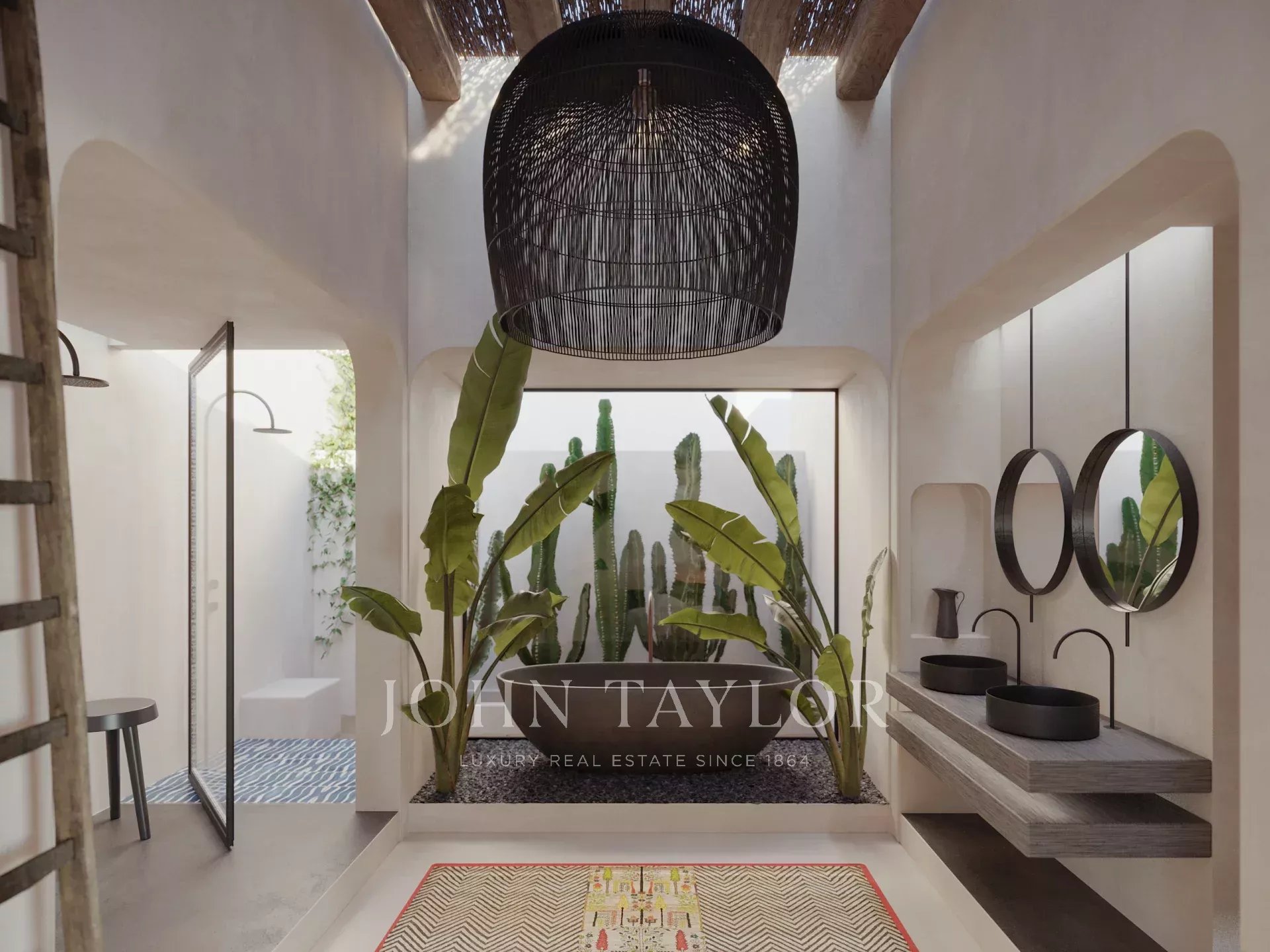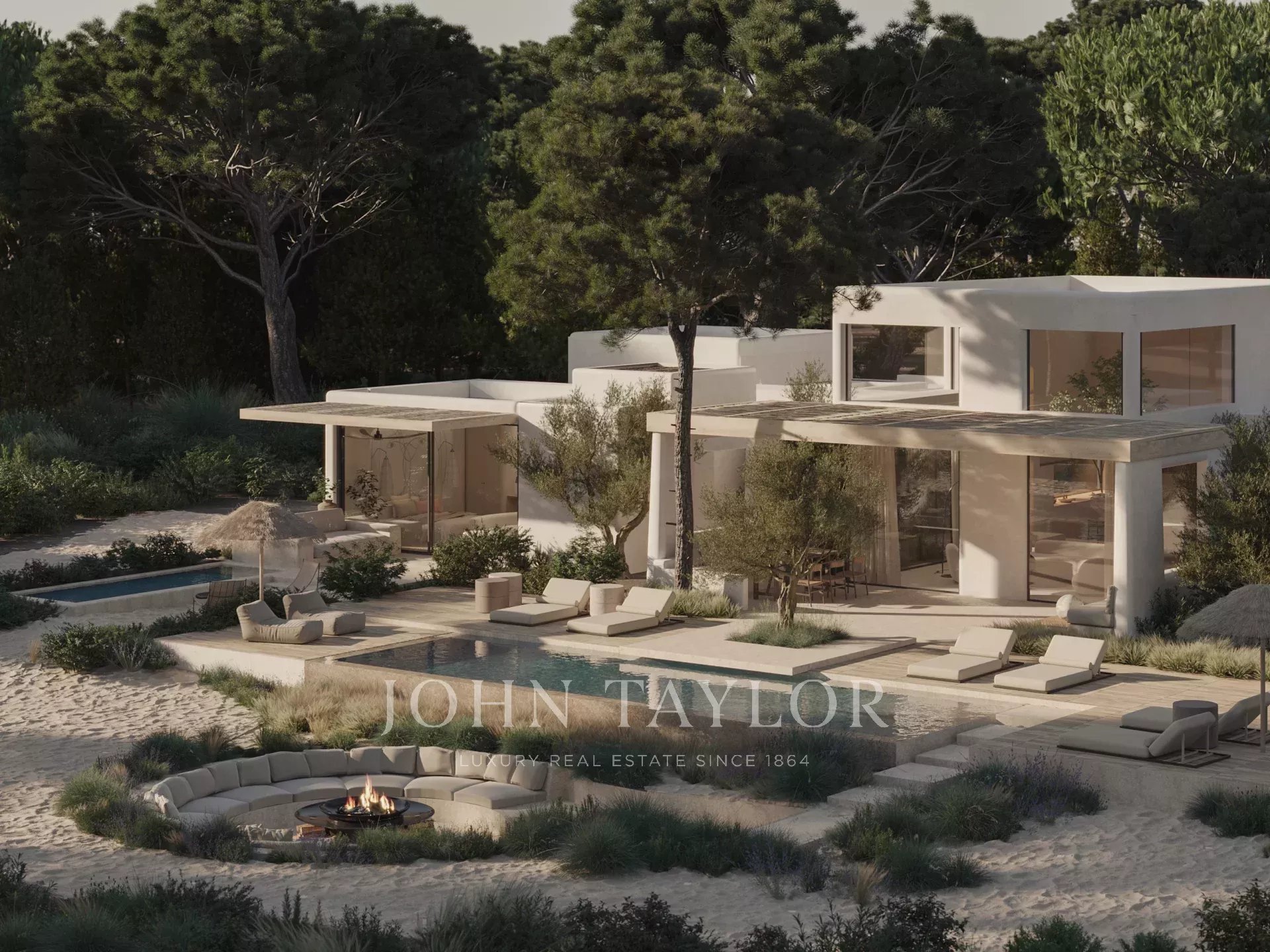 Conçue pour s'harmoniser avec son environnement naturel, la villa comprend quatre suites principales, chacune avec sa propre salle de bains, et de vastes espaces de vie intérieurs et extérieurs. Au cœur du jardin privé se trouve une superbe piscine de 64 m², complétée par deux autres piscines plus petites, créant ainsi une atmosphère d'intimité et de détente totales.