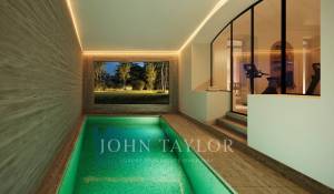 Cette résidence offre également un espace bien-être complet avec piscine intérieure, sauna et salle de sport, une salle de cinéma, une cave à vin, une bibliothèque, un bureau, des suites pour les invités, des chambres de service avec accès indépendant et un garage pouvant accueillir jusqu’à quatre véhicules.