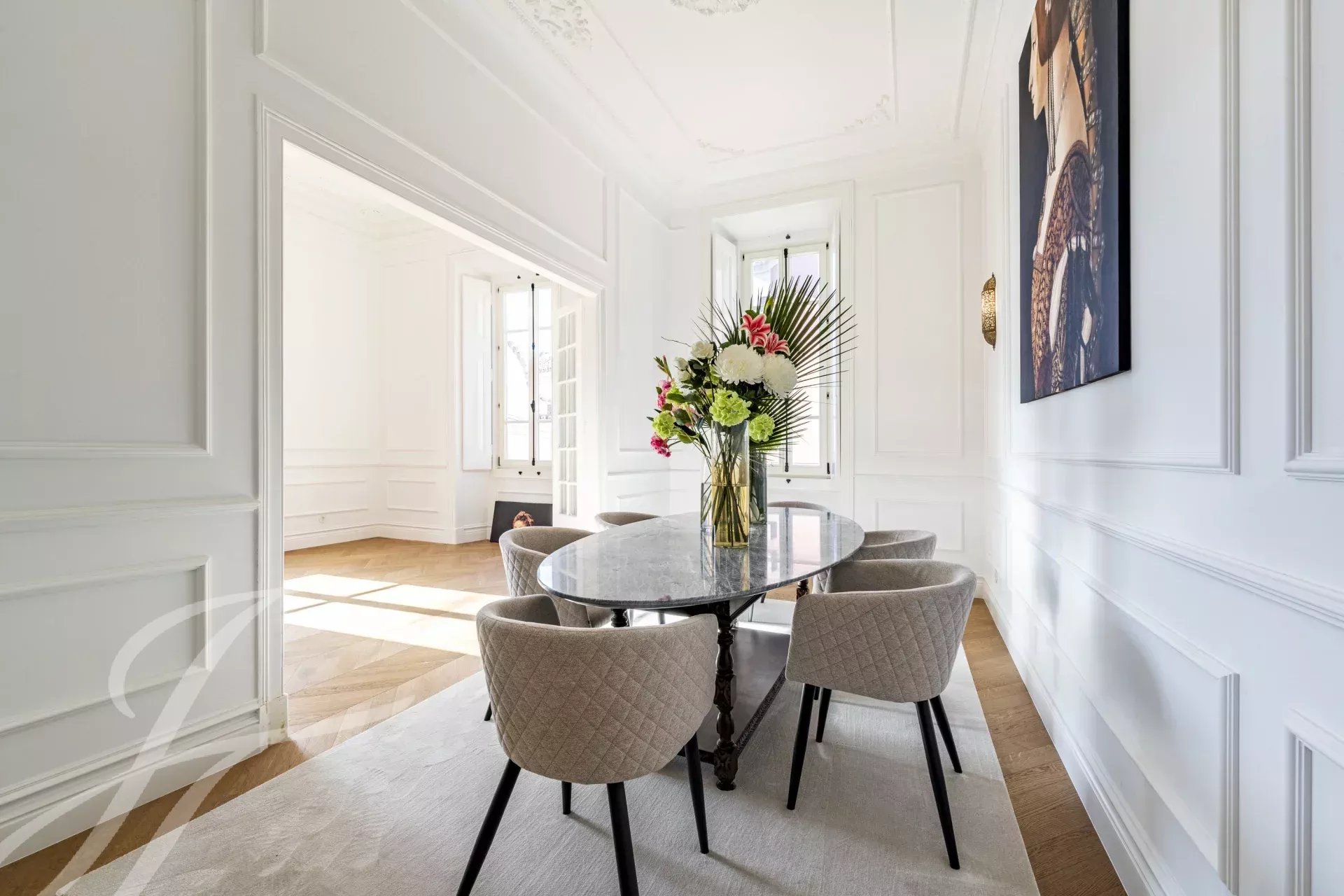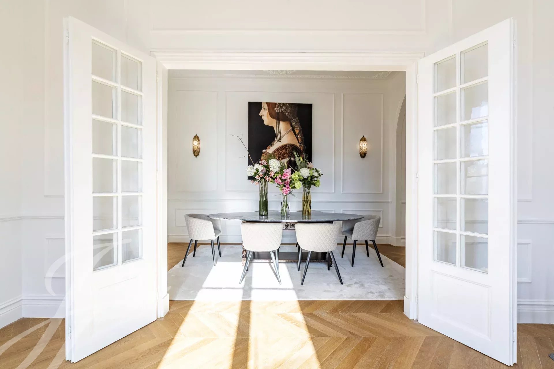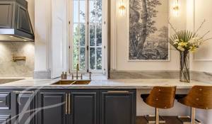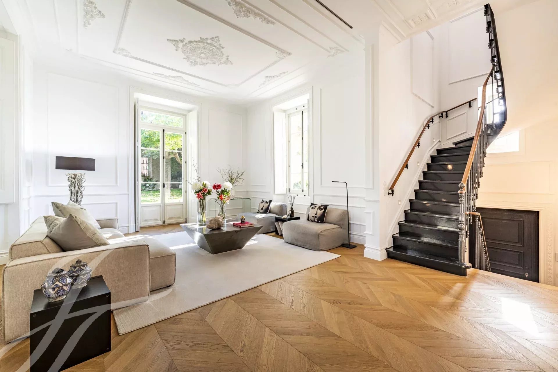 Distribué sur quatre niveaux, le rez-de-chaussée comprend un vaste salon qui s’ouvre directement sur un jardin paysager, créant une parfaite continuité entre les espaces intérieurs et extérieurs. La salle à manger, de style formel, et la cuisine entièrement équipée sont idéales pour des moments conviviaux, qu’ils soient décontractés ou plus sophistiqués.