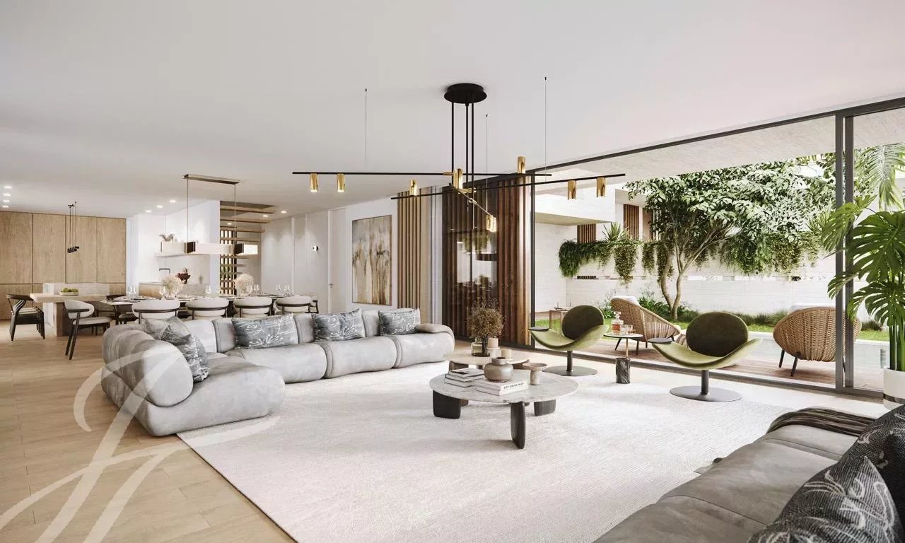 Le projet prévoit un sous-sol avec garage pour quatre véhicules, espace technique, rangements et une suite bénéficiant de lumière naturelle, des espaces sociaux au rez-de-chaussée, une zone privée de chambres à l’étage, ainsi qu’une terrasse sur le toit de 84 m² avec vue dégagée.