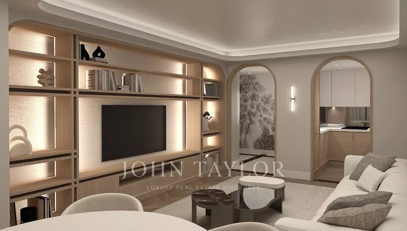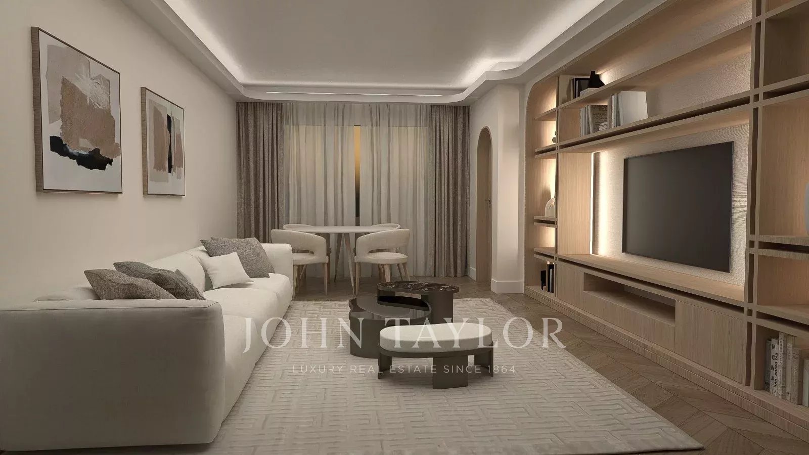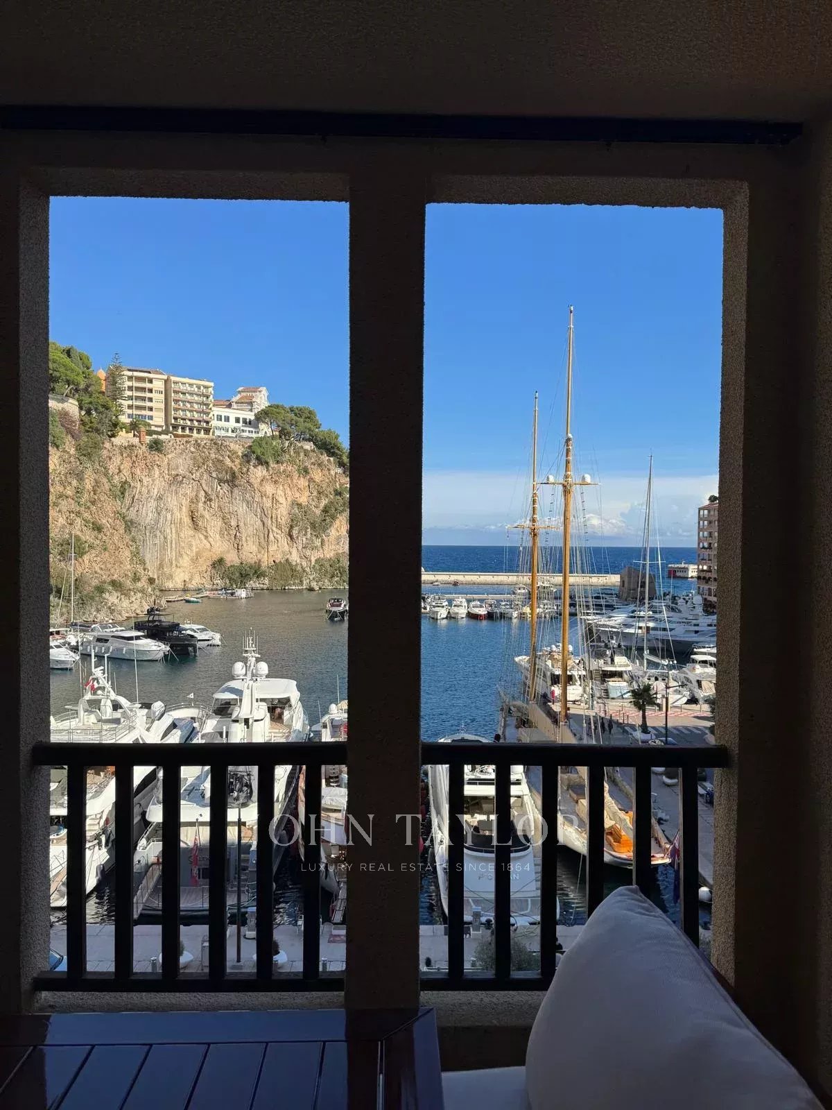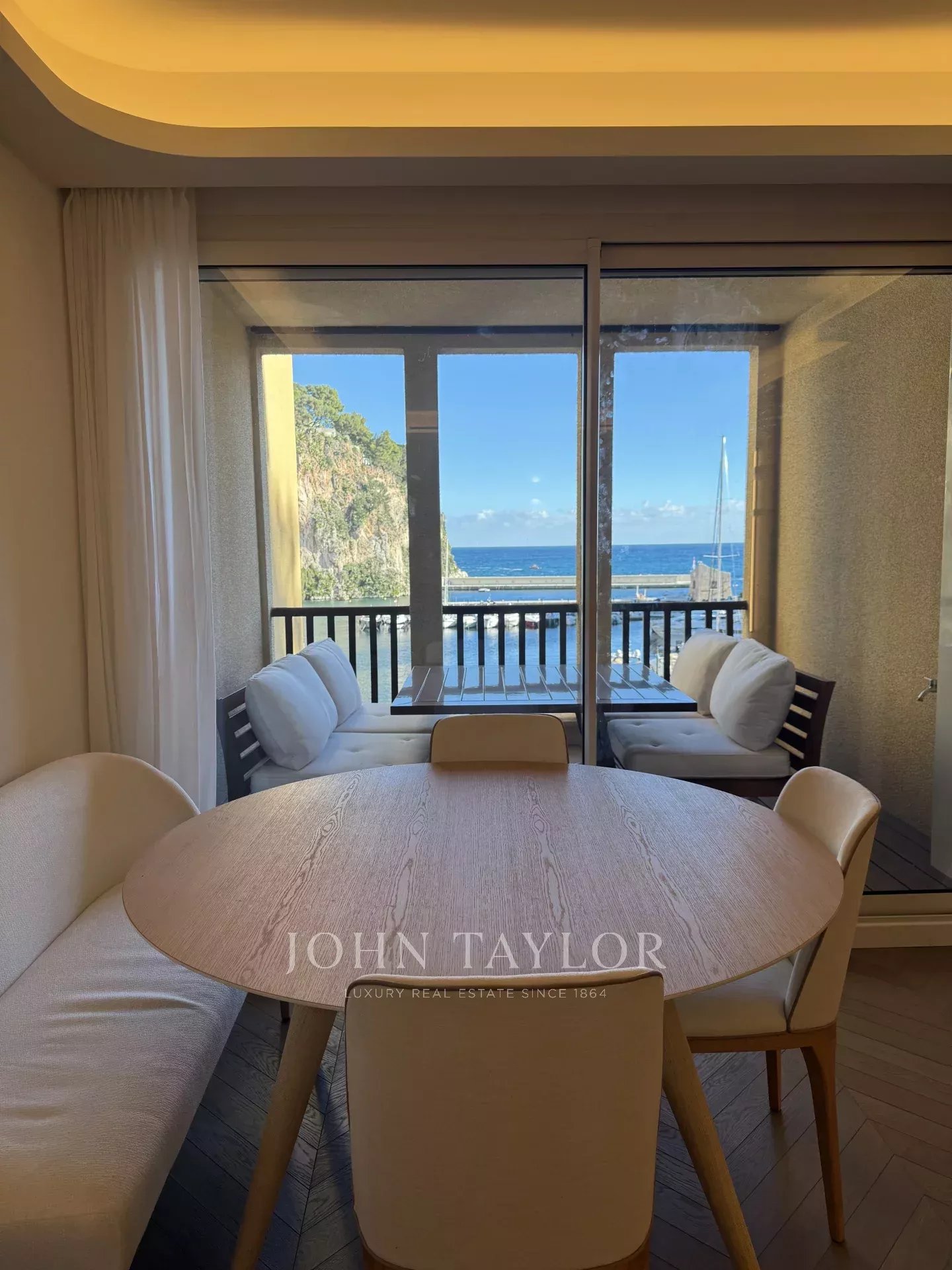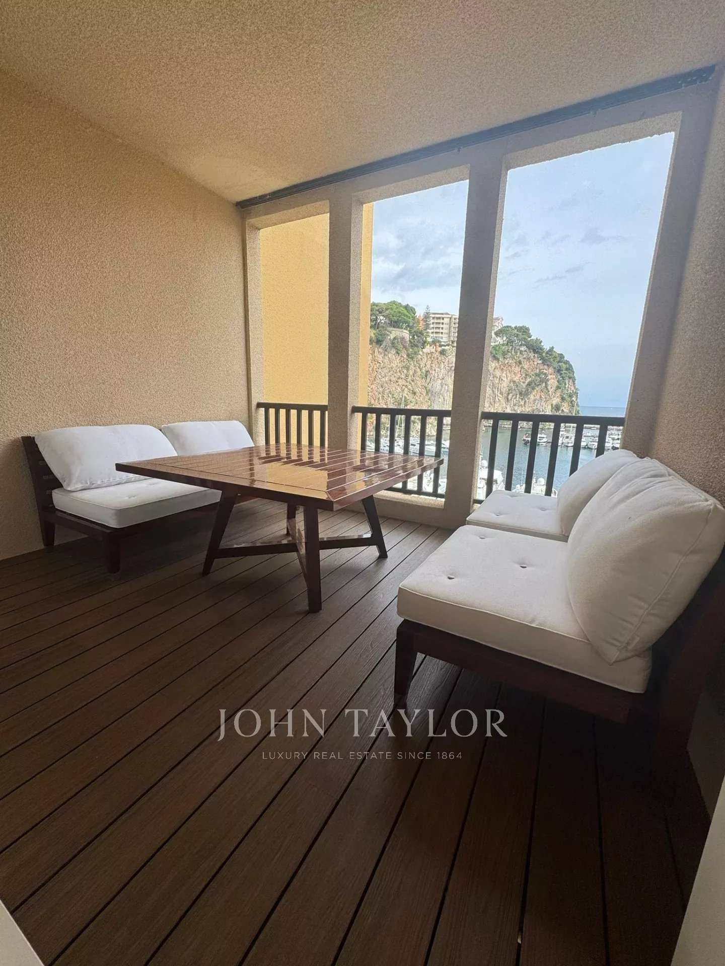 L'appartement offre un espace de vie généreux et lumineux, avec des baies vitrées qui donnent sur une vue imprenable sur le Port de Fontvieille et le Rocher.