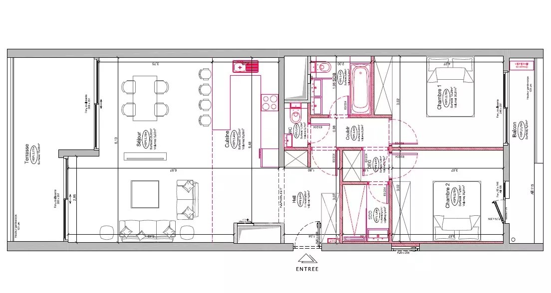 Cet appartement, très lumineux et offrant une belle vue mer, se compose de :