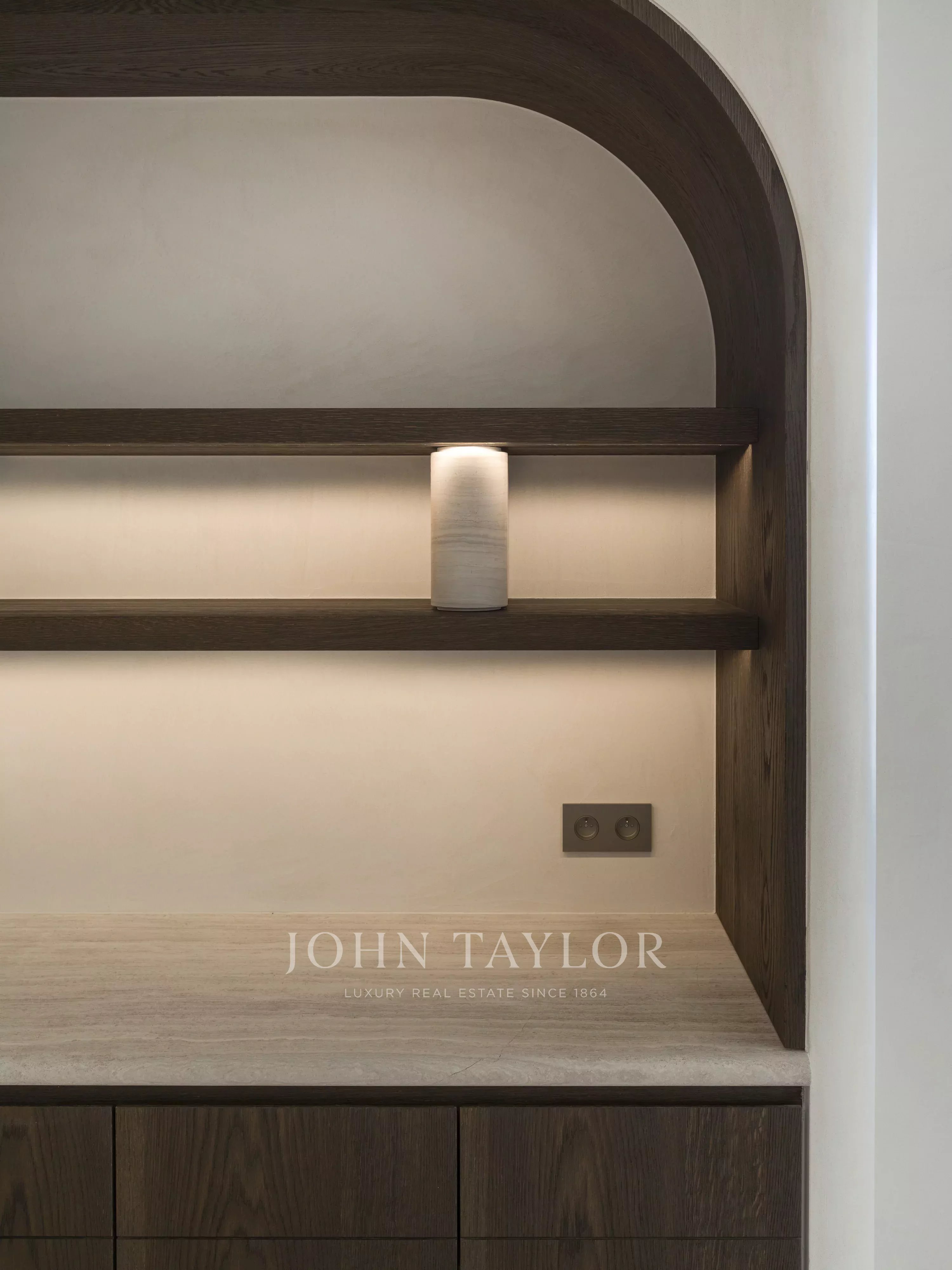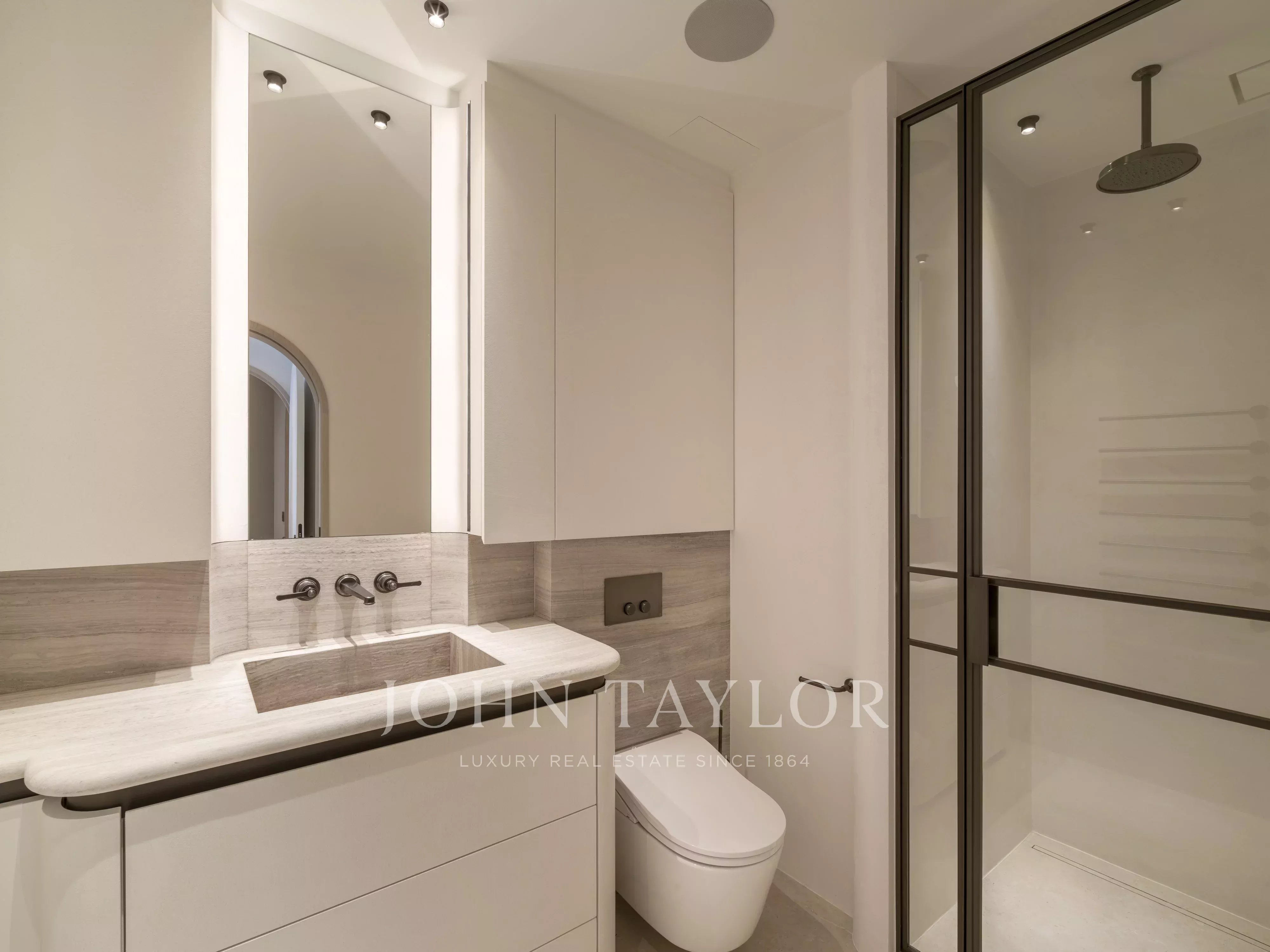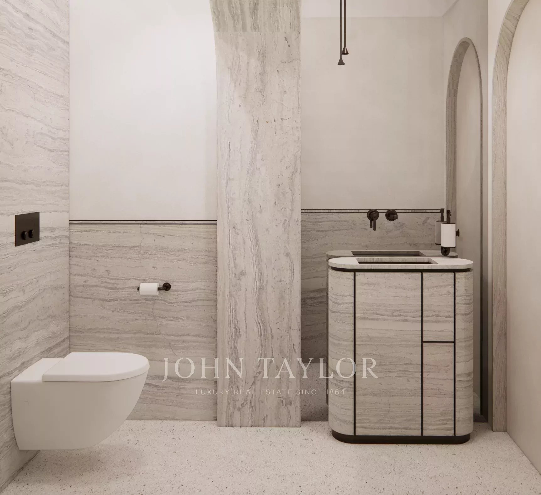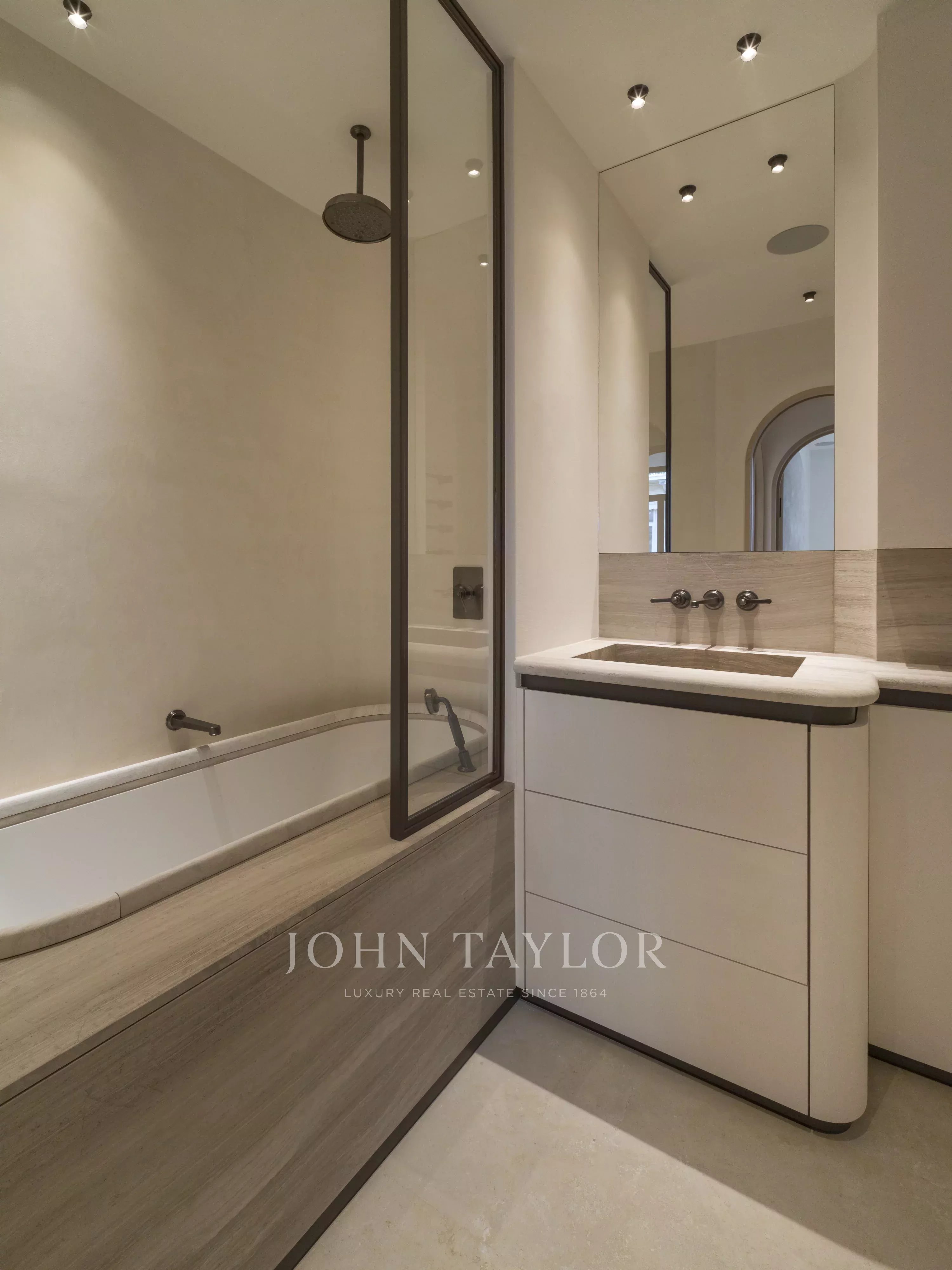 Cet appartement incarne une élégance subtile, portée par des finitions de grande qualité et le choix de matériaux nobles : bois sur mesure, pierre naturelle et métal travaillé avec finesse. Les boiseries apportent une chaleur intemporelle, tandis que la pierre et le métal dialoguent avec équilibre pour créer une atmosphère à la fois authentique et résolument contemporaine. Chaque espace a été pensé dans le détail, offrant une parfaite harmonie entre tradition et modernité.