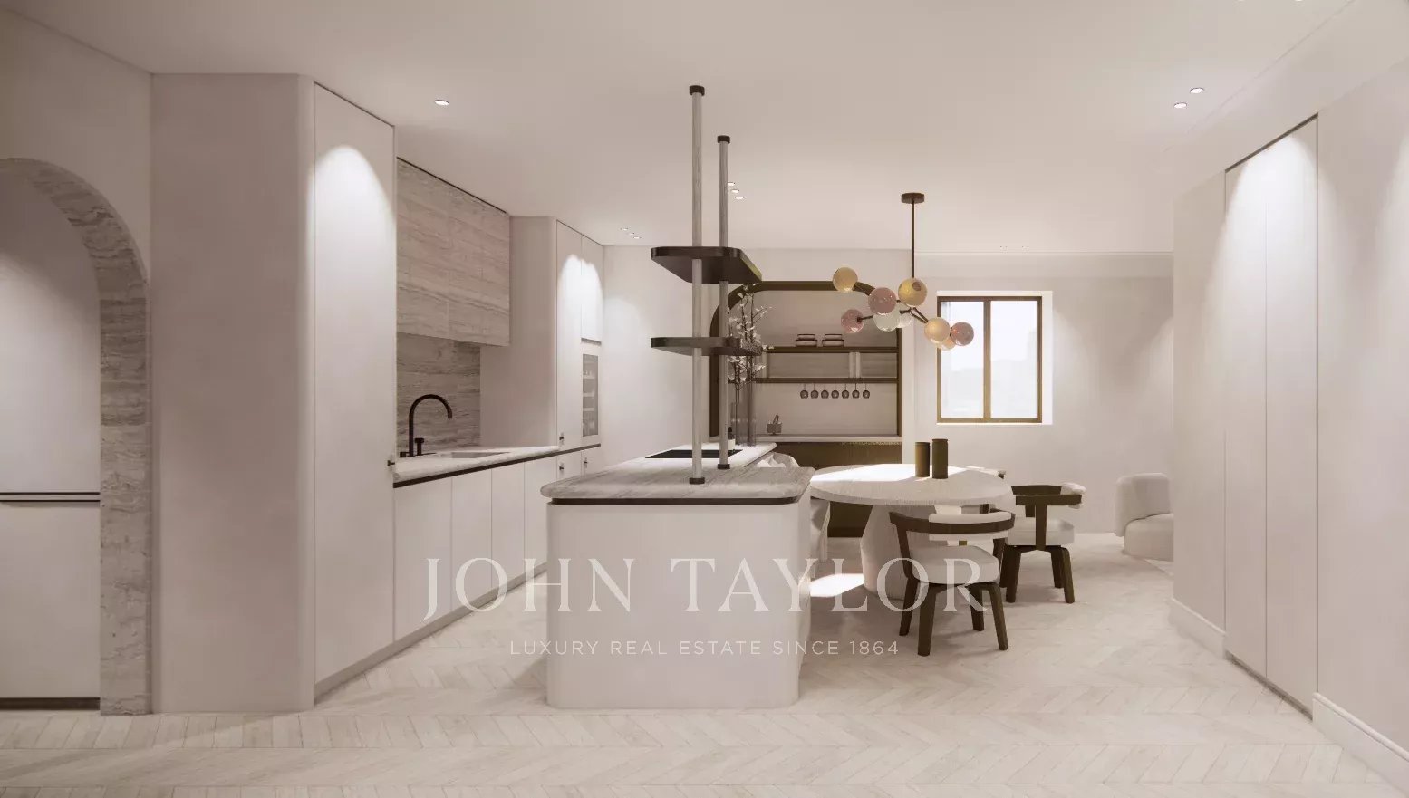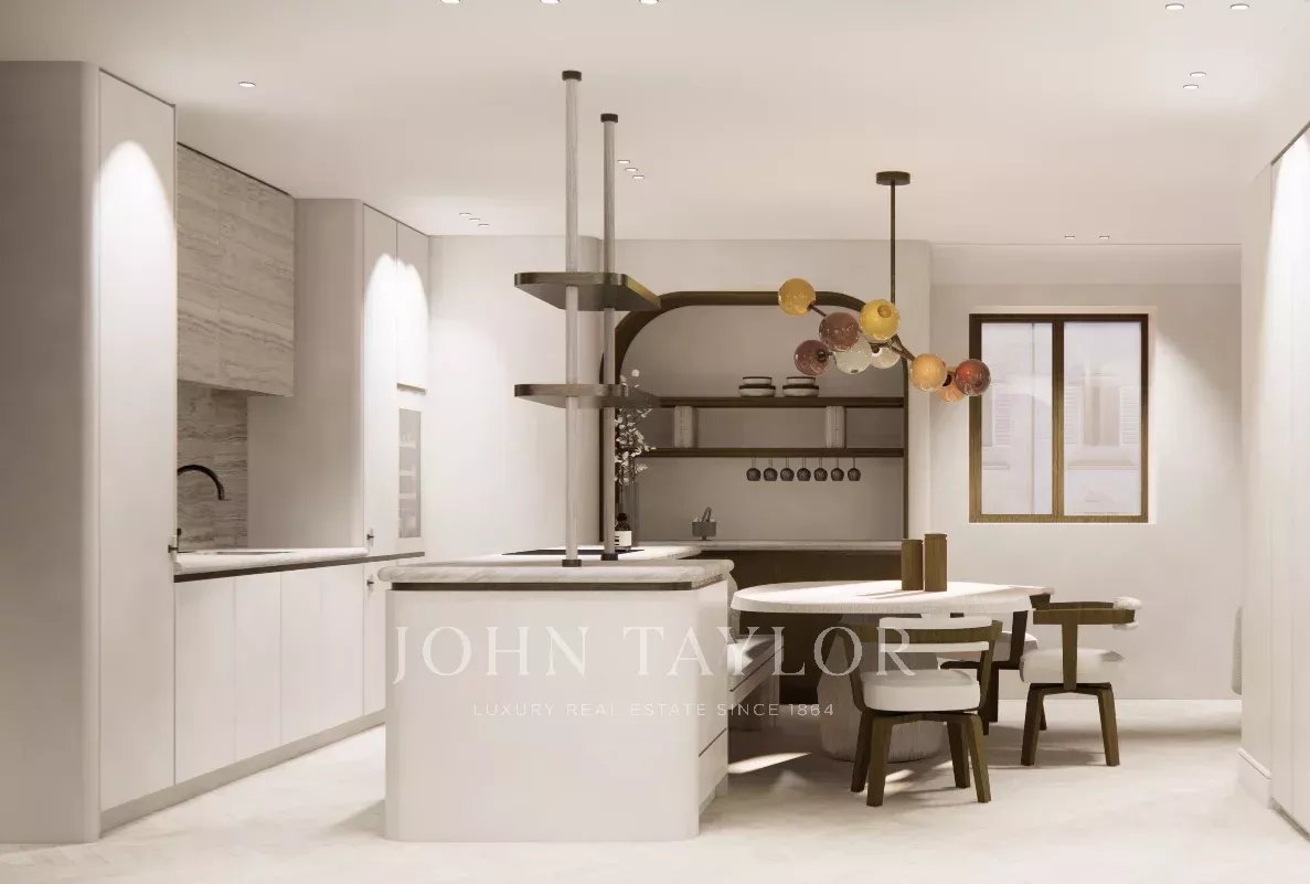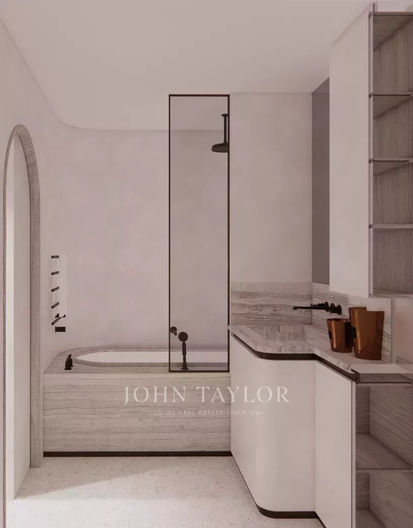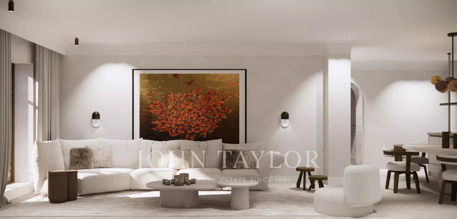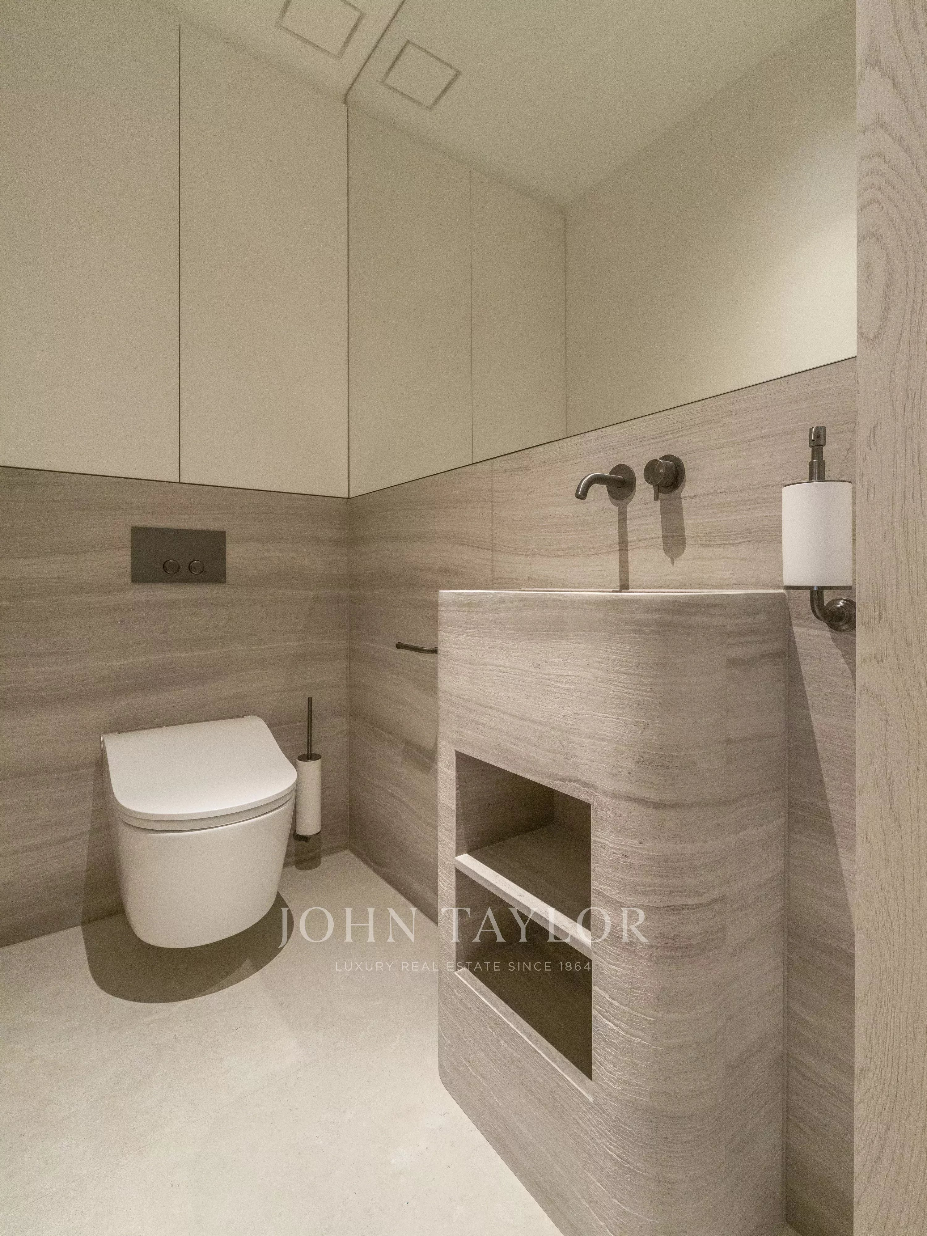 Cet appartement incarne une élégance subtile, portée par des finitions de grande qualité et le choix de matériaux nobles : bois sur mesure, pierre naturelle et métal travaillé avec finesse. Les boiseries apportent une chaleur intemporelle, tandis que la pierre et le métal dialoguent avec équilibre pour créer une atmosphère à la fois authentique et résolument contemporaine. Chaque espace a été pensé dans le détail, offrant une parfaite harmonie entre tradition et modernité.