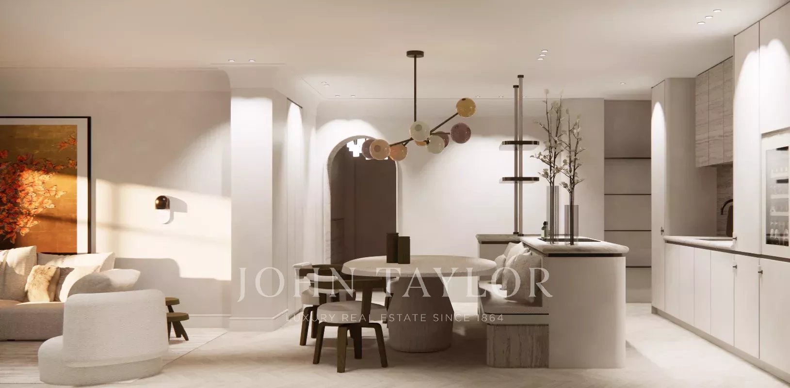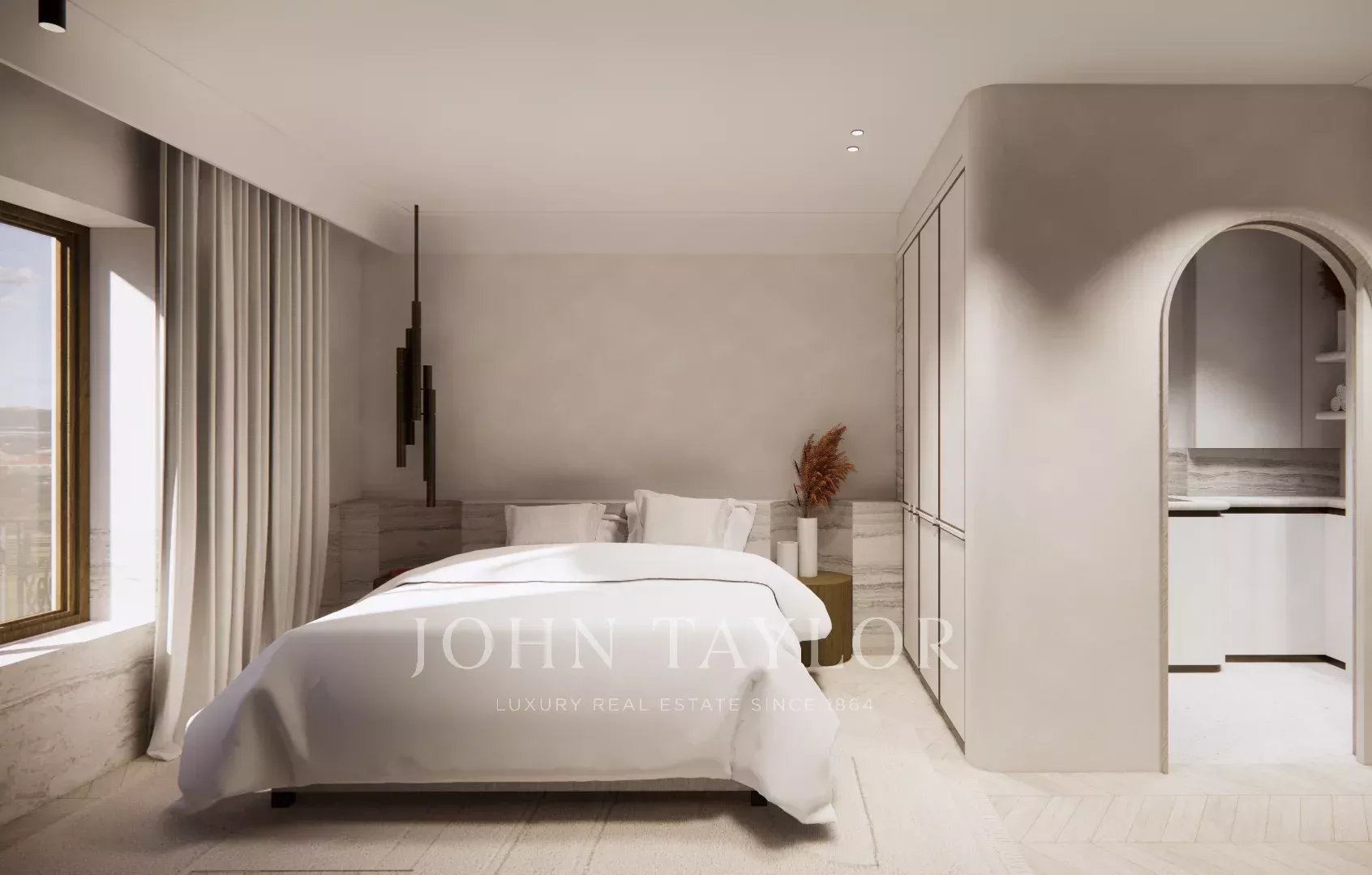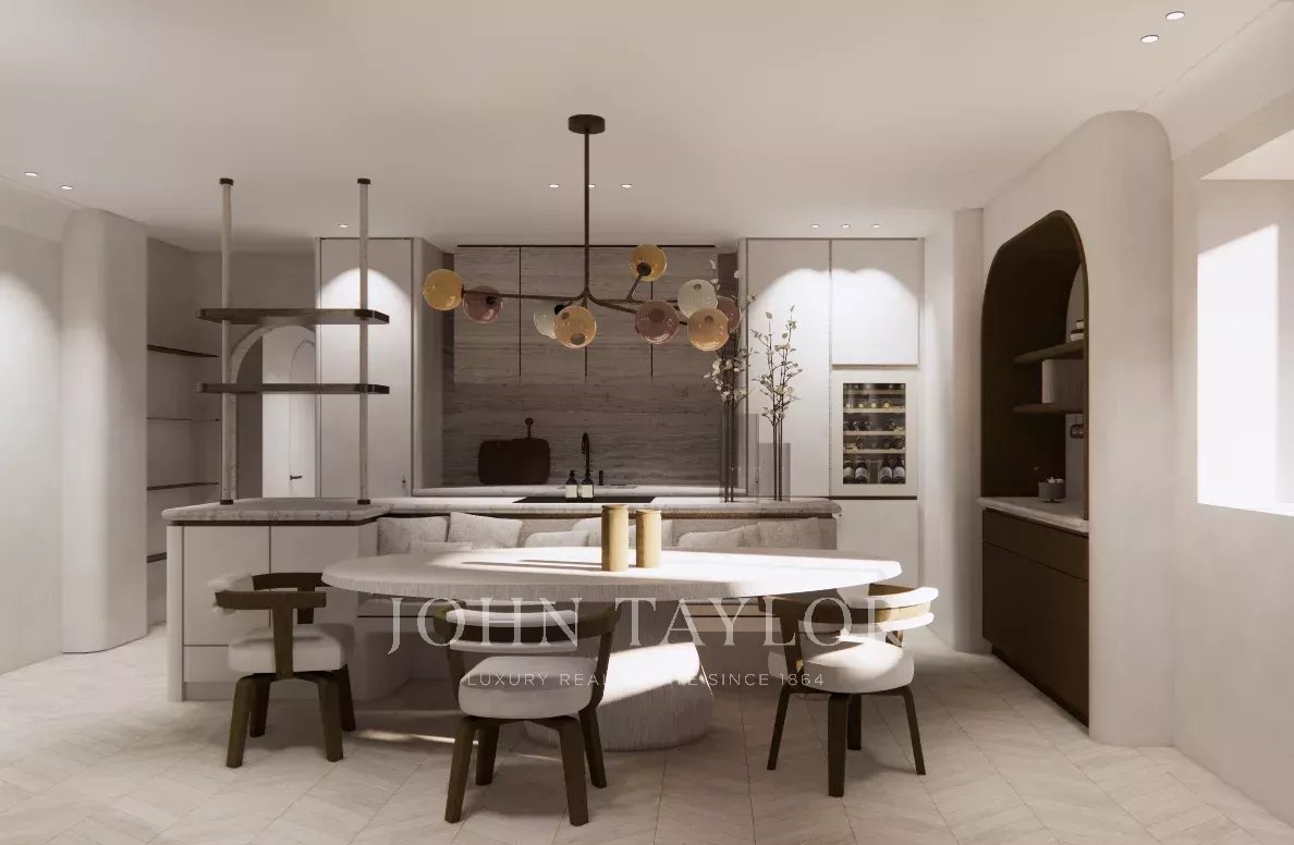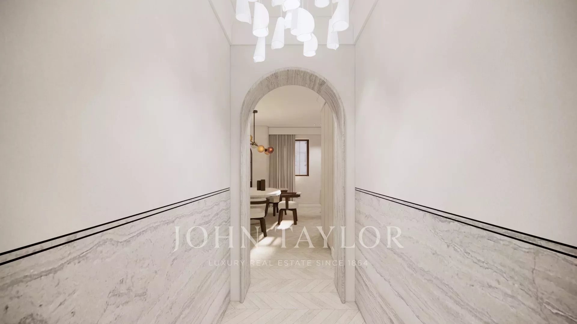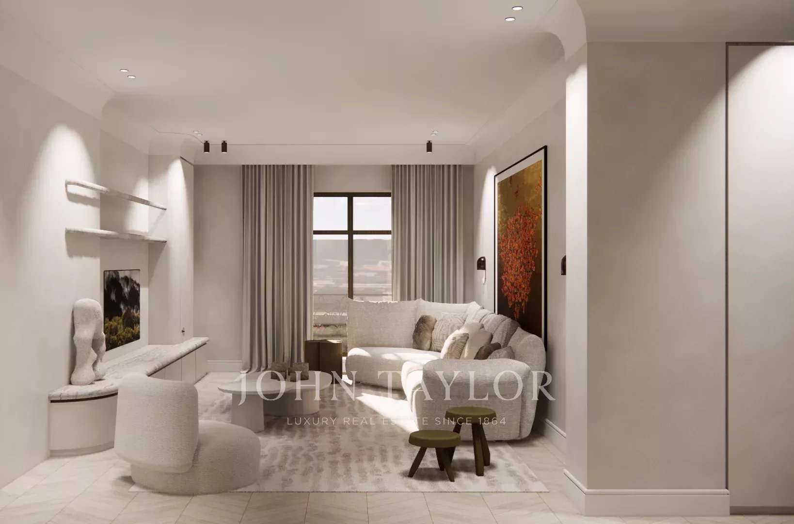 Cet appartement incarne une élégance subtile, portée par des finitions de grande qualité et le choix de matériaux nobles : bois sur mesure, pierre naturelle et métal travaillé avec finesse. Les boiseries apportent une chaleur intemporelle, tandis que la pierre et le métal dialoguent avec équilibre pour créer une atmosphère à la fois authentique et résolument contemporaine. Chaque espace a été pensé dans le détail, offrant une parfaite harmonie entre tradition et modernité.