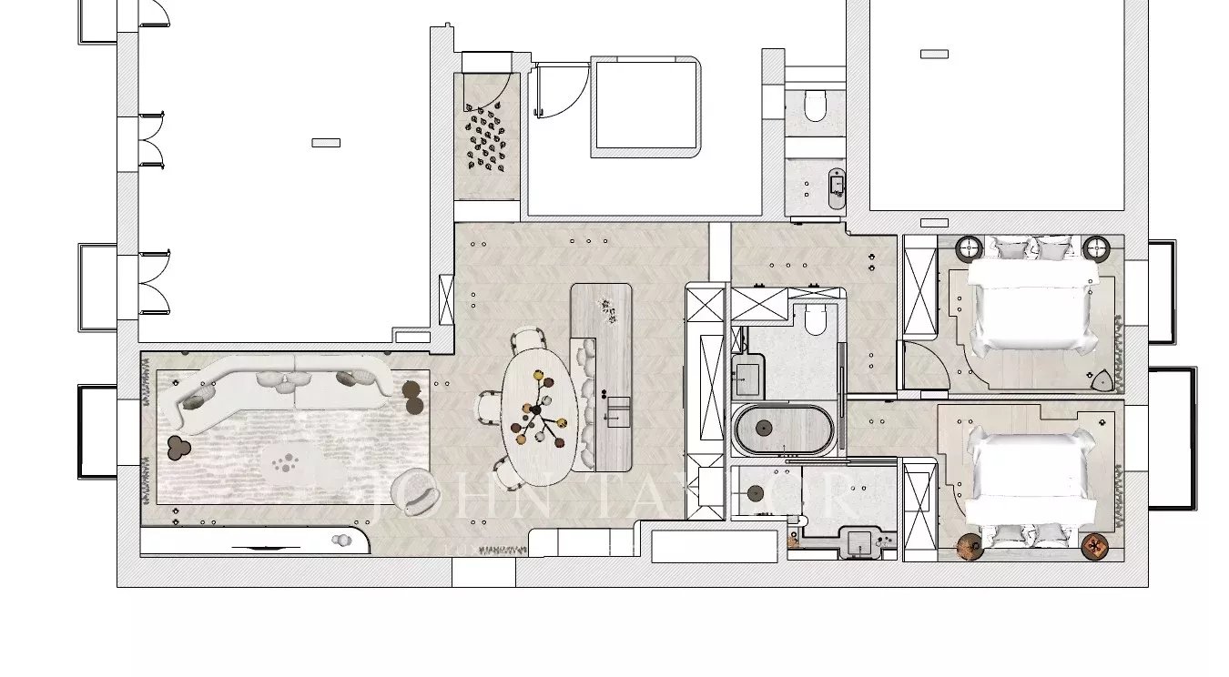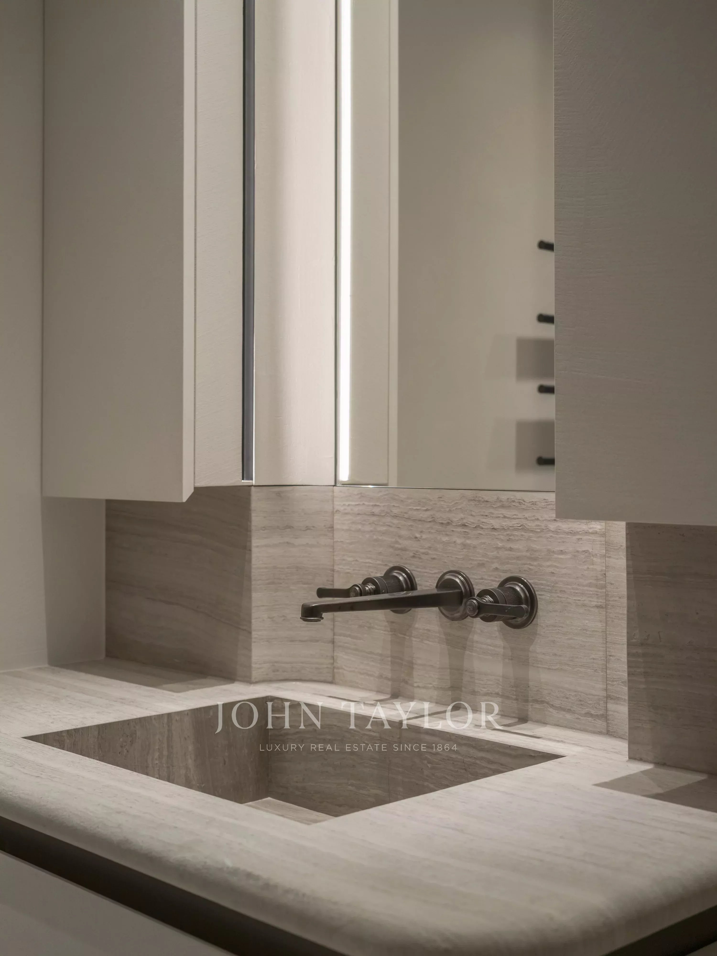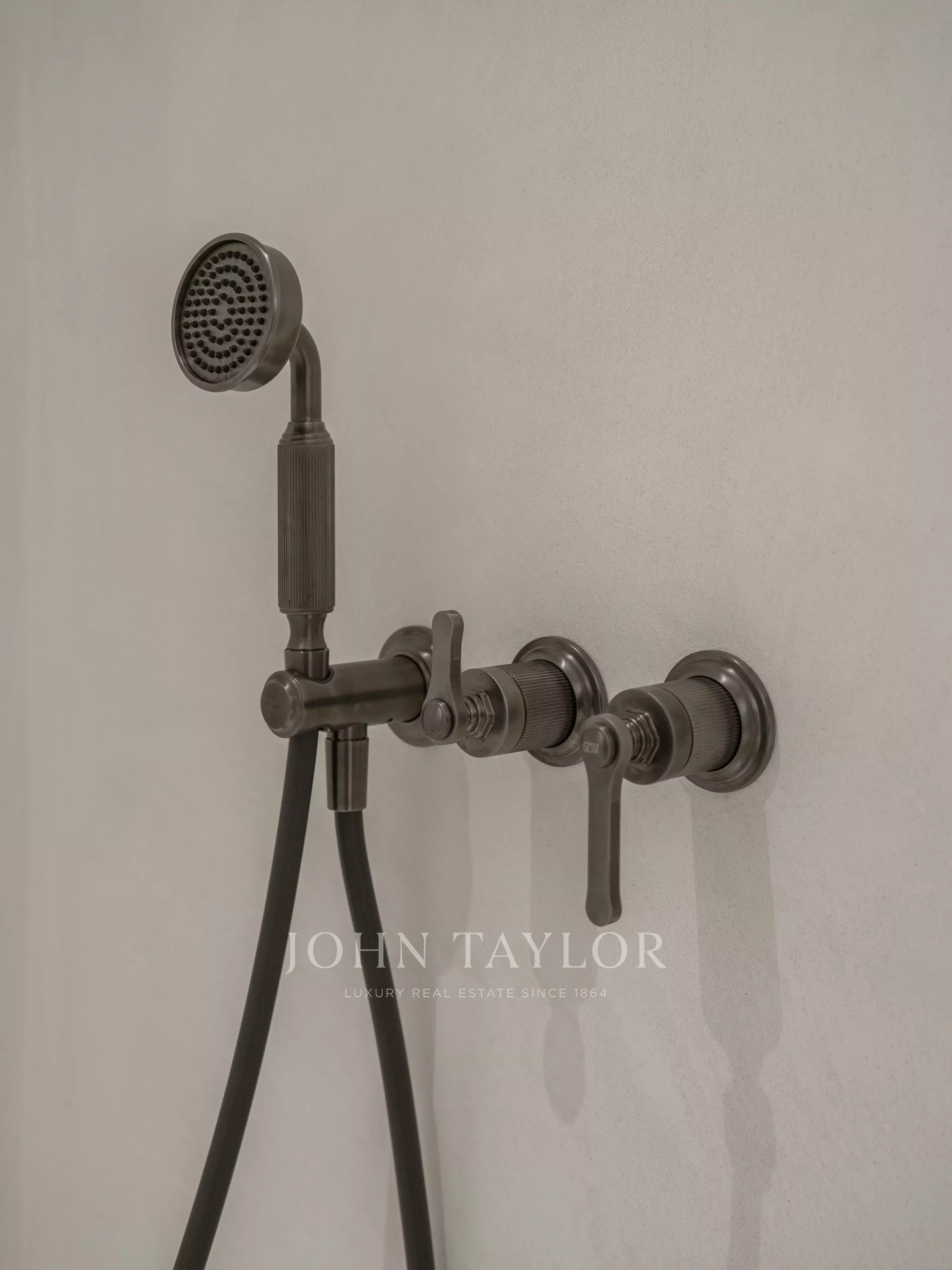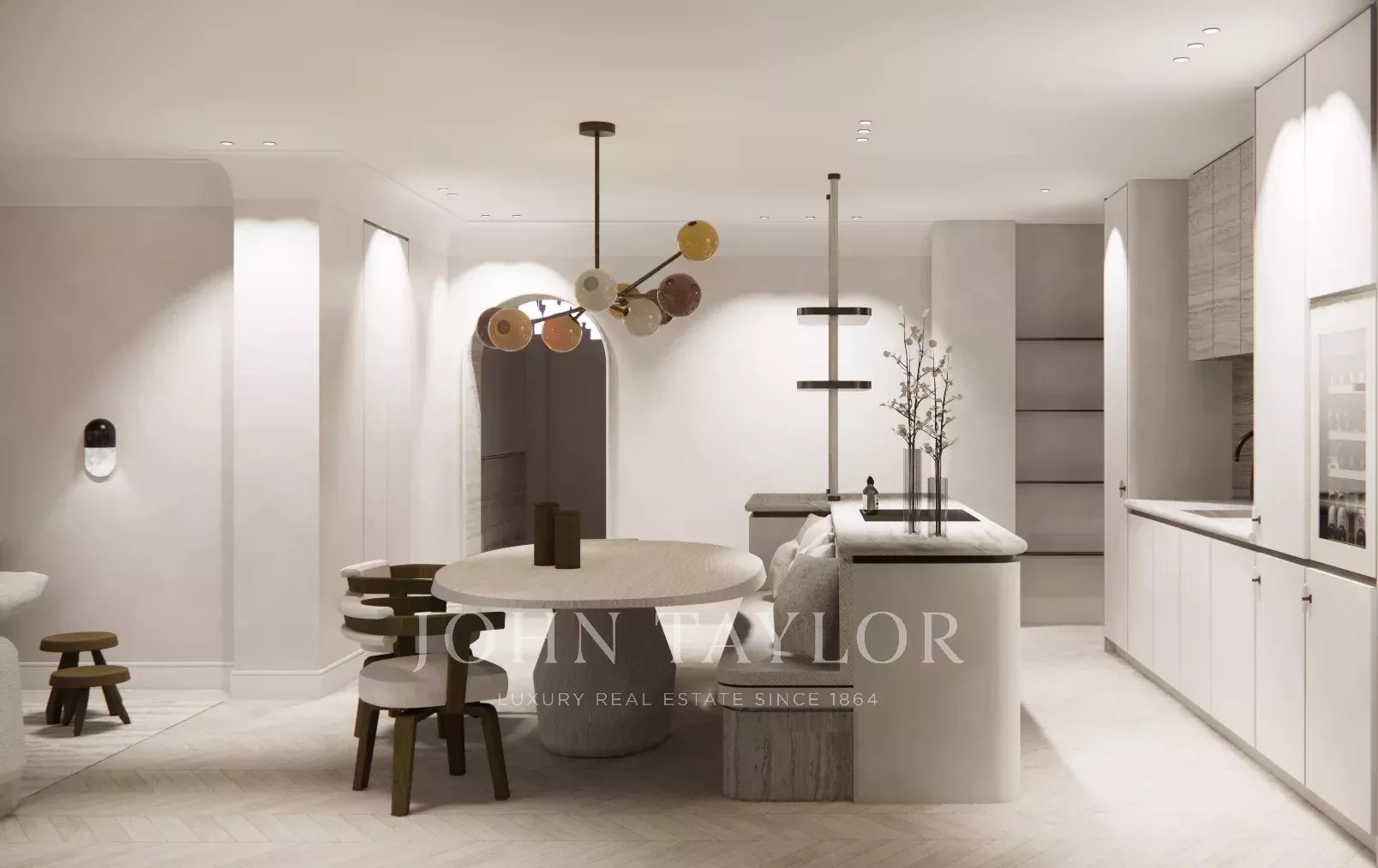 Cet appartement incarne une élégance subtile, portée par des finitions de grande qualité et le choix de matériaux nobles : bois sur mesure, pierre naturelle et métal travaillé avec finesse. Les boiseries apportent une chaleur intemporelle, tandis que la pierre et le métal dialoguent avec équilibre pour créer une atmosphère à la fois authentique et résolument contemporaine. Chaque espace a été pensé dans le détail, offrant une parfaite harmonie entre tradition et modernité.