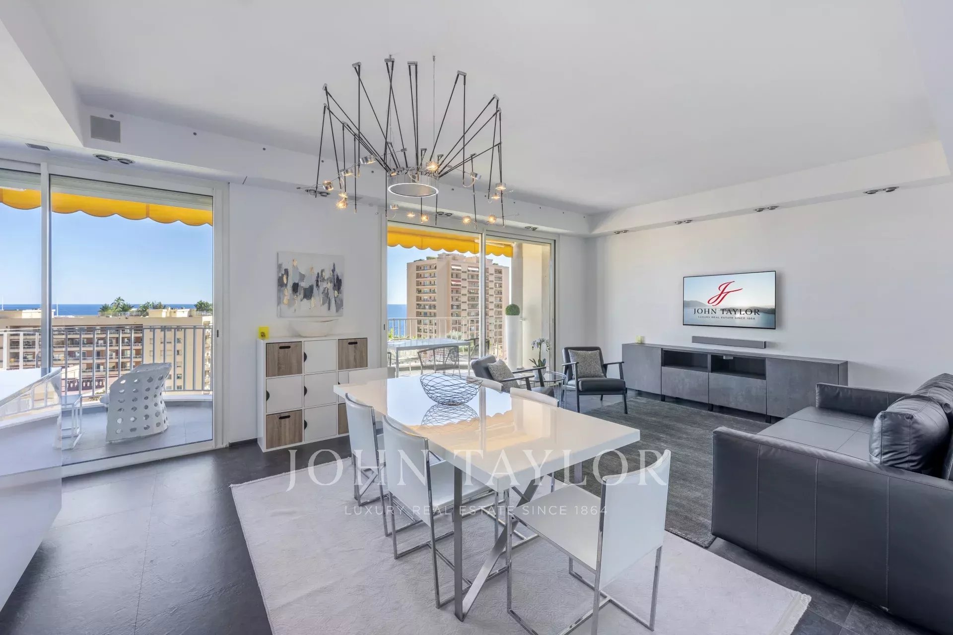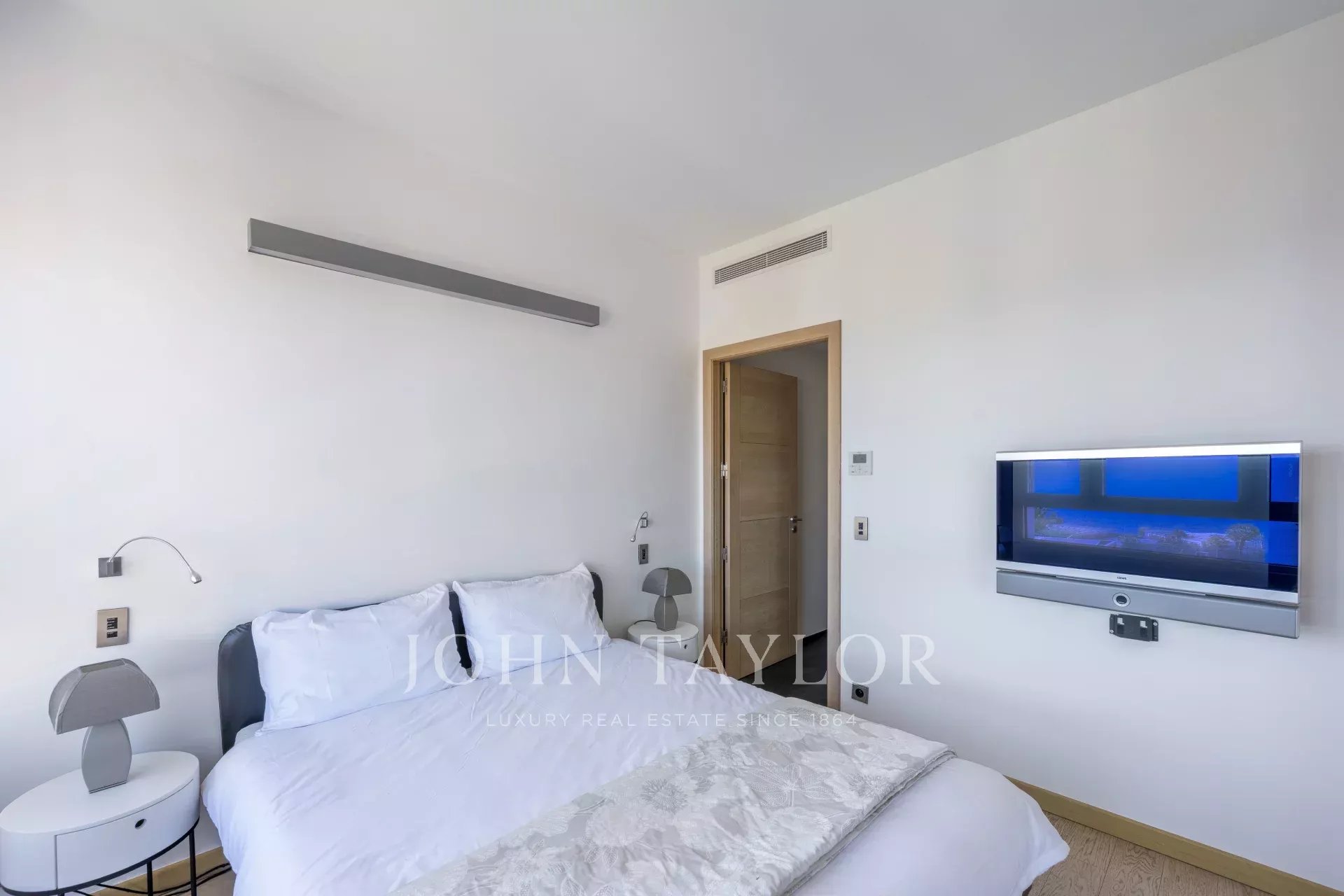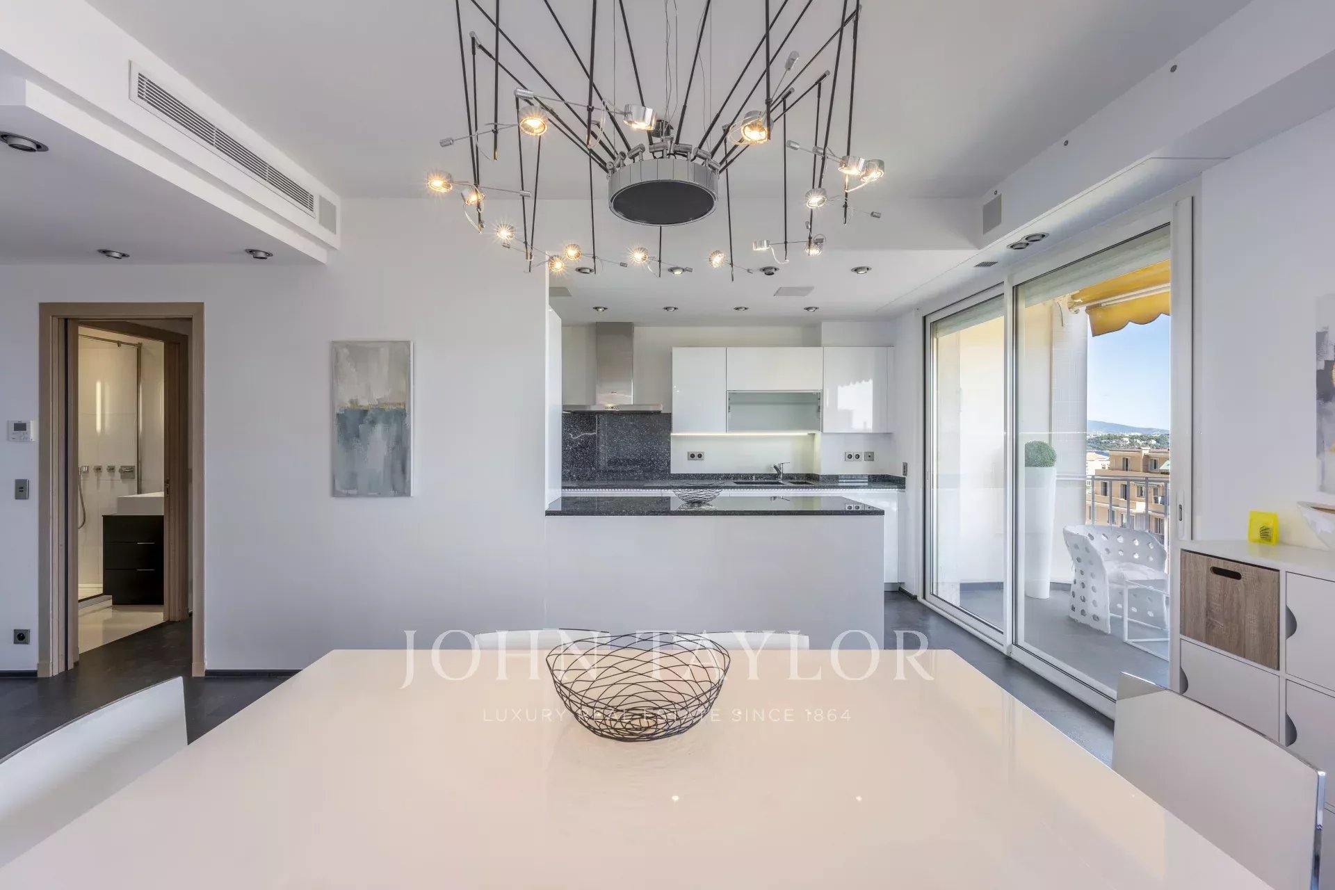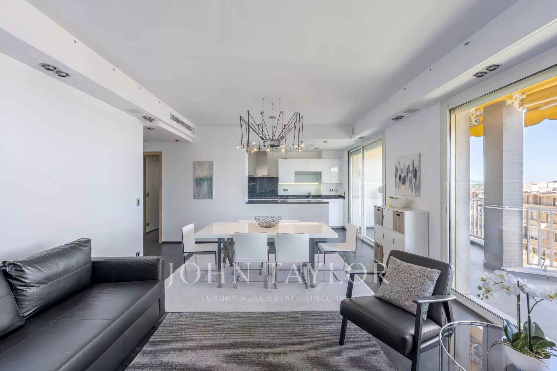 Ce superbe appartement de 3 pièces comprend une entrée, un vaste séjour avec salle à manger et cuisine américaine entièrement équipée, ouvrant sur une grande terrasse avec une vue mer panoramique. La suite parentale bénéficie d’une salle de bains attenante et d’un balcon privé. Une seconde chambre avec salle de douche, ainsi qu’un WC invités avec buanderie complètent l’ensemble.
