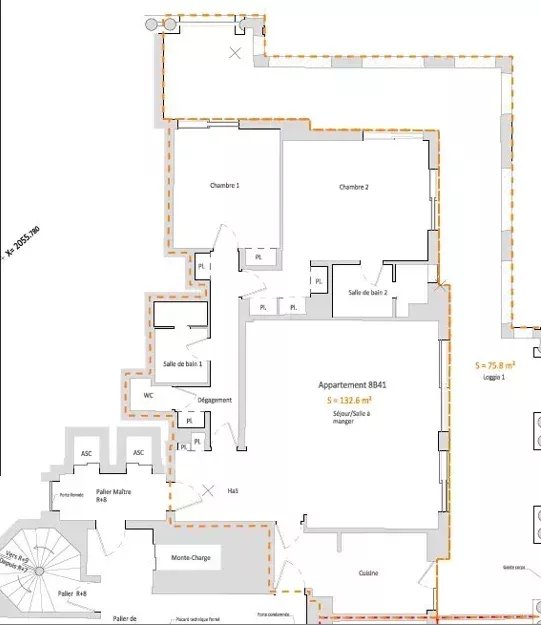 Cet appartement dispose de deux chambres de 132 m² avec deux salles de bains, un grand salon, une cuisine et une loggia de 75 m².