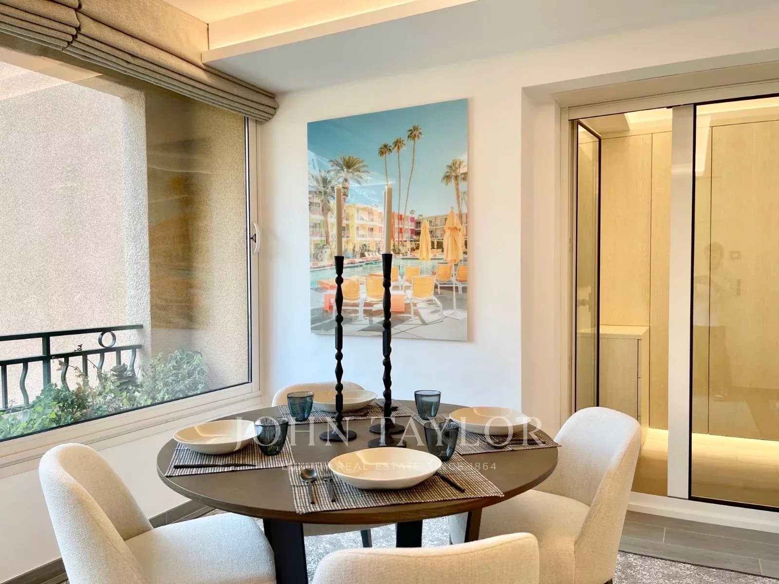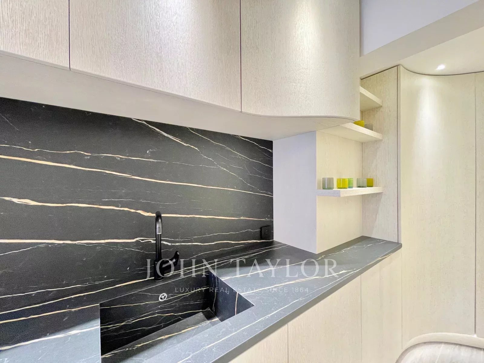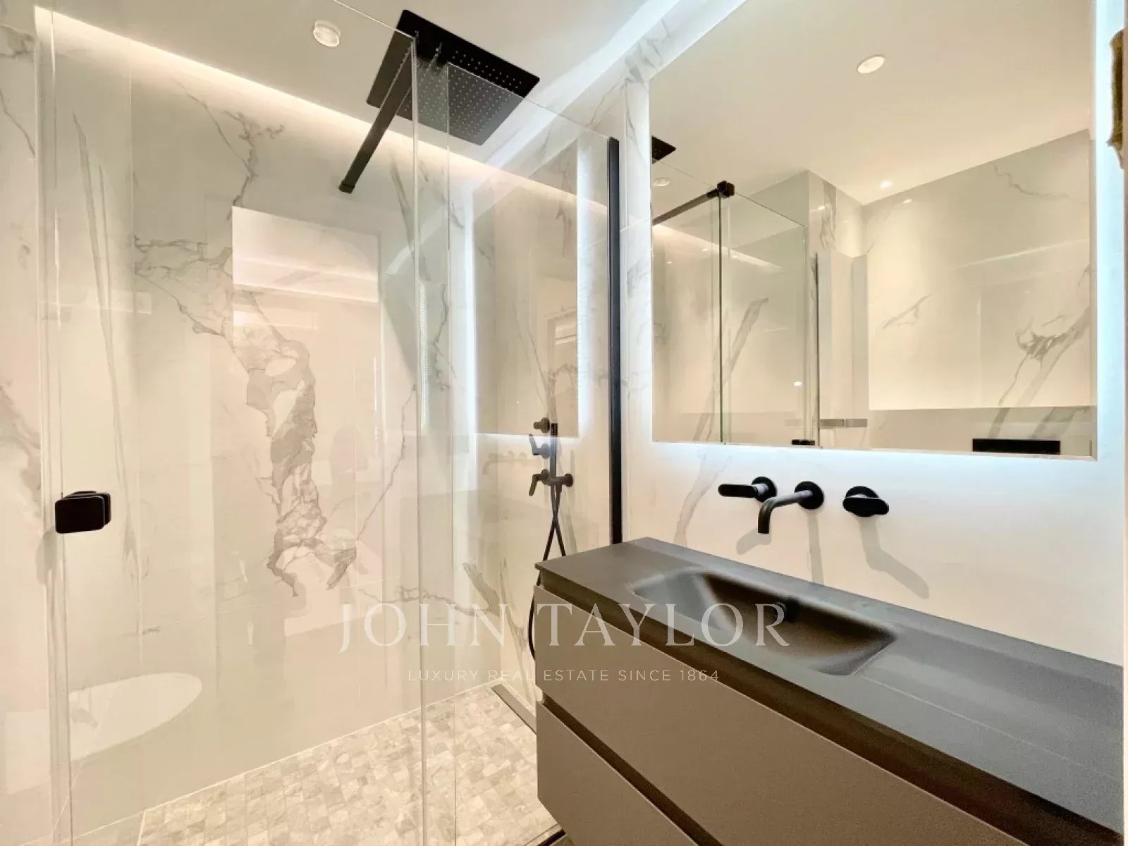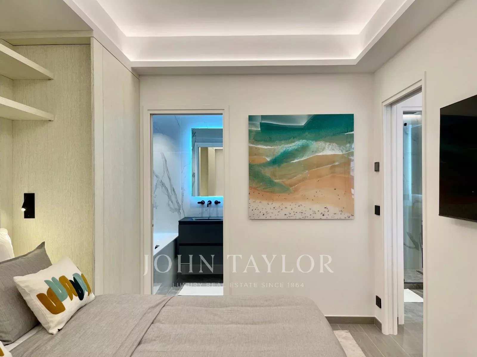 L’appartement bénéficie de la climatisation réversible et de nombreux rangements sur mesure intégrés.