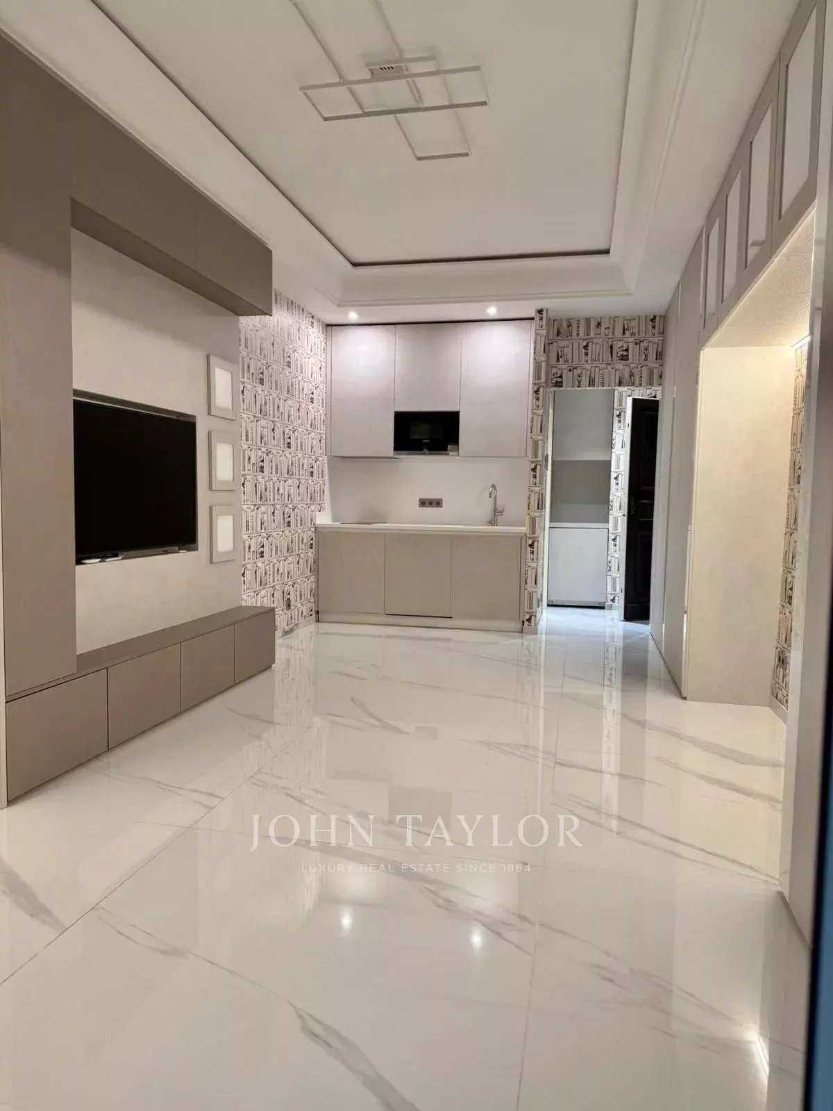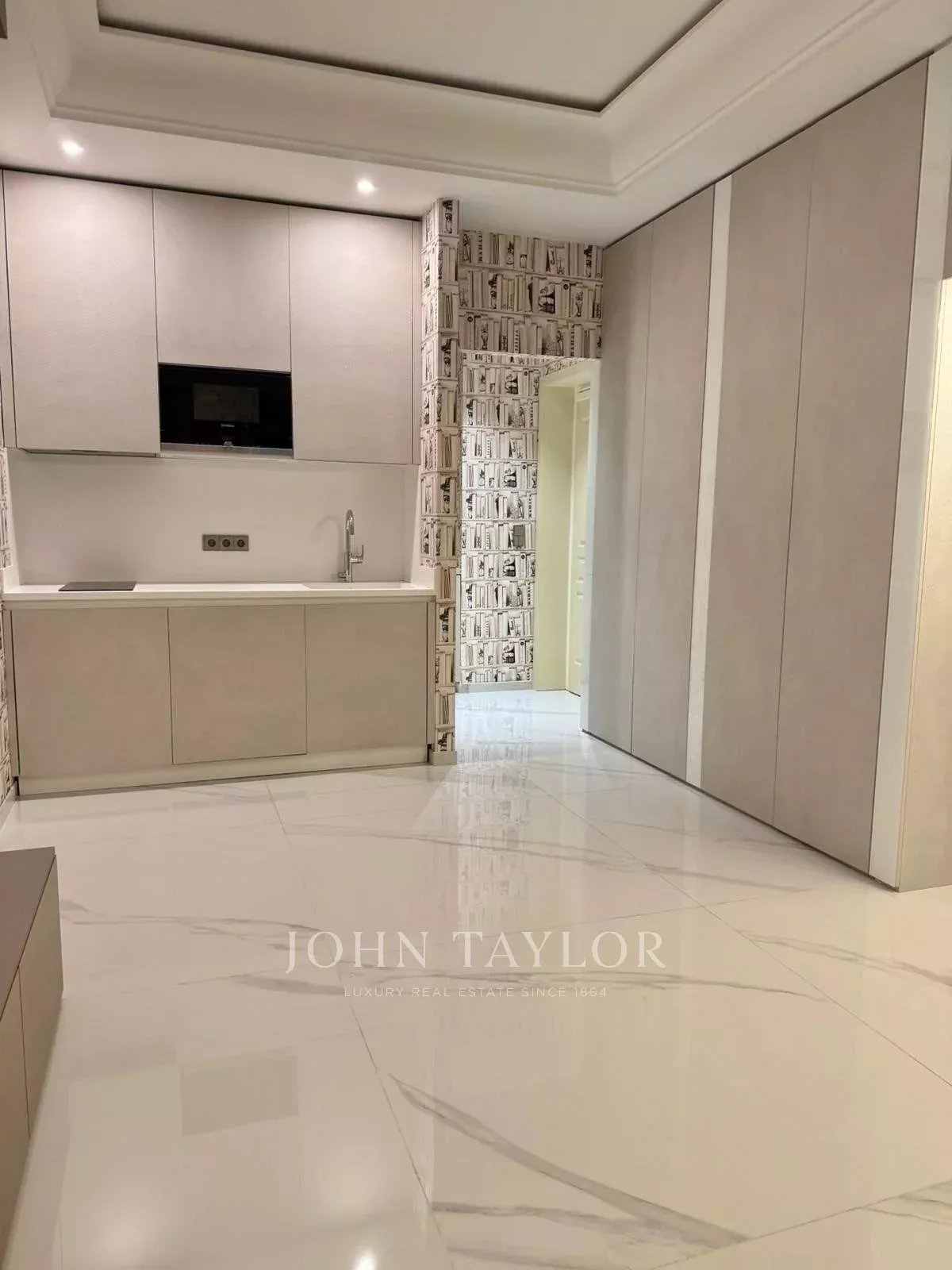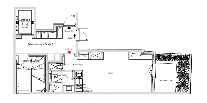 Ce studio aux dimensions généreuses est doté de hauts plafonds, d'un carrelage de haute qualité, d'une douche à l'italienne et d'appareils de cuisine intégrés. Il comprend une charmante terrasse, un coin salon, une salle de bains bien équipée et une cuisine ouverte moderne. Grâce à son agencement flexible, l'espace est également idéal pour une utilisation en tant que bureau professionnel ou espace de travail.