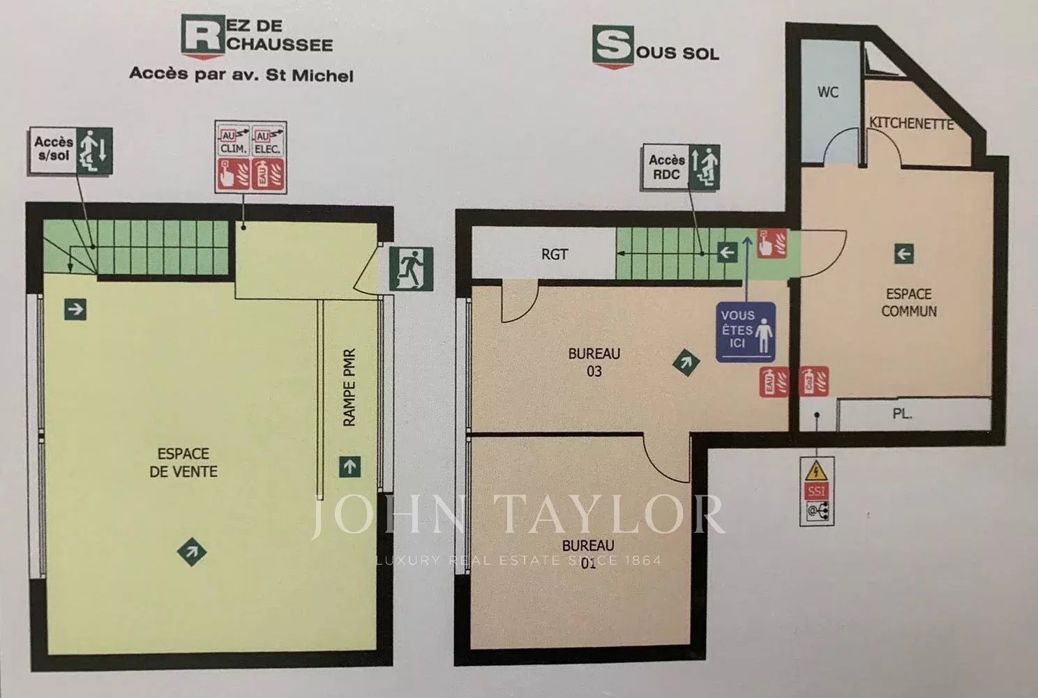 Carré d’Or, moderne et luxueux local commercial avec grande vitrine, disposé sur deux niveaux.