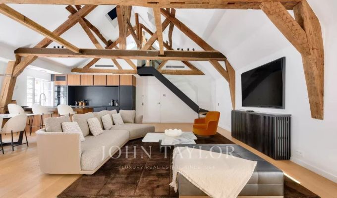 Au dernier étage d'un immeuble classique, ce spectaculaire appartement de 137 m², ...