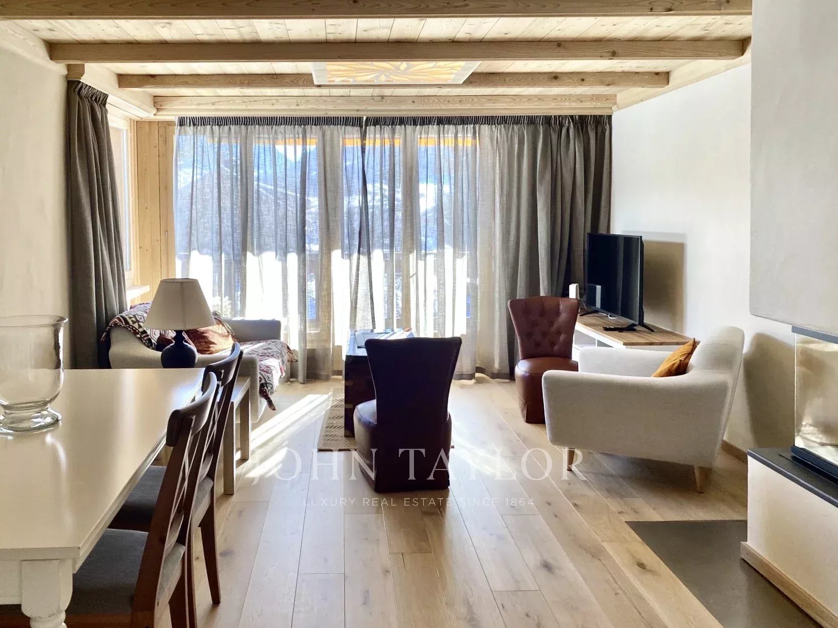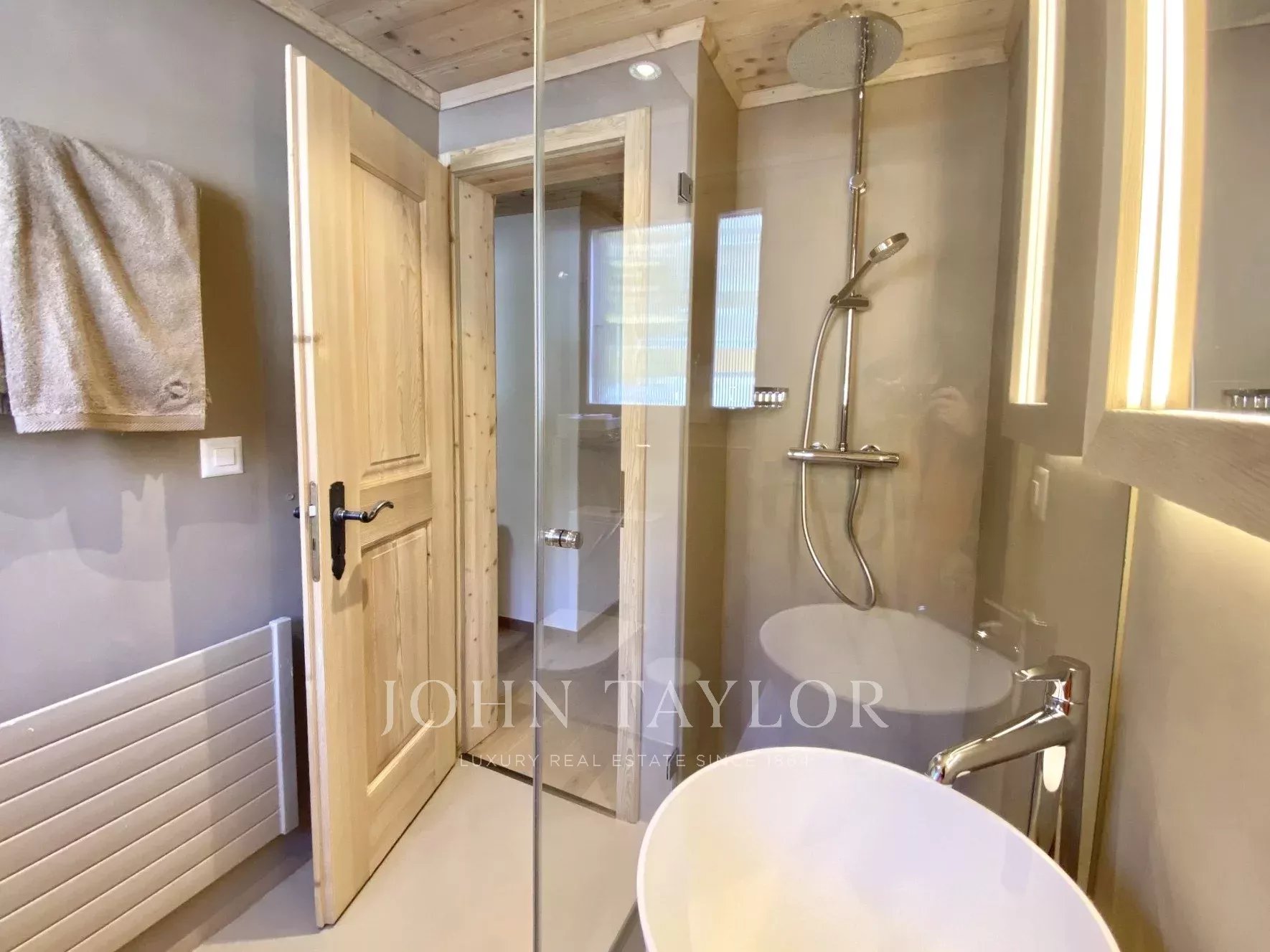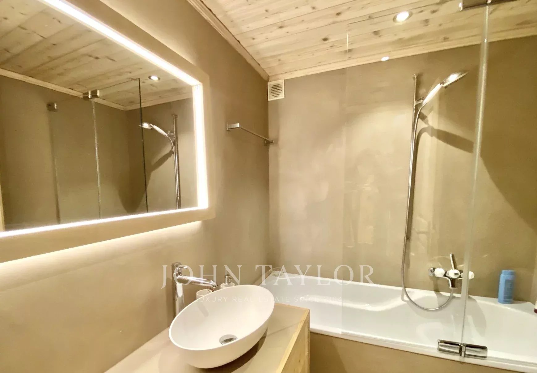 Ce charmant appartement de 91 m² comprend une chambre principale avec une salle de bains en-suite et un accès au balcon, ainsi que deux autres chambres avec une salle de douche en-suite pour les deux. Chaque chambre dispose de nombreux placards intégrés. La cuisine est ouverte sur un salon de taille confortable qui bénéficie de la lumière du jour grâce à ses nombreuses fenêtres et ses portes-fenêtres donnant accès à un balcon de 8m² orienté au sud. Une cheminée en pierre donne à cet espace son charme et sa chaleureuse ambiance.