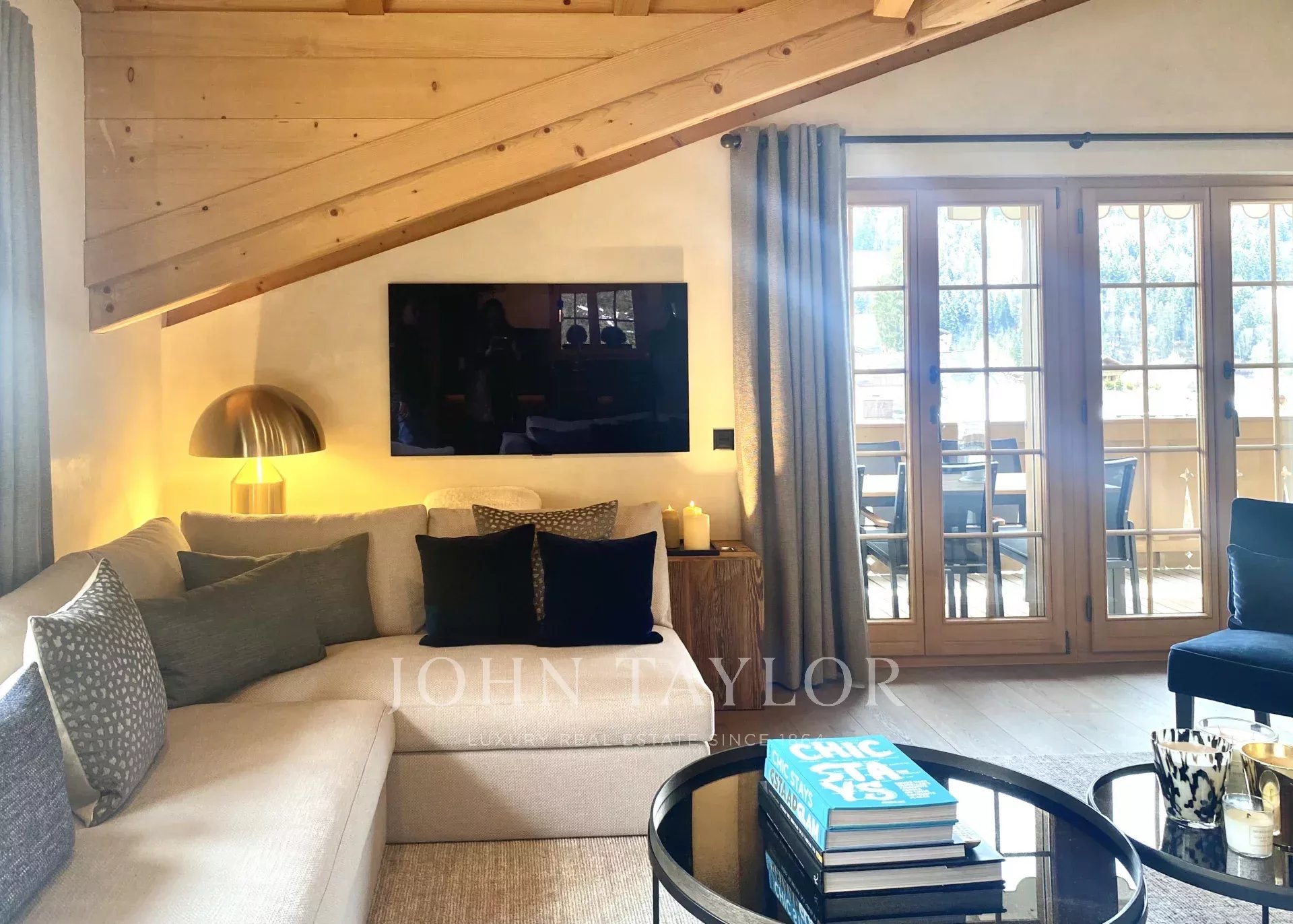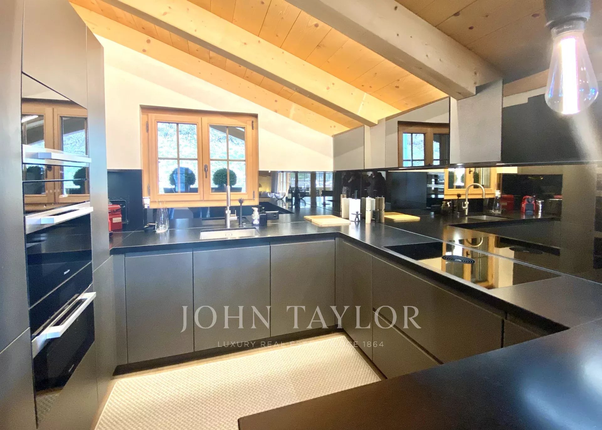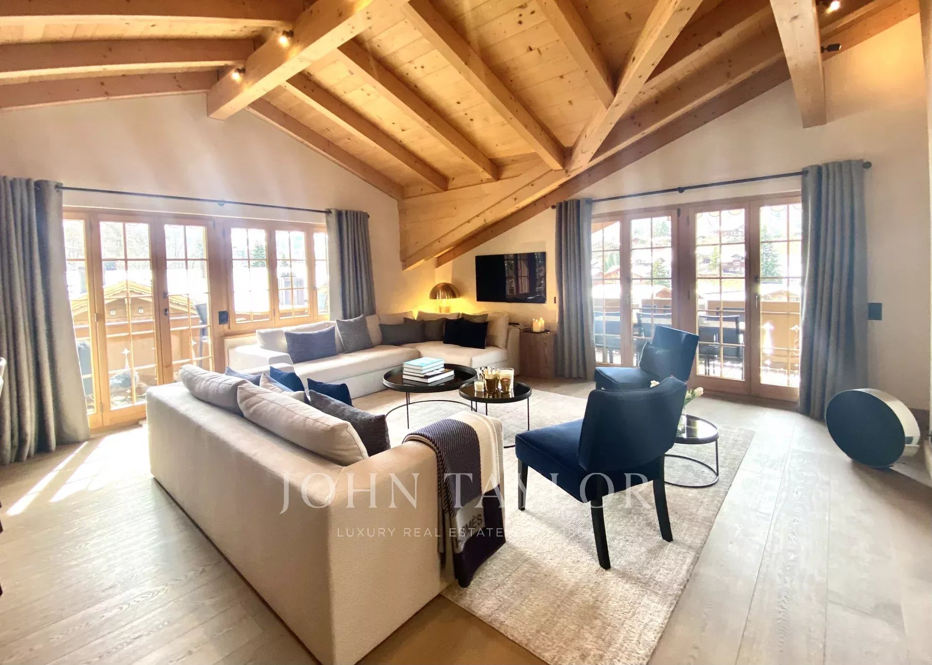 Situé à 20 mètres de la Promenade de Gstaad, ce Penthouse séduit par ses hauts plafonds et son large espace de vie ainsi que par ses vues grandioses sur Gstaad et les montagnes environnantes.