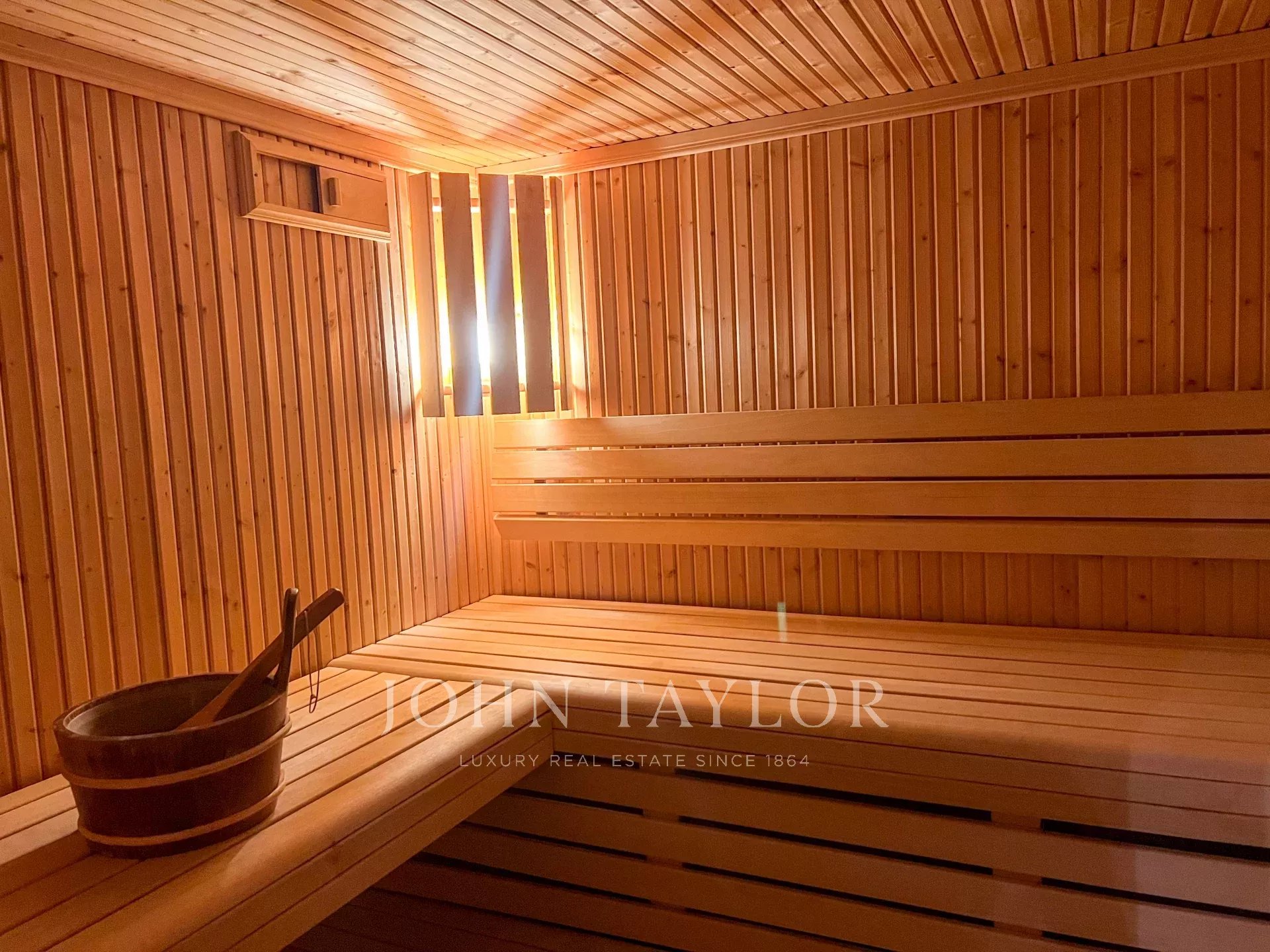 L'appartement dispose également d'une variété d'équipements haut de gamme destinés à la détente et à la commodité. Vous pourrez profiter d'une buanderie commune et d'un ascenseur qui permet d'accéder facilement à tous les étages. Pour les amateurs d'activités de loisirs, la propriété est idéalement située à proximité d'un terrain de golf, ce qui en fait un endroit parfait pour les passionnés. De plus, un sauna est disponible pour vous aider à vous détendre après une journée active.