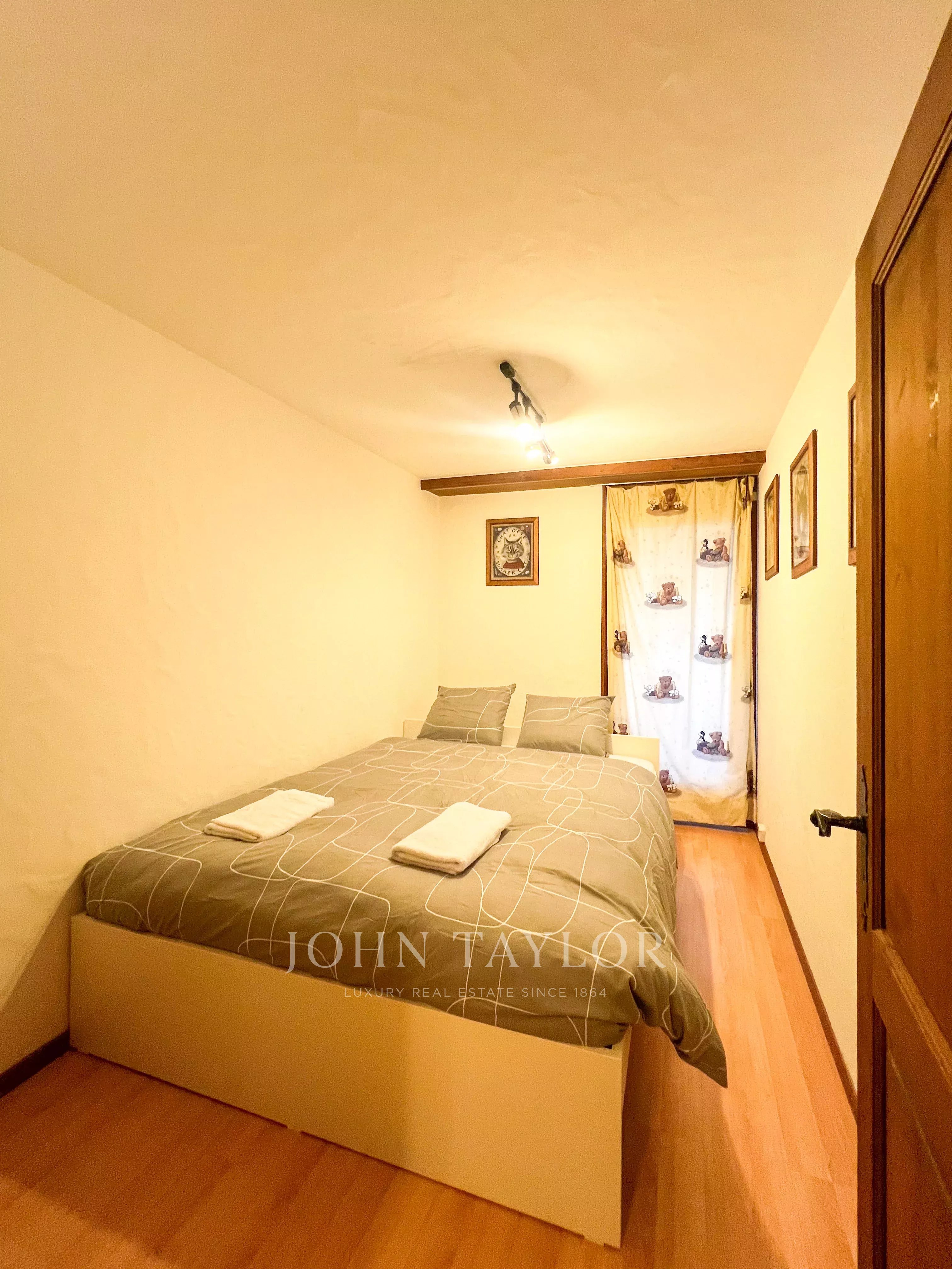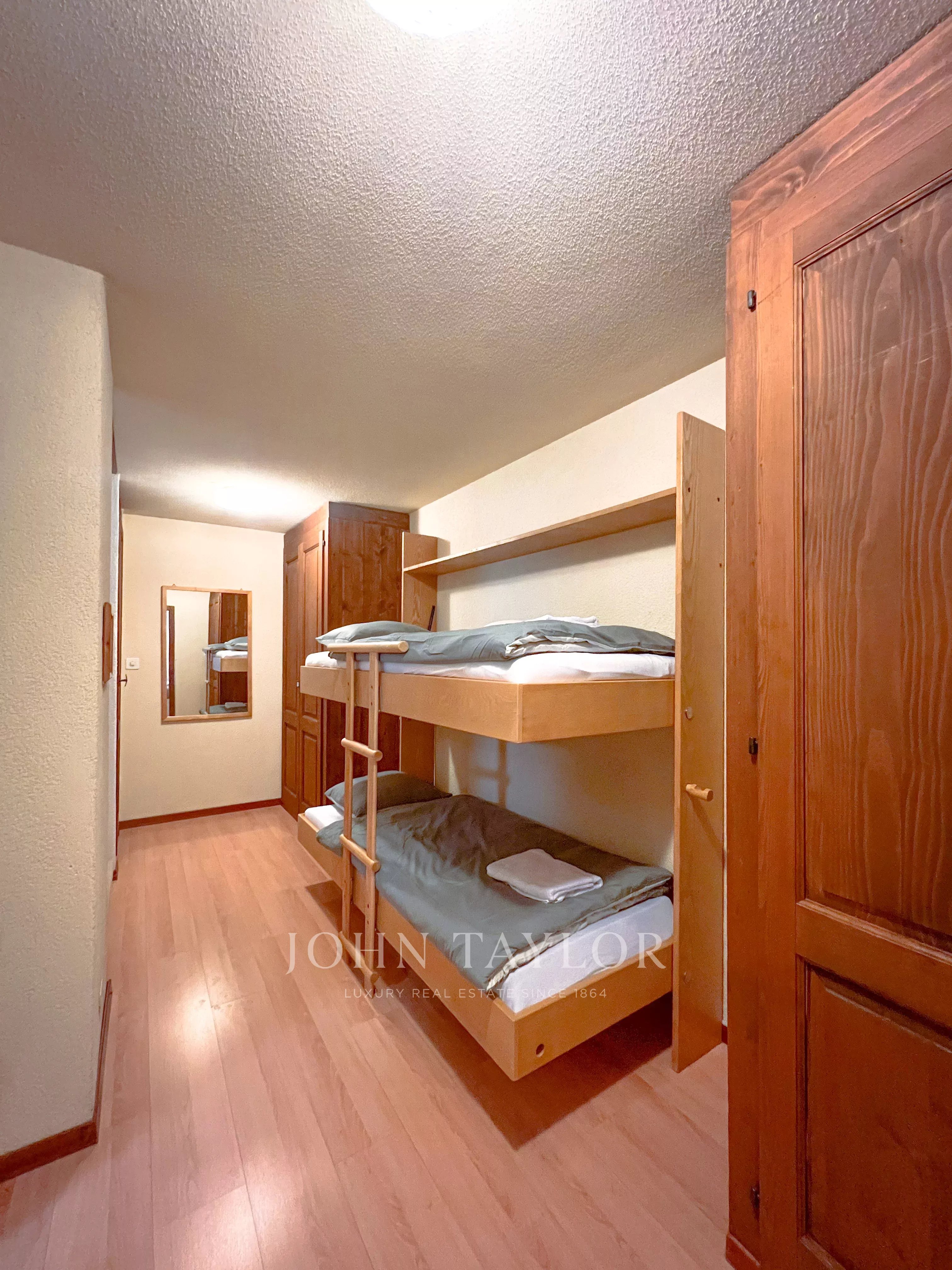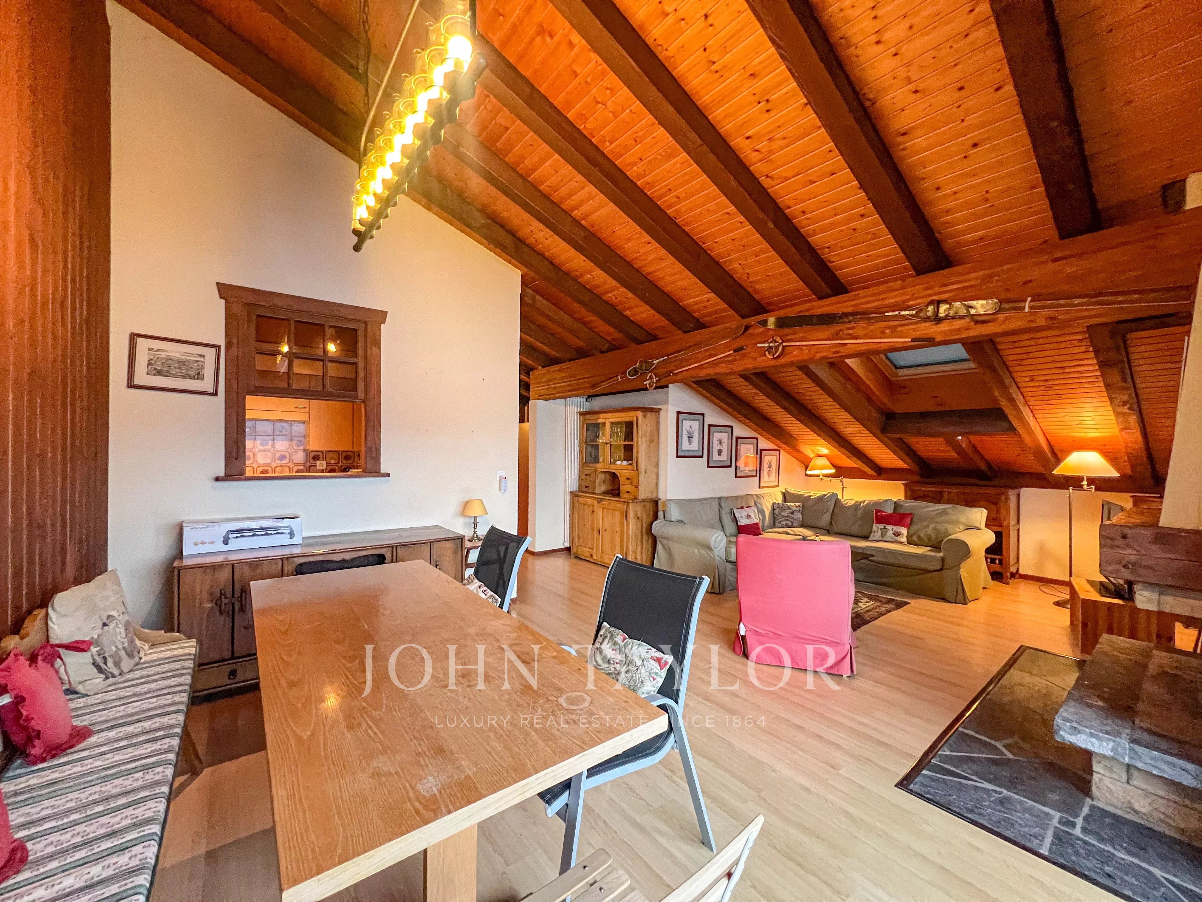 Conçu pour accueillir jusqu’à six personnes, l’appartement est parfaitement adapté aux familles. Il comprend trois chambres, dont deux chambres doubles pour quatre adultes et une chambre dédiée aux enfants pouvant accueillir deux enfants. Avec ses poutres apparentes, ses intérieurs cosy et son atmosphère chaleureuse, ce bien offre une véritable expérience alpine.