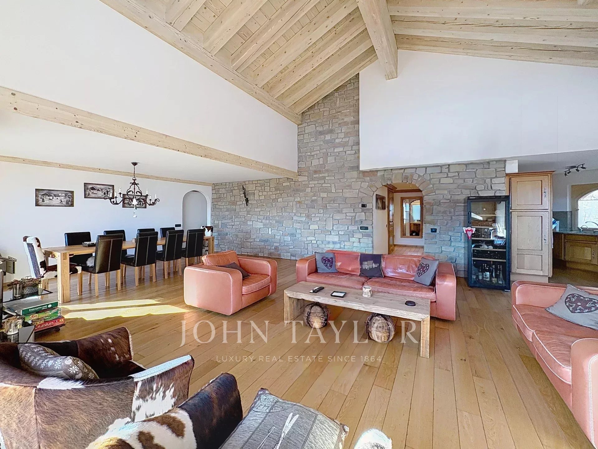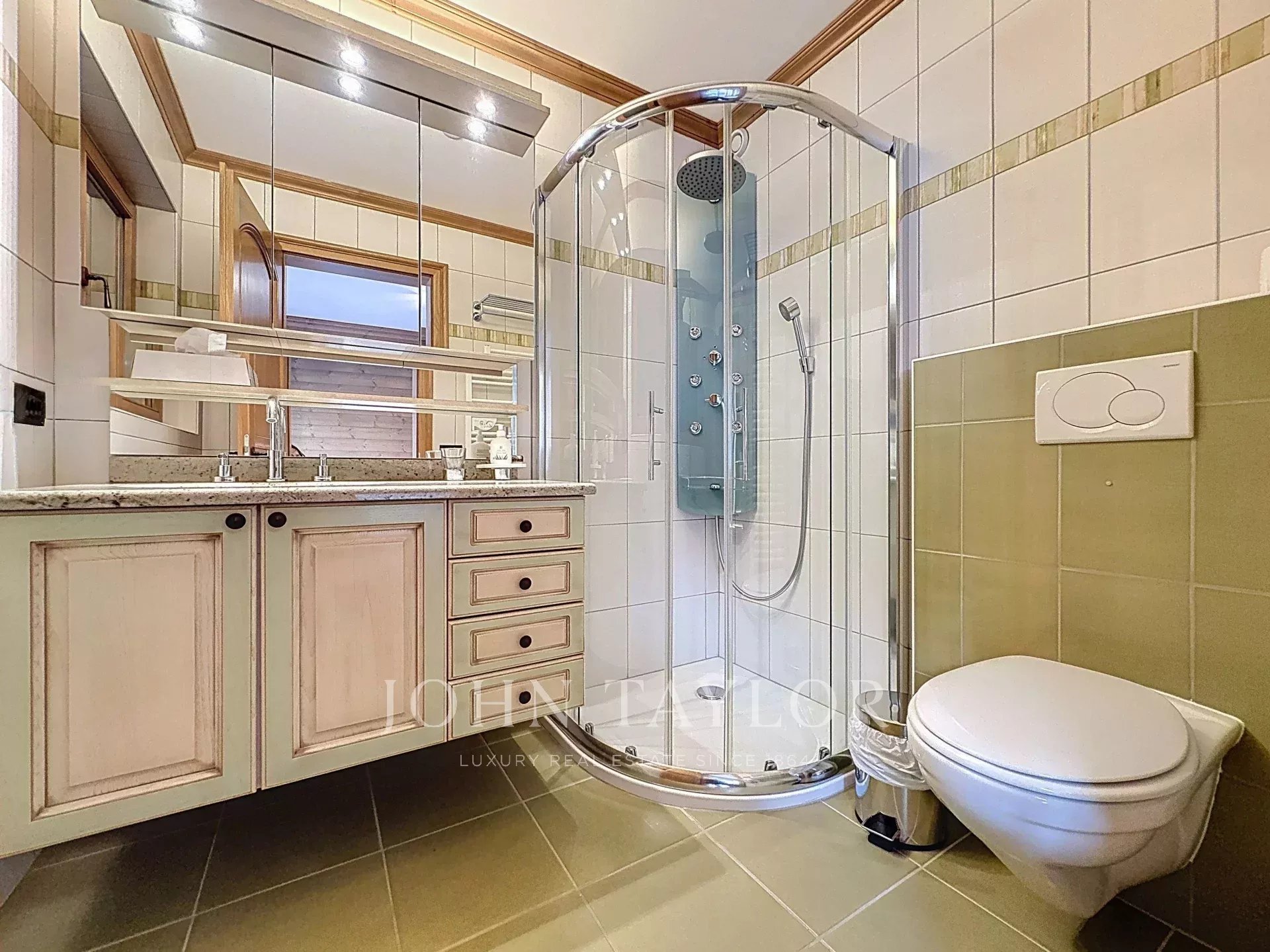 Stores électriques, chauffage au sol par géothermie, cheminée, nombreuses places de parc ainsi qu’un superbe espace wellness complètent les prestations et apportent tout le confort attendu pour un appartement de montagne de standing.