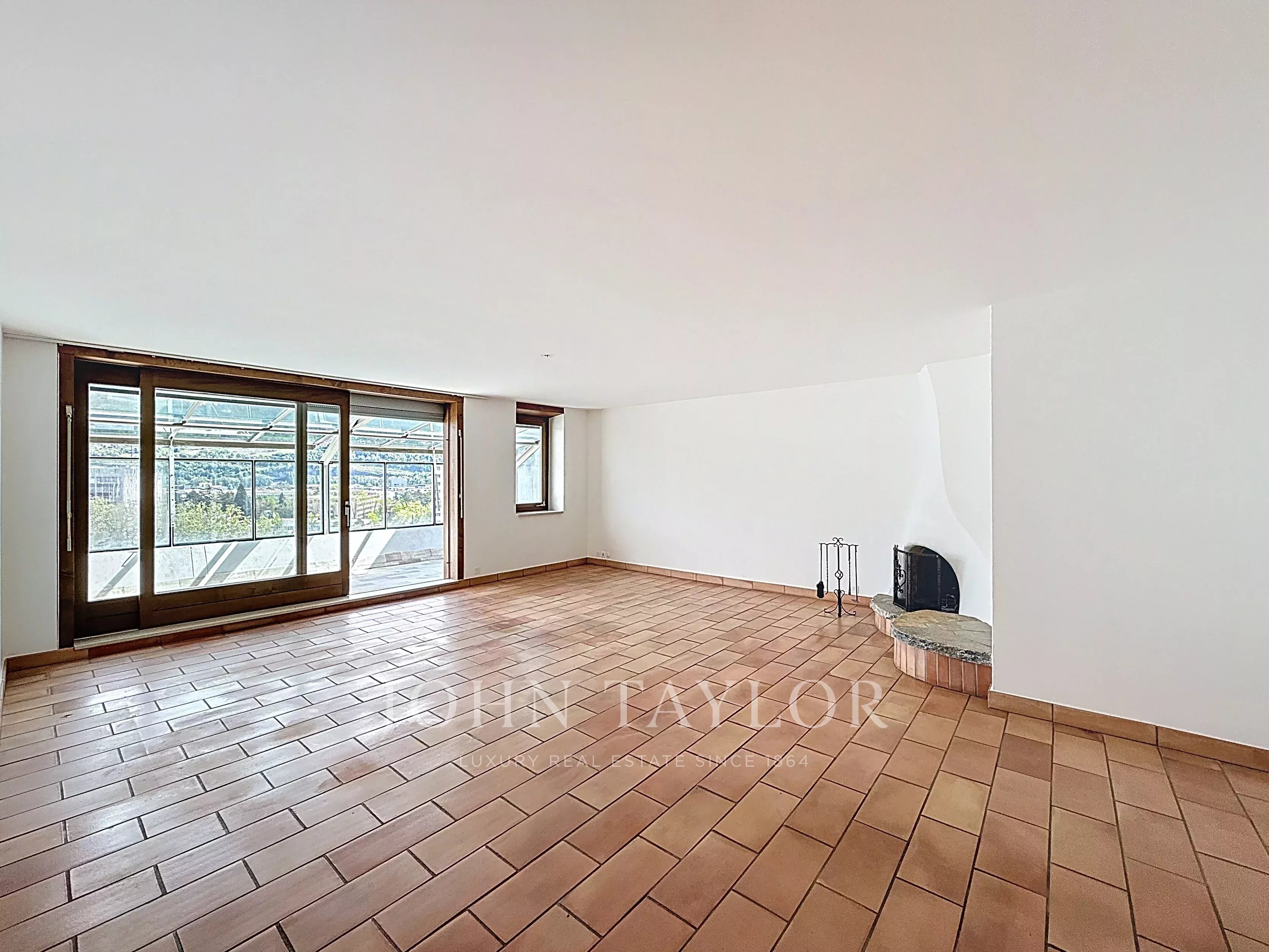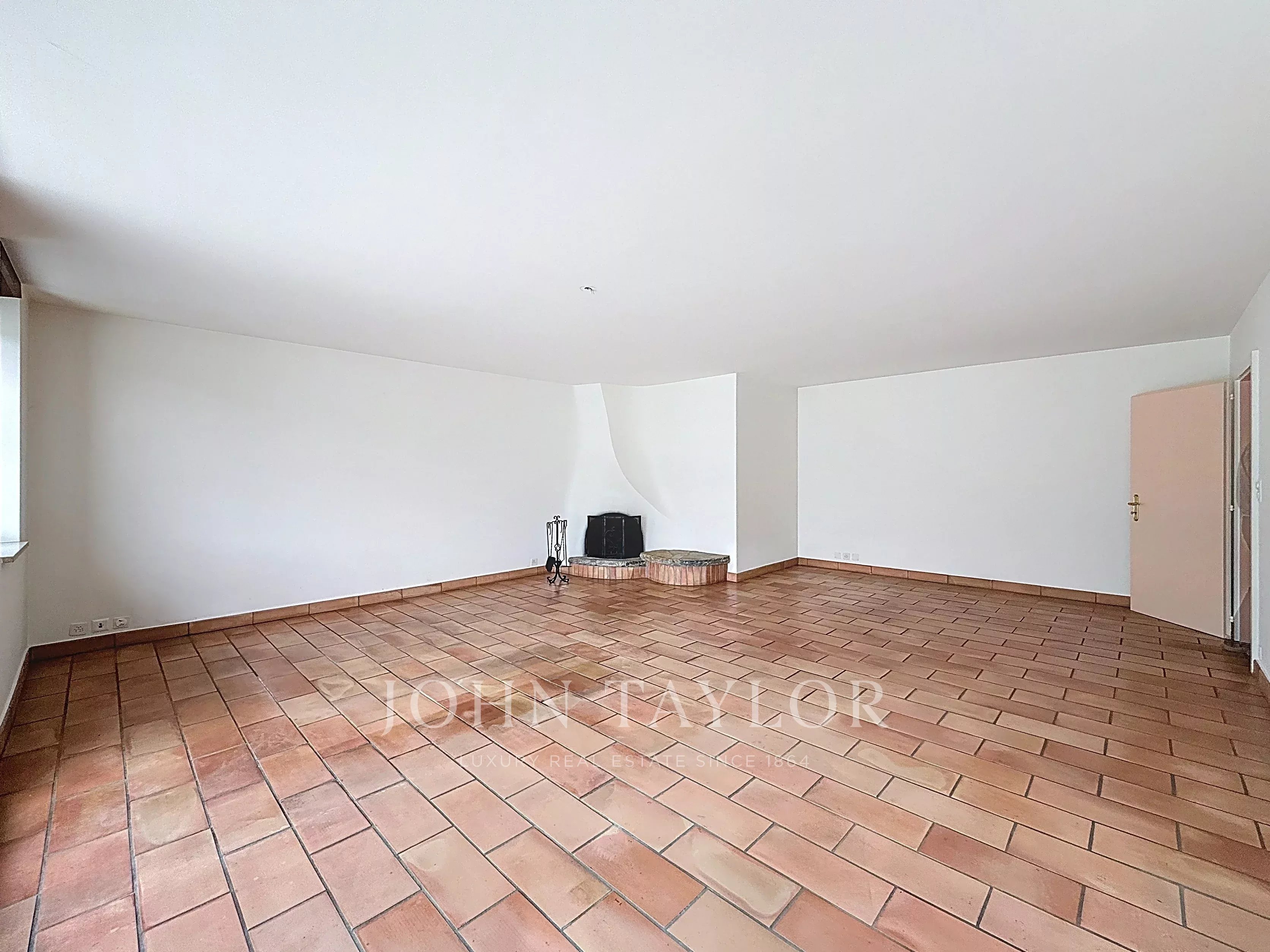 - Un vaste espace de séjour agrémenté d’une cheminée, ouvert sur un jardin d’hiver