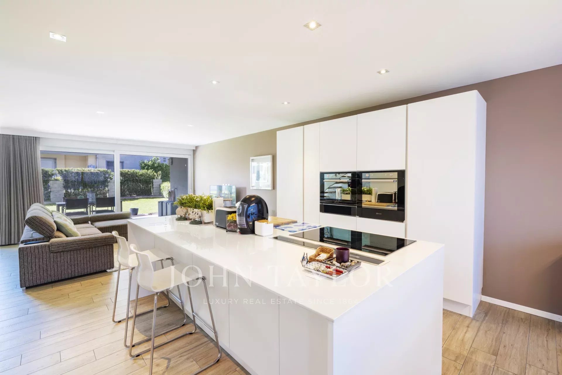 Entrée indépendante, salle à manger donnant accès à une première terrasse, cuisine très bien aménagée avec ilot central, réduit/économat, séjour très lumineux donnant accès à une deuxième terrasse et au merveilleux jardin délimité, WC visiteurs.