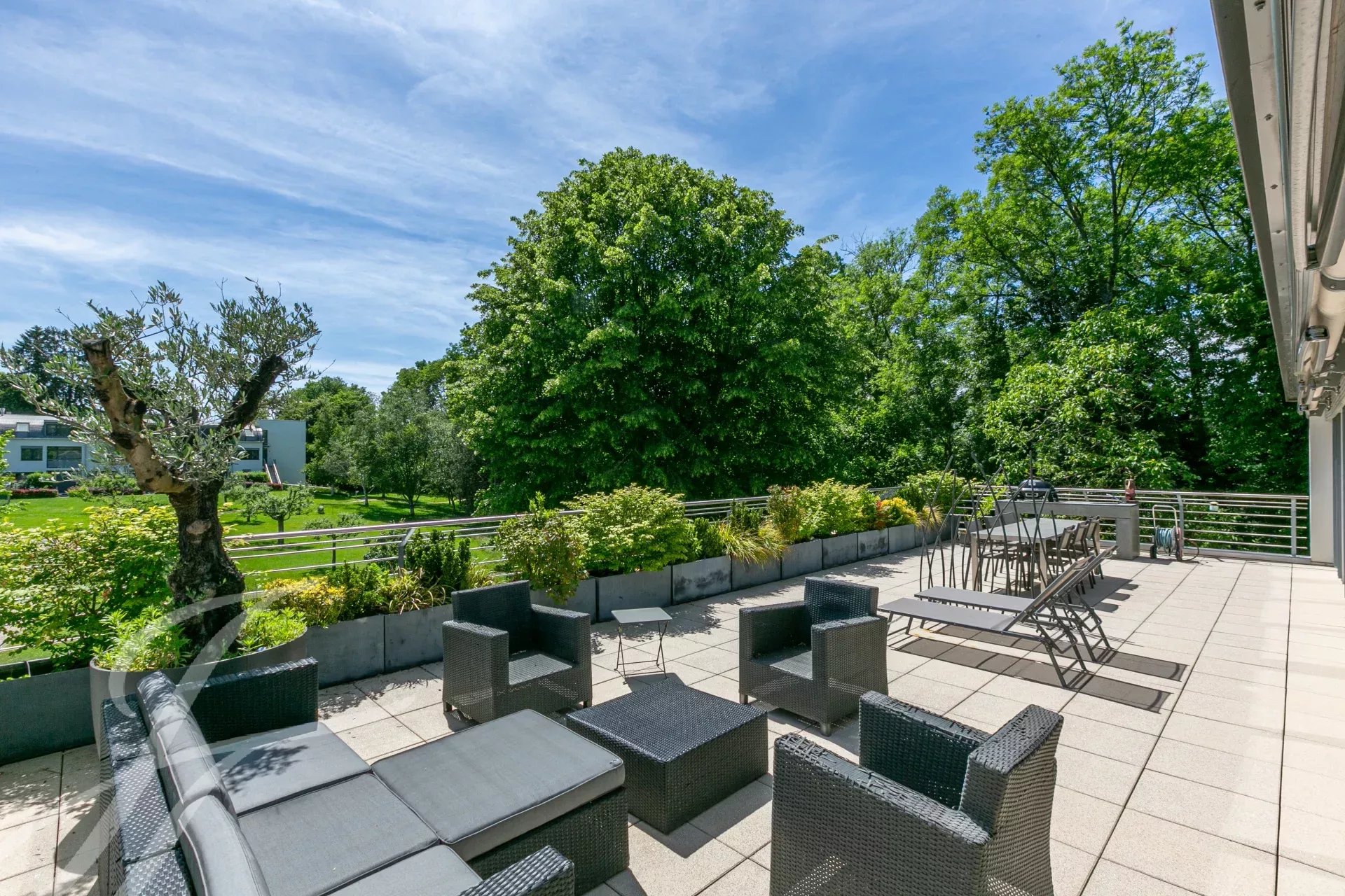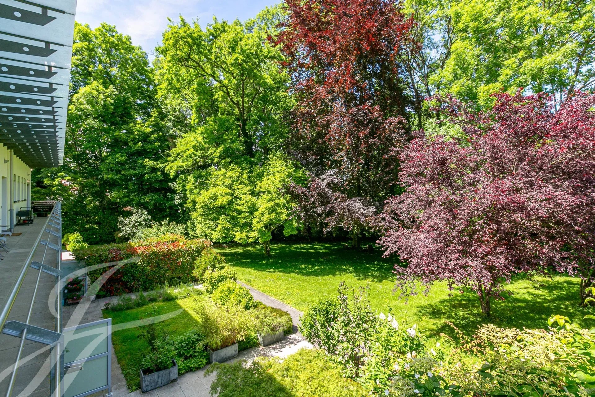 Il bénéficie également d’un magnifique parc arboré de 27'000 m² en copropriété, de finitions haut de gamme ainsi que de splendides hauteurs sous plafond.