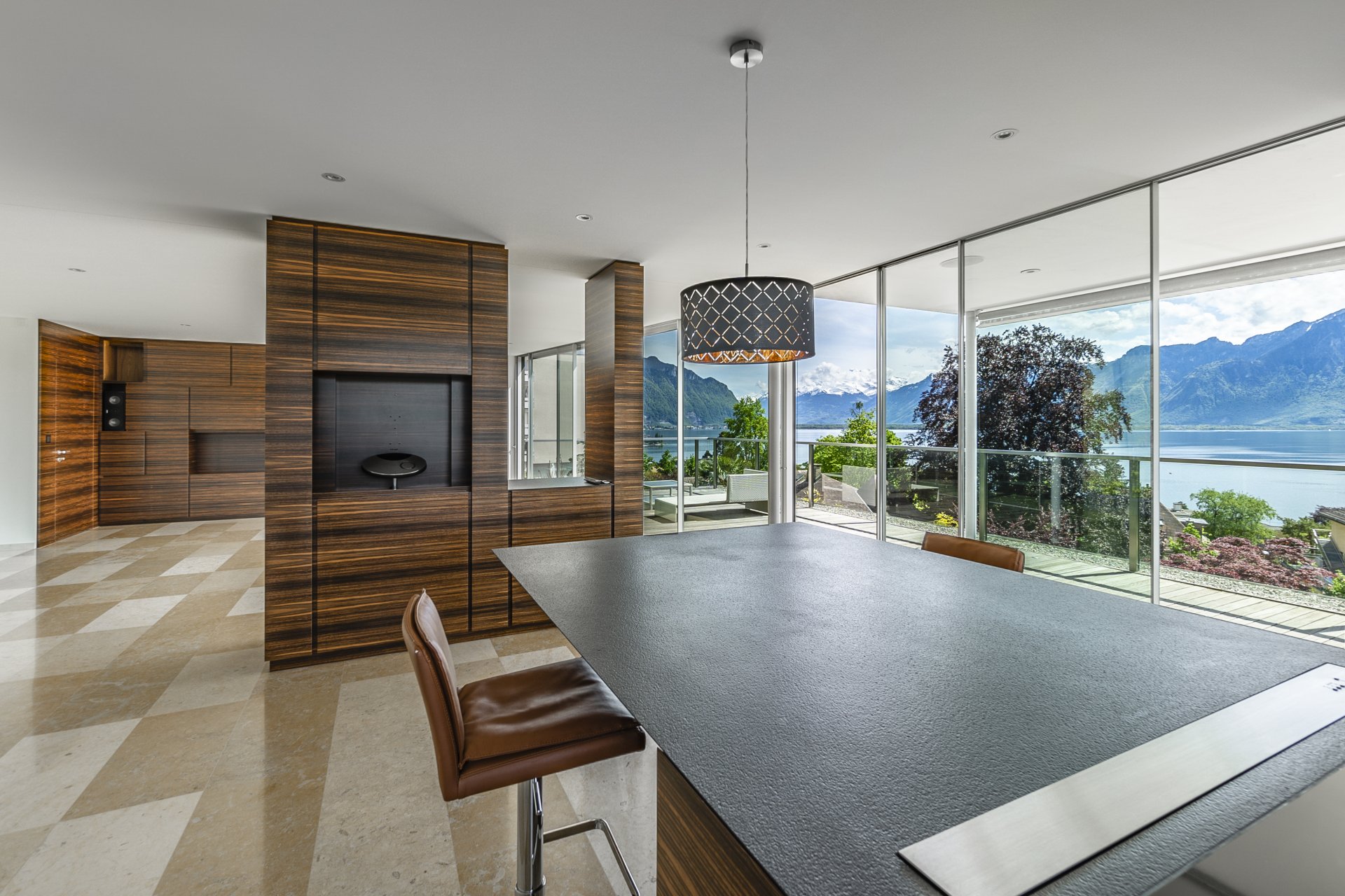 -PENTHOUSE au style contemporain avec une vue à 360° sur le lac, les montagnes, le Château du Chatelard et les vignes.