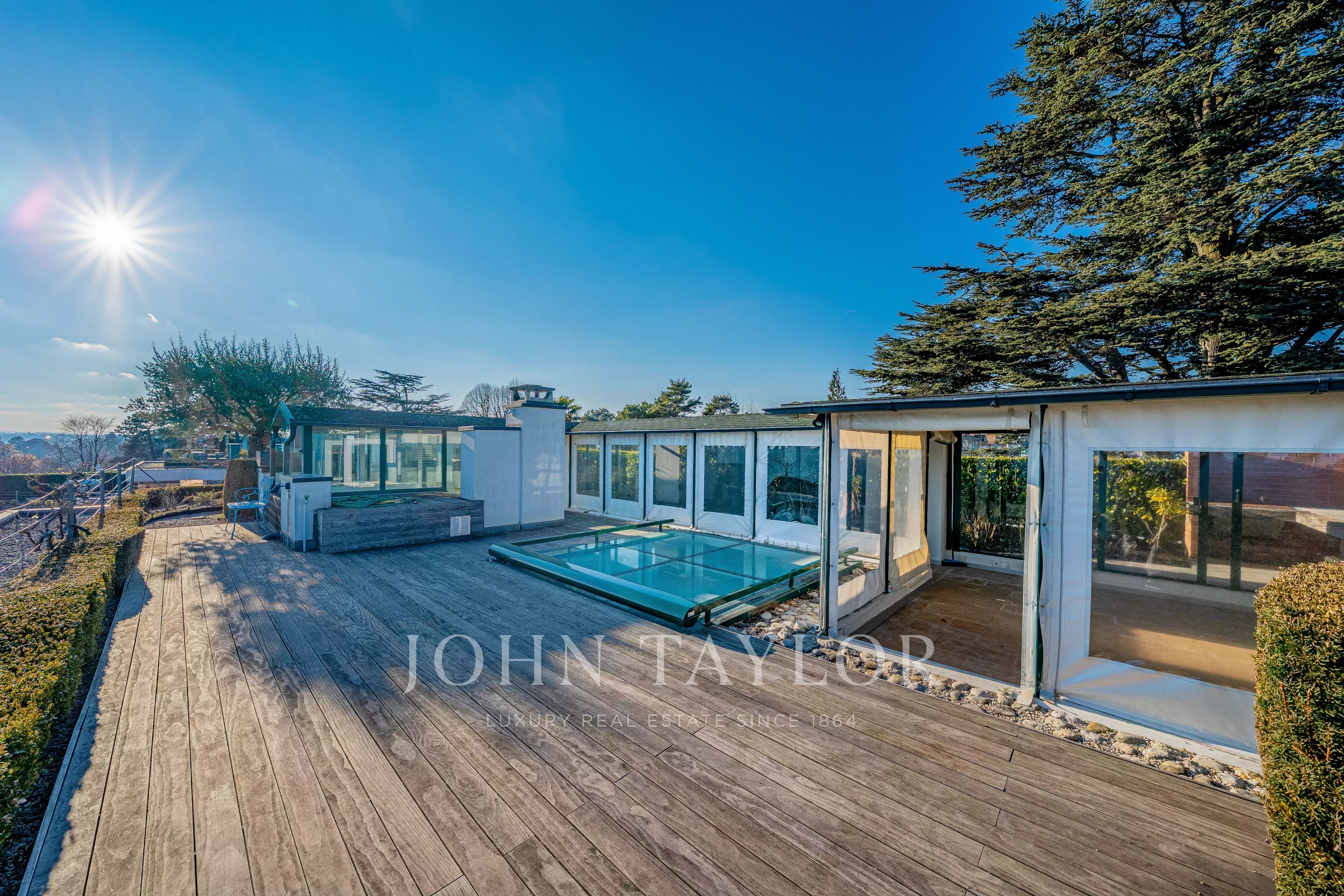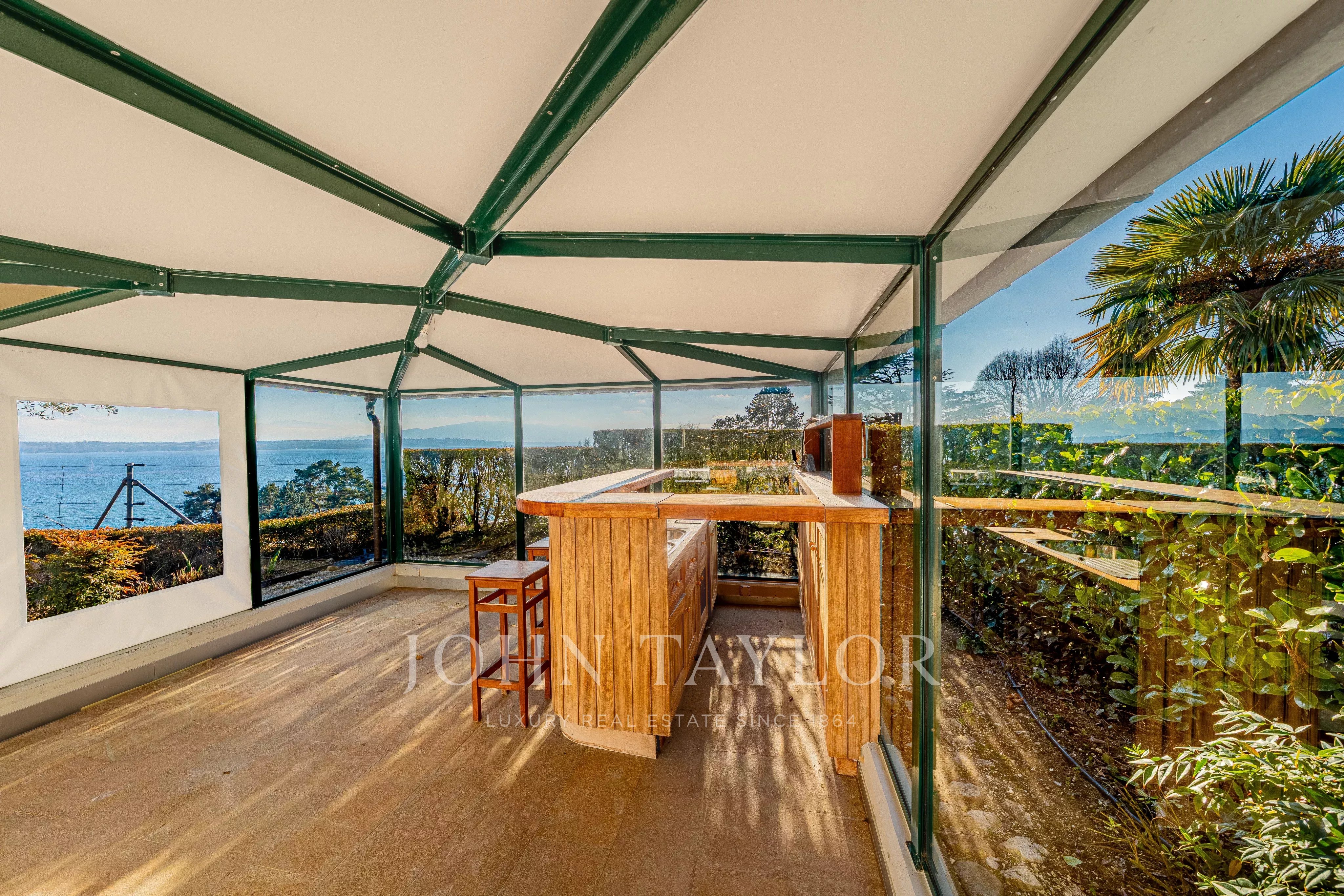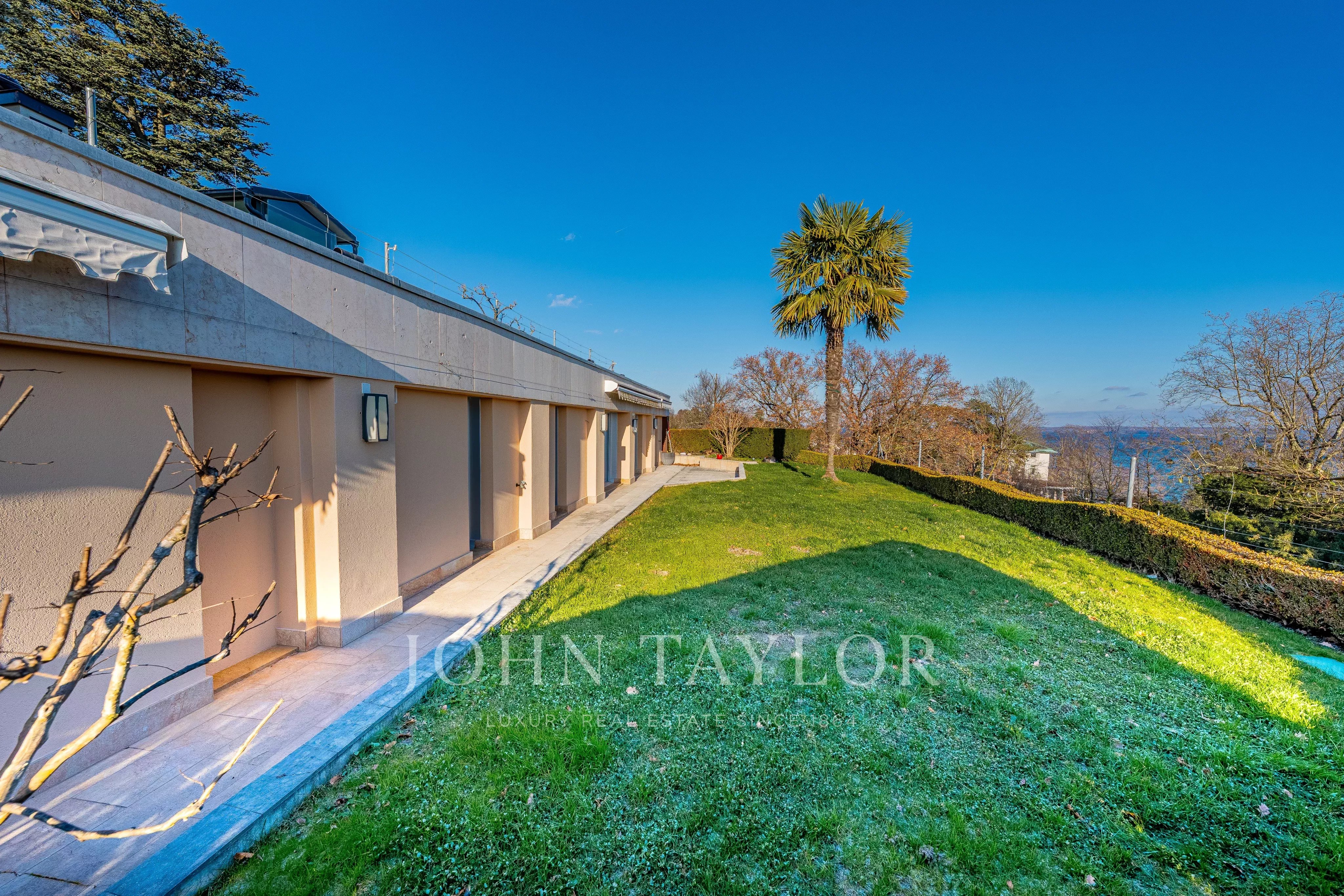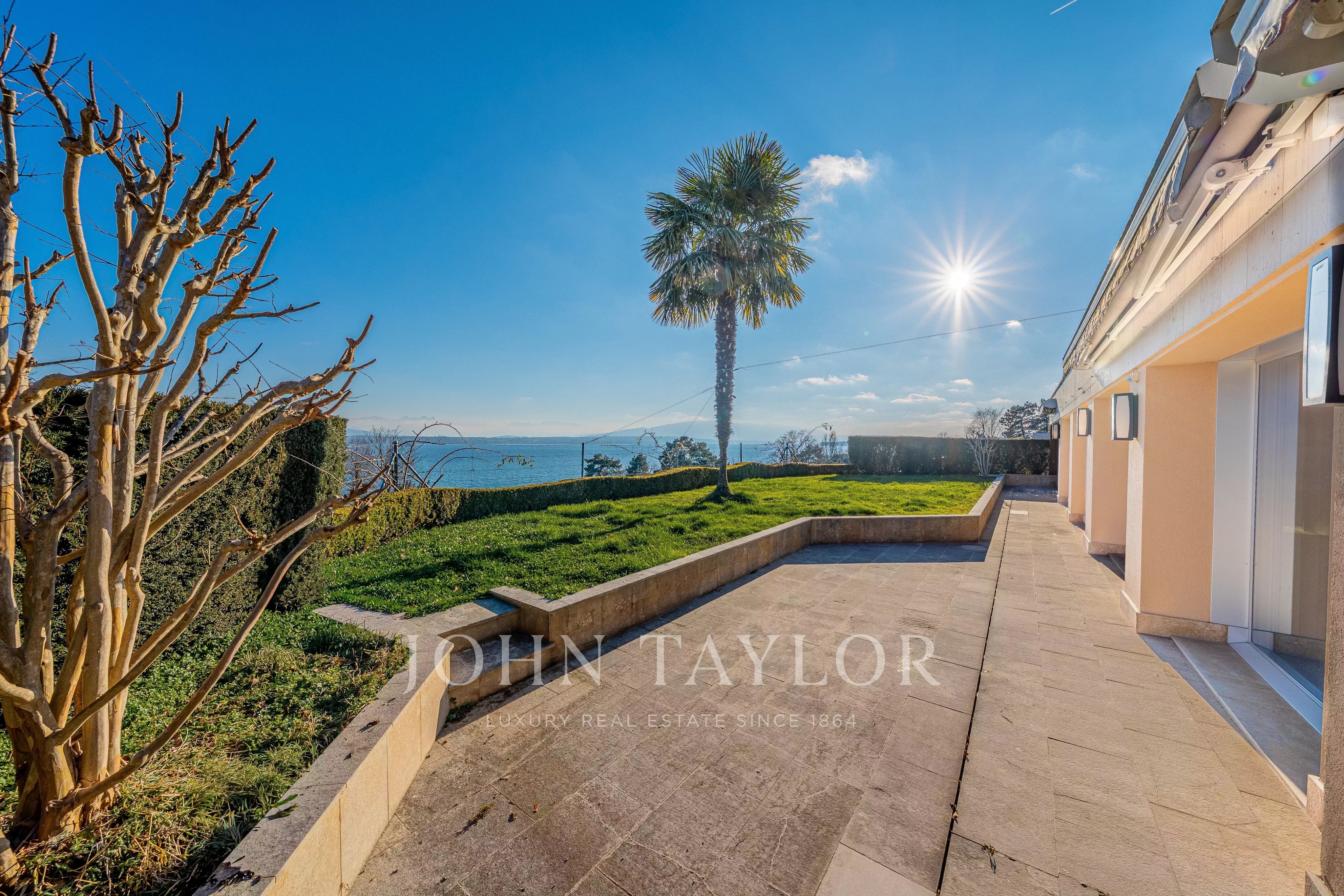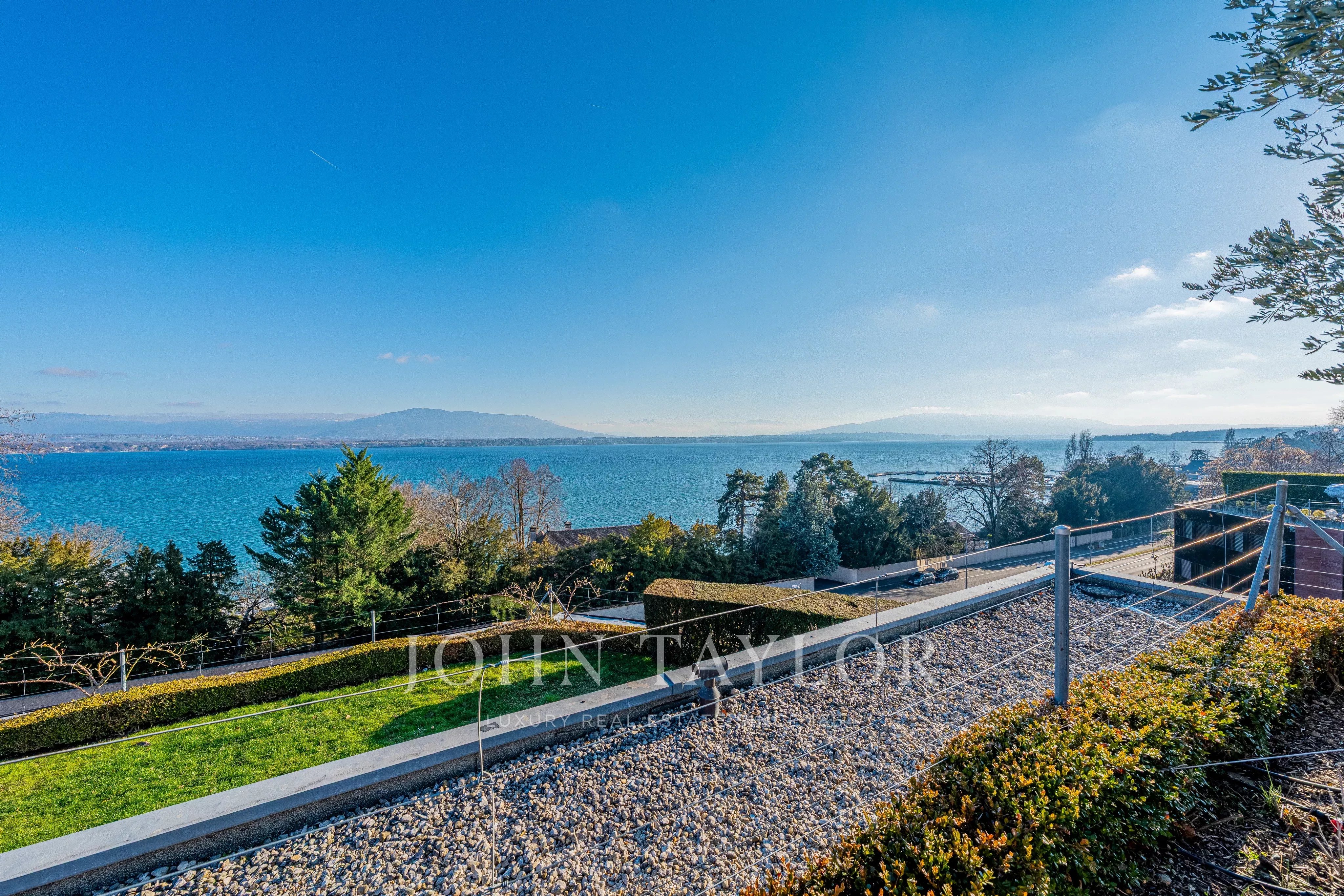 Niché face au lac, il bénéficie d’une vue panoramique absolument spectaculaire sur le Léman, les Alpes, la ville de Genève et son emblématique Jet d’eau.