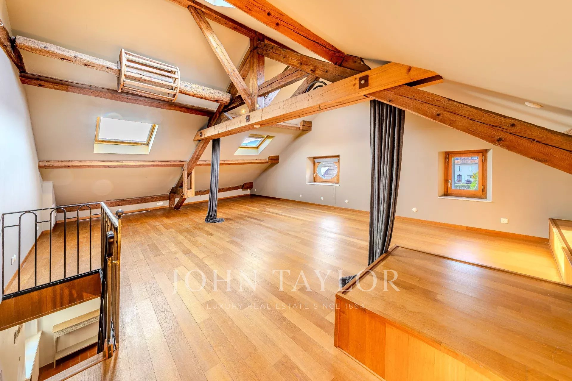 -Les combles, entièrement aménagés sur plus de 40 m², bénéficient d’une belle hauteur sous plafond et permettent la création de chambres supplémentaires et d’une salle de bain.