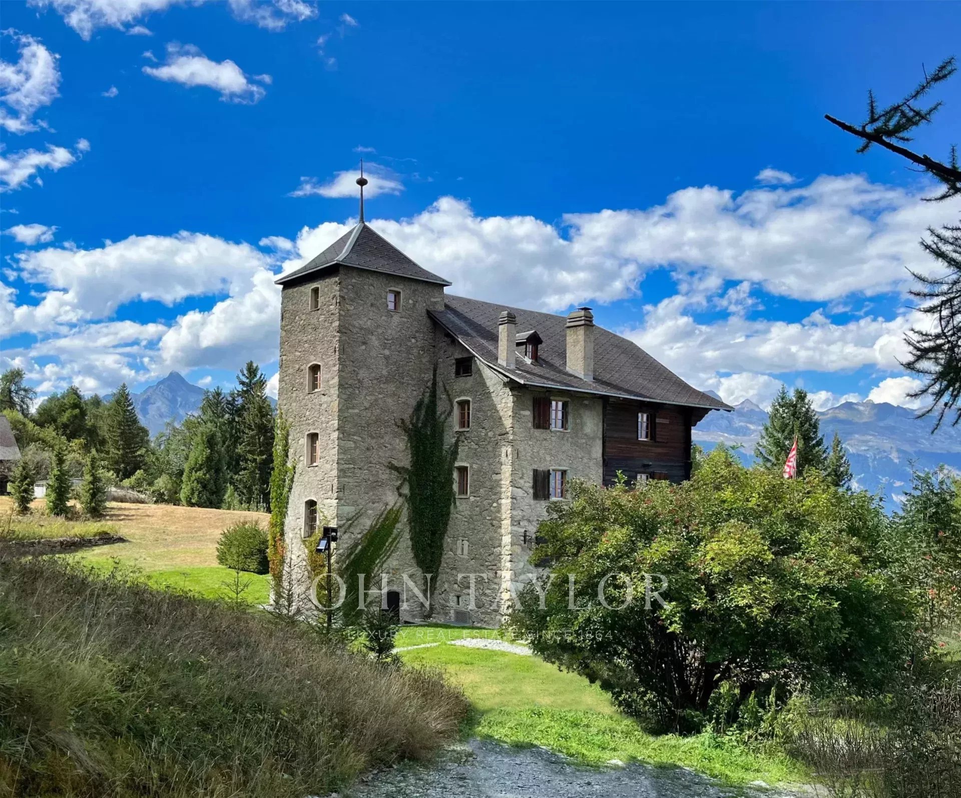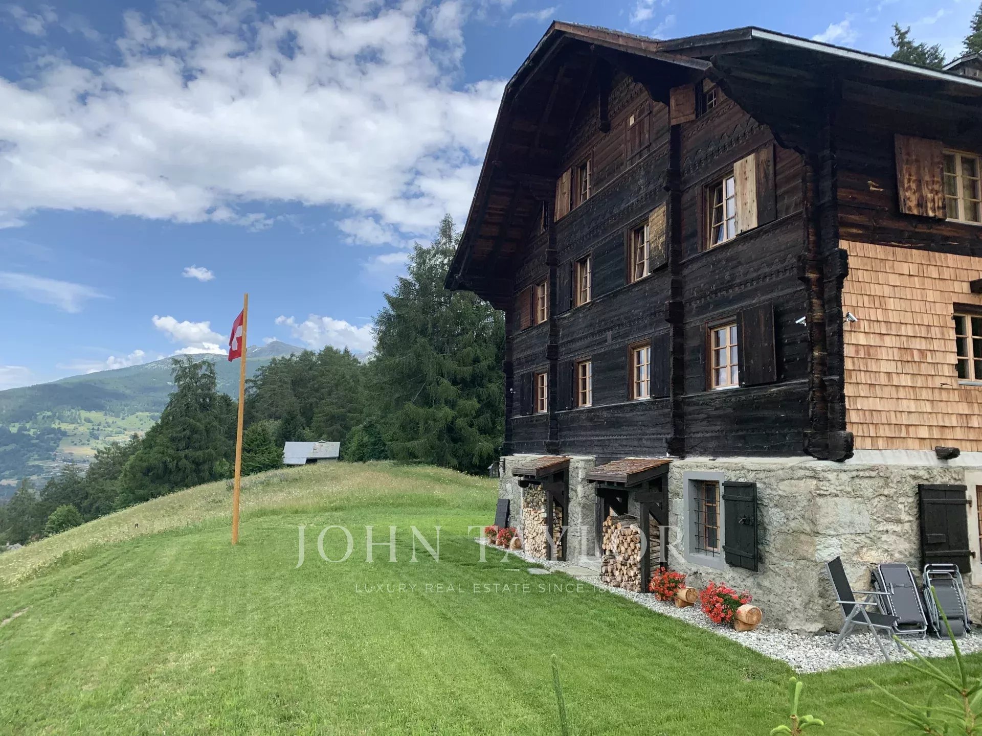 Ce majestueux chalet historique, construit en 1827, d'environ 419 m2 sur 4 étages, avec sa tour carrée imposante, offre une vue superbe sur les montagnes et la campagne. La forêt vient cacher la vue de l'urbanisation dans la vallée ce qui en fait un endroit hors du temps.