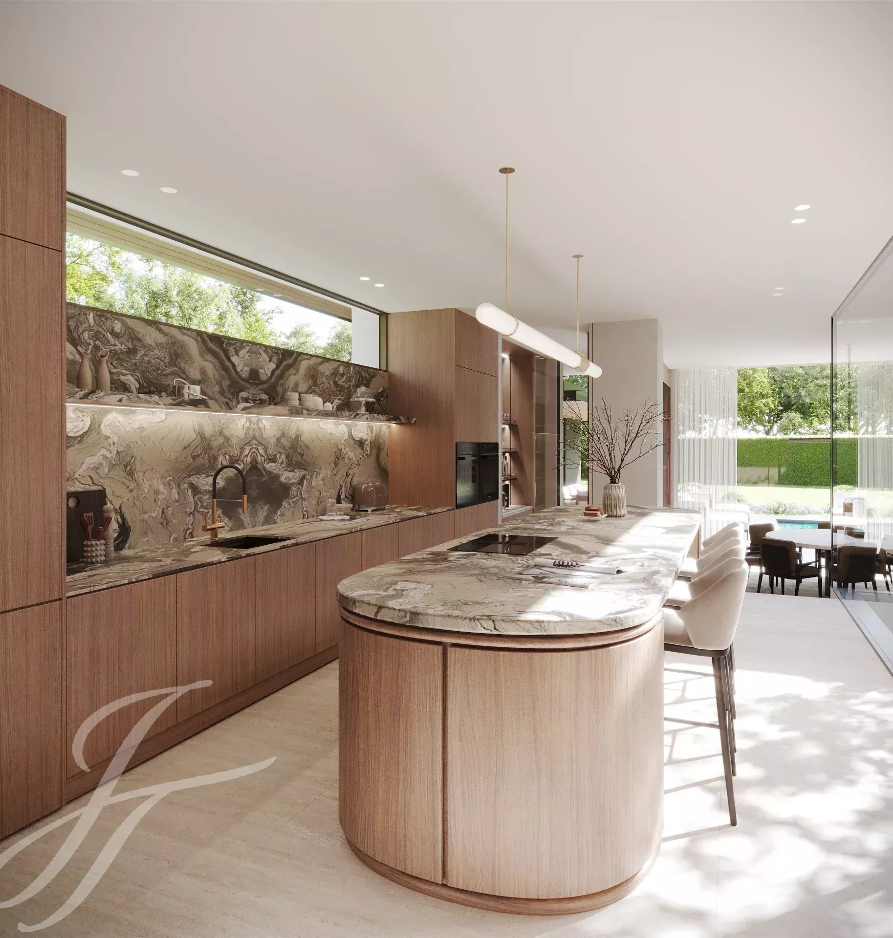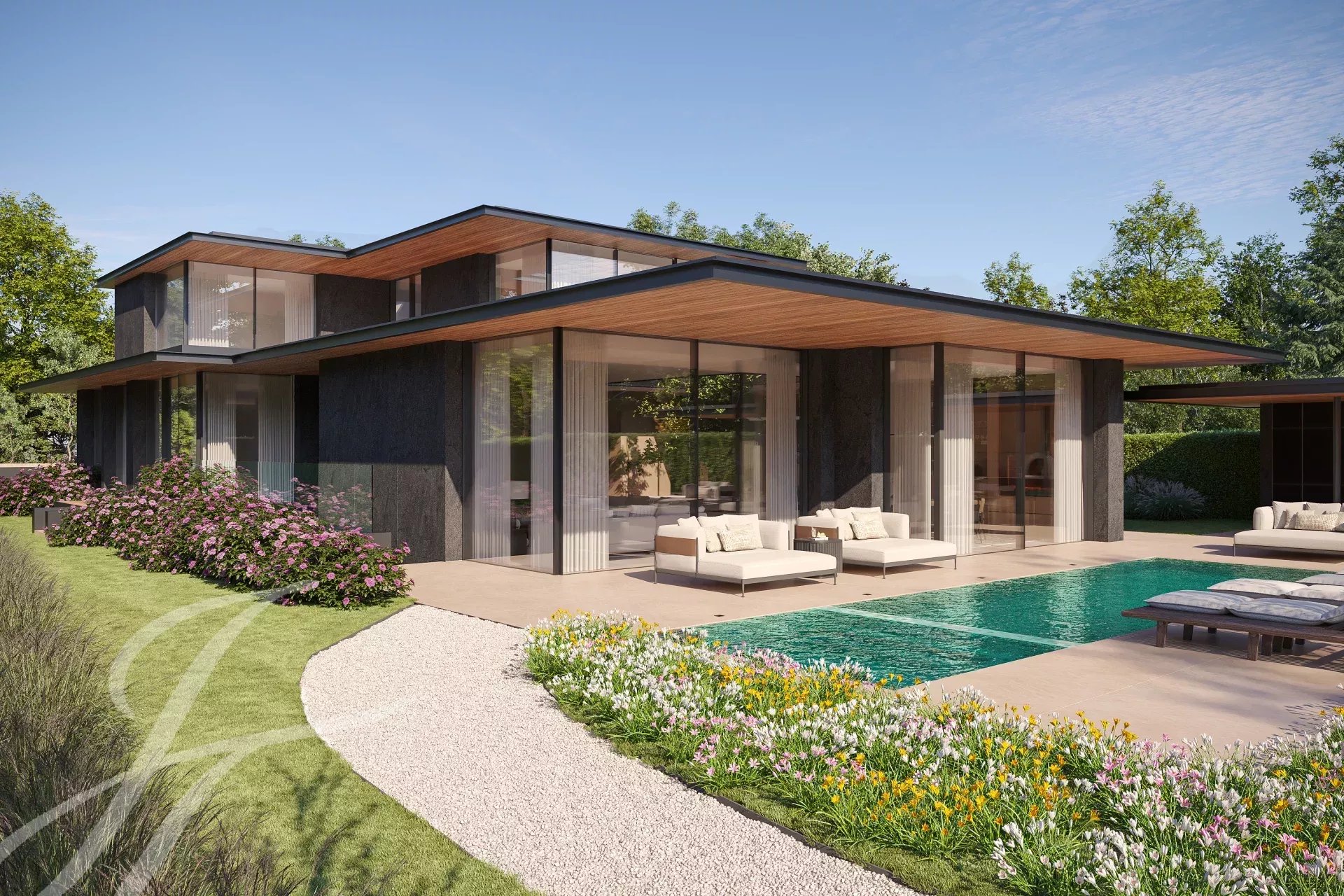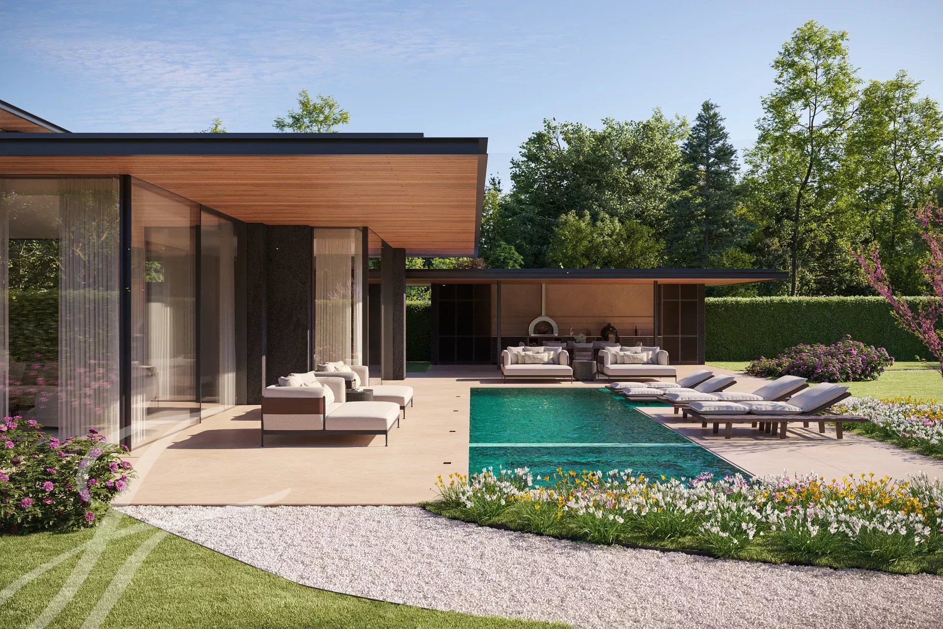 Chaque espace s’articule comme une promenade architecturale, où la lumière, les matériaux et la perspective dessinent un art de vivre à part.