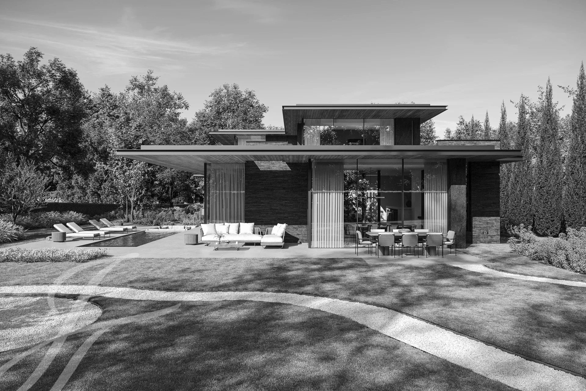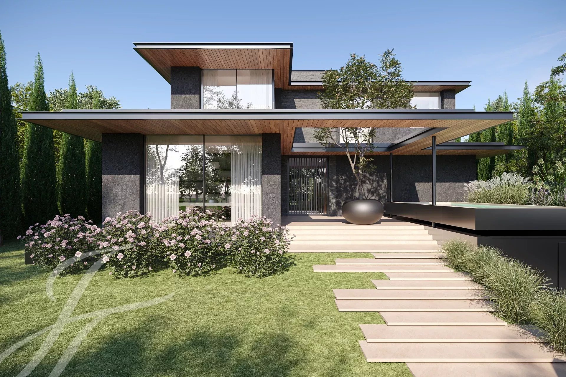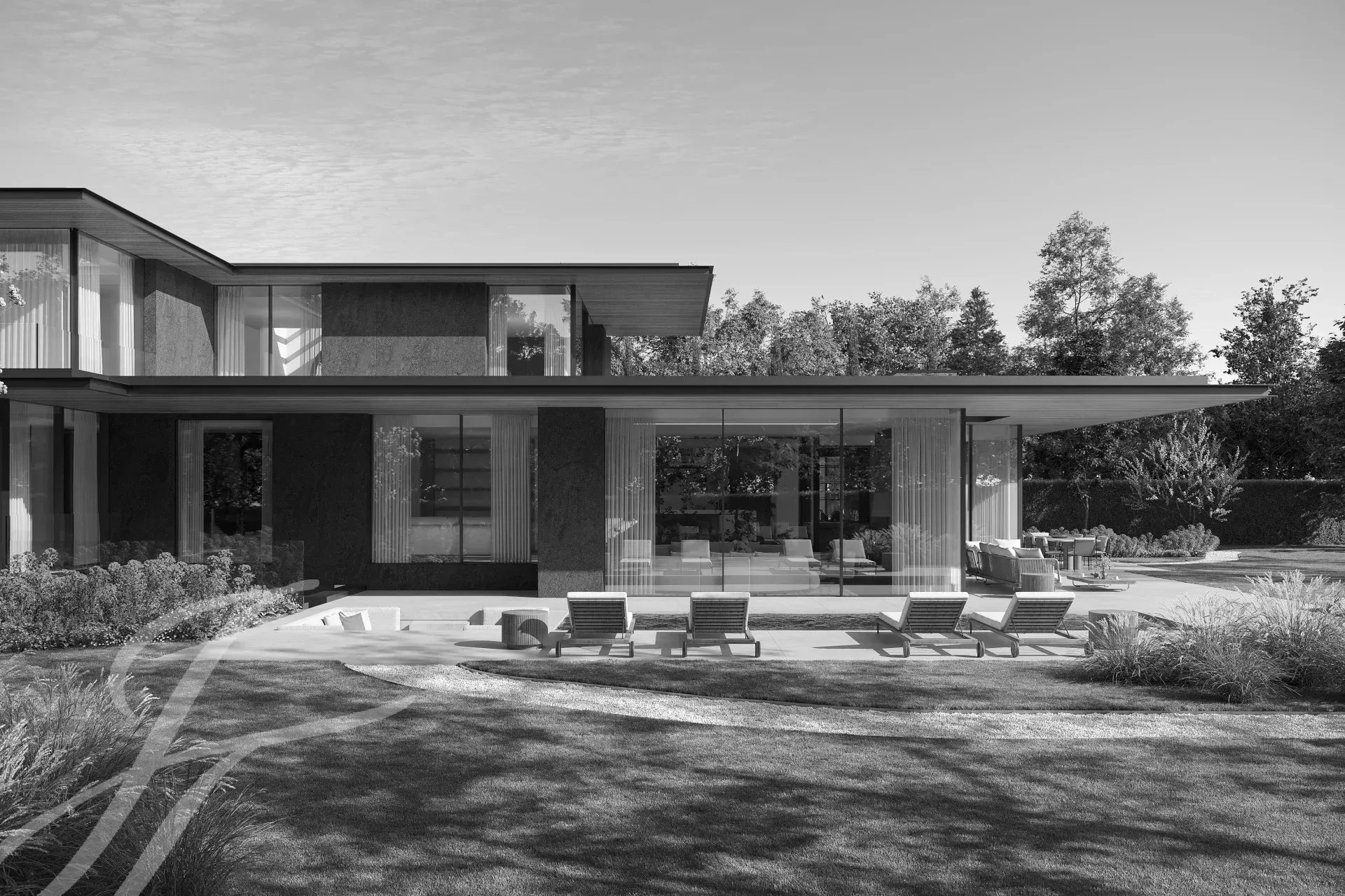 Chaque espace s’articule comme une promenade architecturale, où la lumière, les matériaux et la perspective dessinent un art de vivre à part.