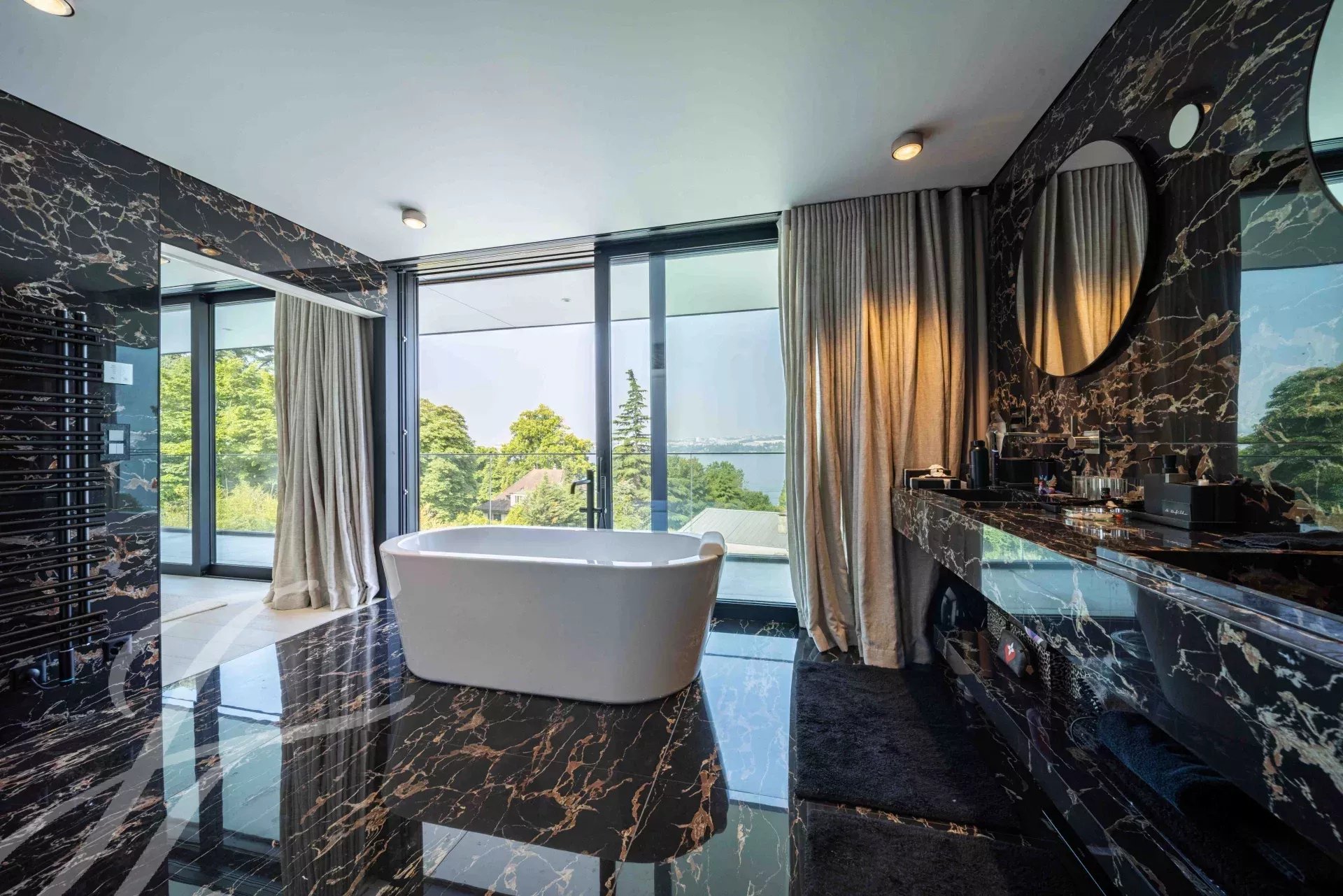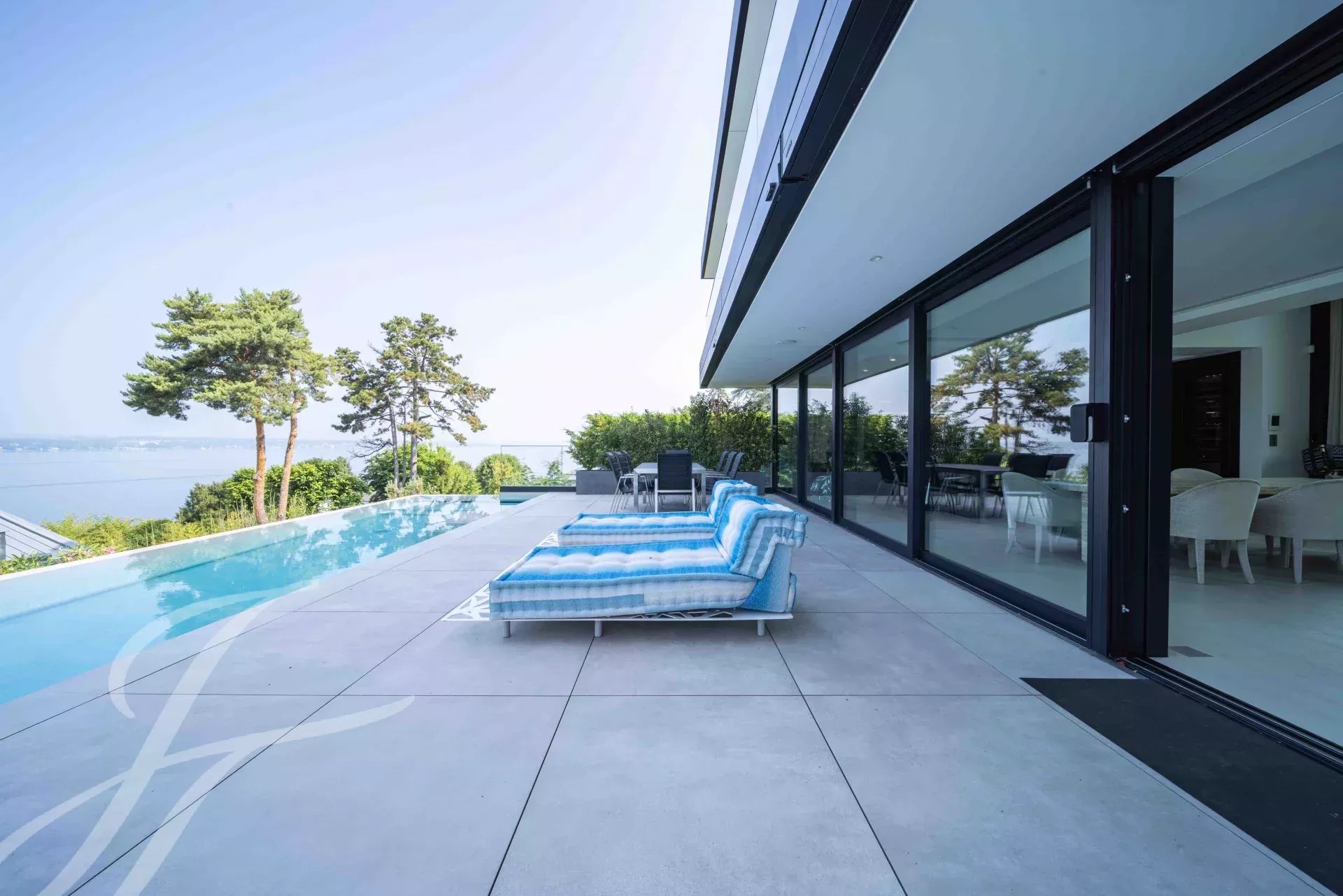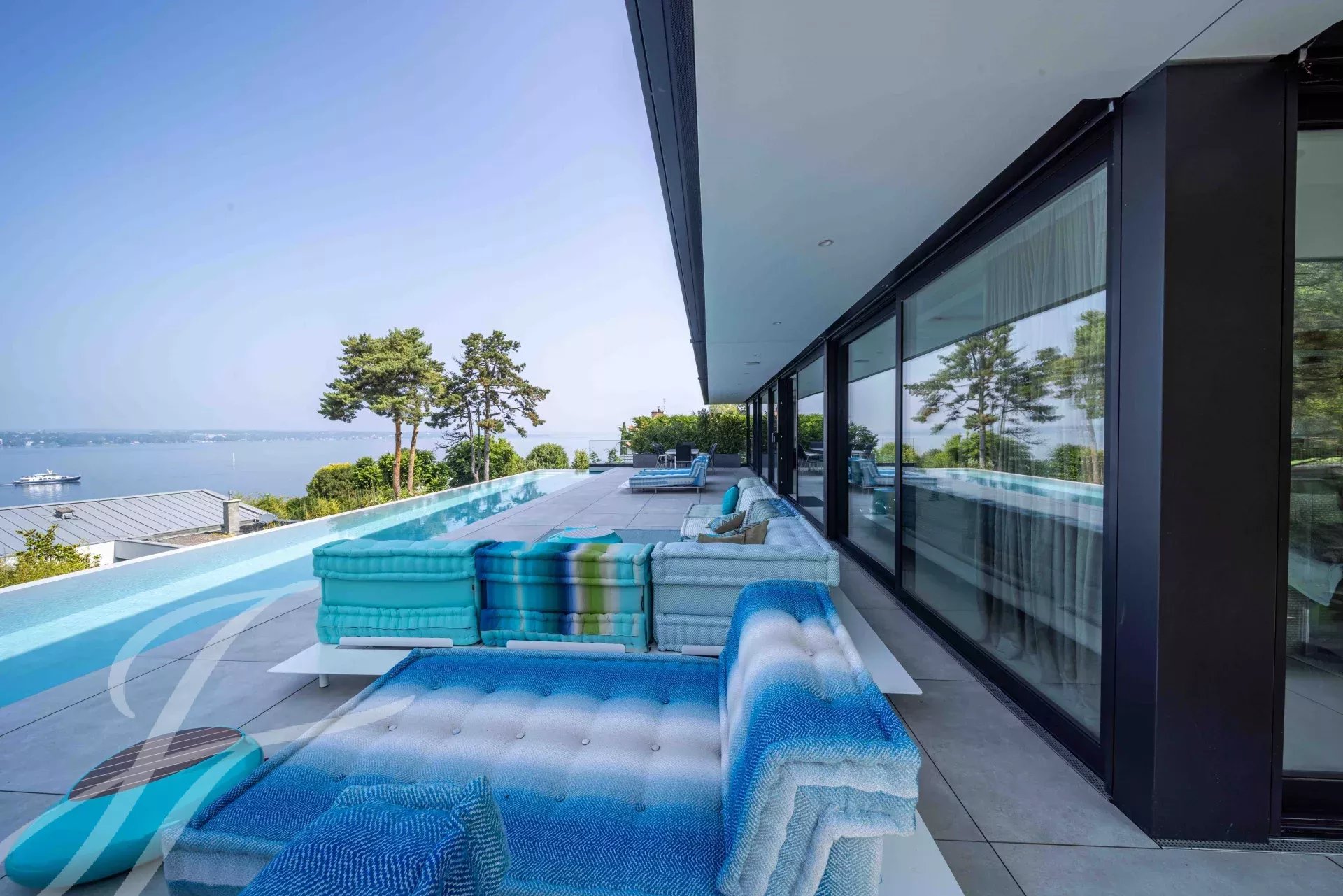 Dès les premiers pas, on découvre des volumes généreux, des finitions haut de gamme et une vue spectaculaire sur le lac, qui confèrent à cette villa un caractère résolument unique.