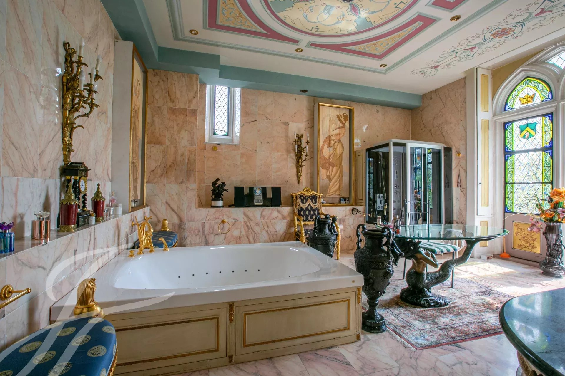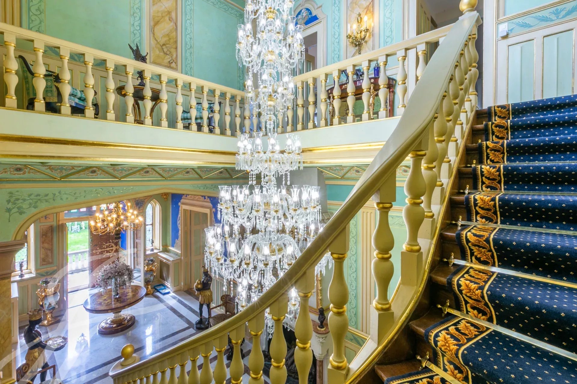 Des colonnes à la toiture, tout a été rénové avec le plus grand soin, en respectant chaque détail afin de conserver parfaitement le style néo-élisabéthain, très en vogue en Grande-Bretagne au moment de la construction initiale du Château. Des artisans de Murano en Italie ont été amenés à travailler à plein temps afin de créer de beaux lustre sur mesure, des fontaines en marbres et des statues importées de Venise afin de maintenir la cohérence du style architectural. Aucune dépense n'a été épargnée pour restaurer le bâtiment.